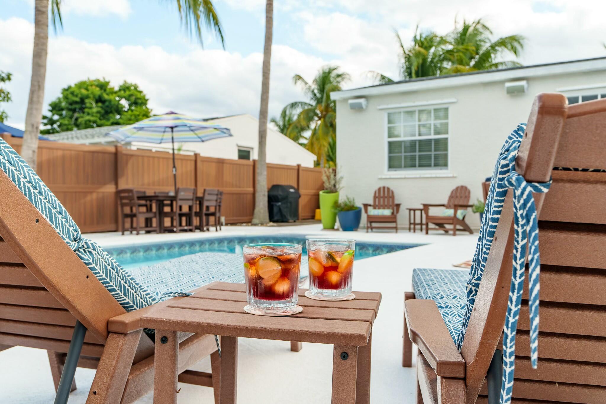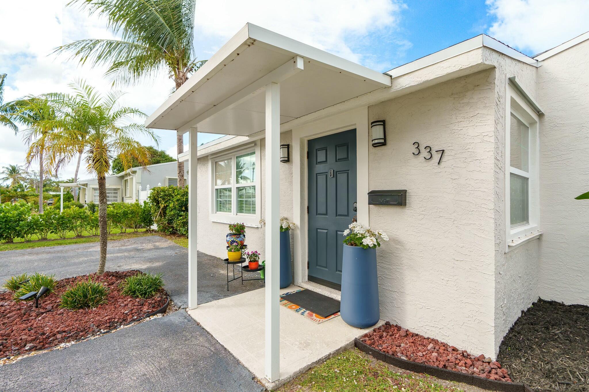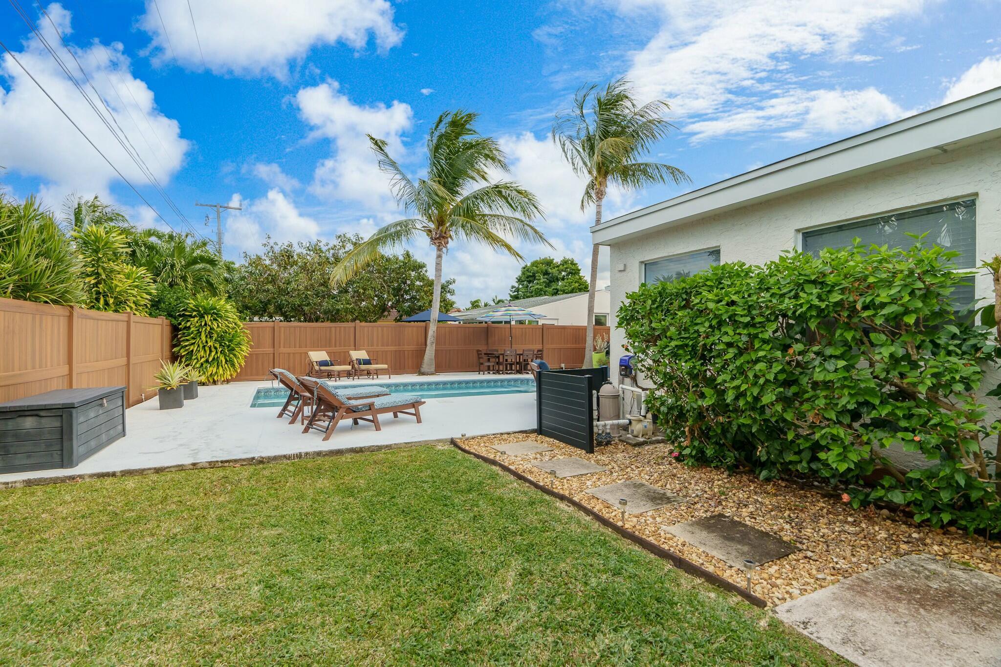 Location, location. Walk into this charming 4-bedroom, 2 bath, saltwater pool home situated only three short blocks from the Intracoastal in SOSO WPB's hottest area. Stunning remodel. High end kitchen, Soapstone countertops and SS appliances, self-closing draws, tankless hot water heater. Remodeled bathrooms. Entire home is light and bright. New features of the home are A New Roof 2024, New AC 2024, New Salt-Water Pool 2024, New Vinyl Flooring 2024, New Lighting throughout home. Nest thermostat. Ring doorbell. New Ceiling fans. New vinyl fencing along with sound system for pool area. New washer /dryer. Recently painted exterior and interior of home. All major items have been taken care of in this home. Two zone central AC. All windows and doors are either impact glass or hurric