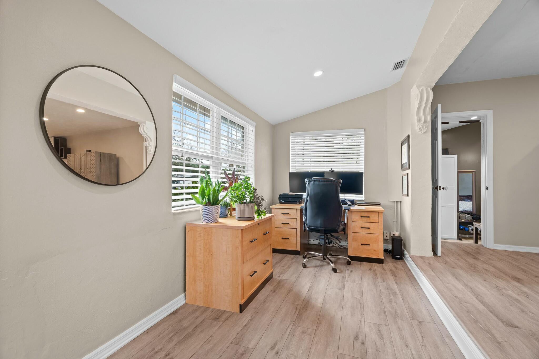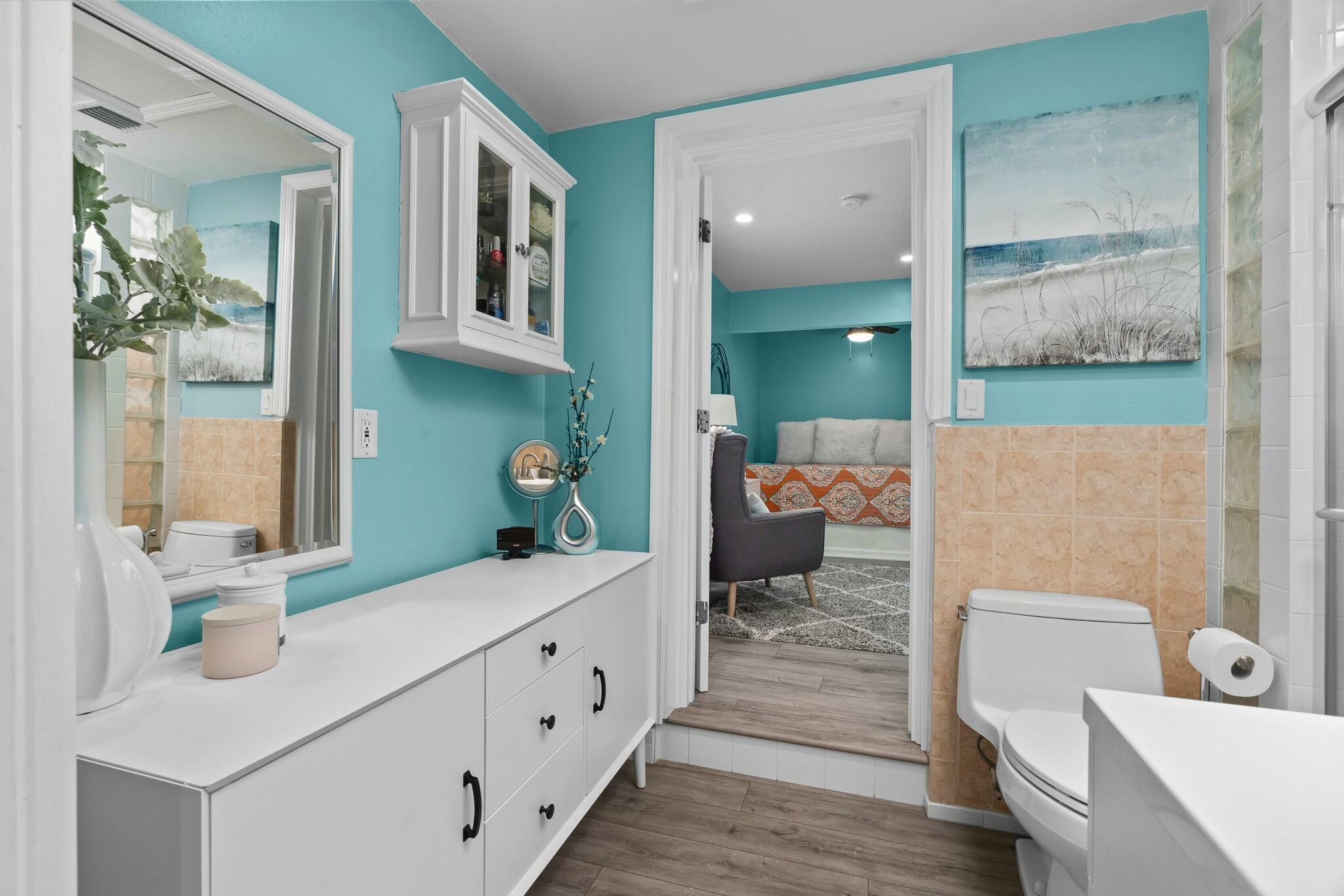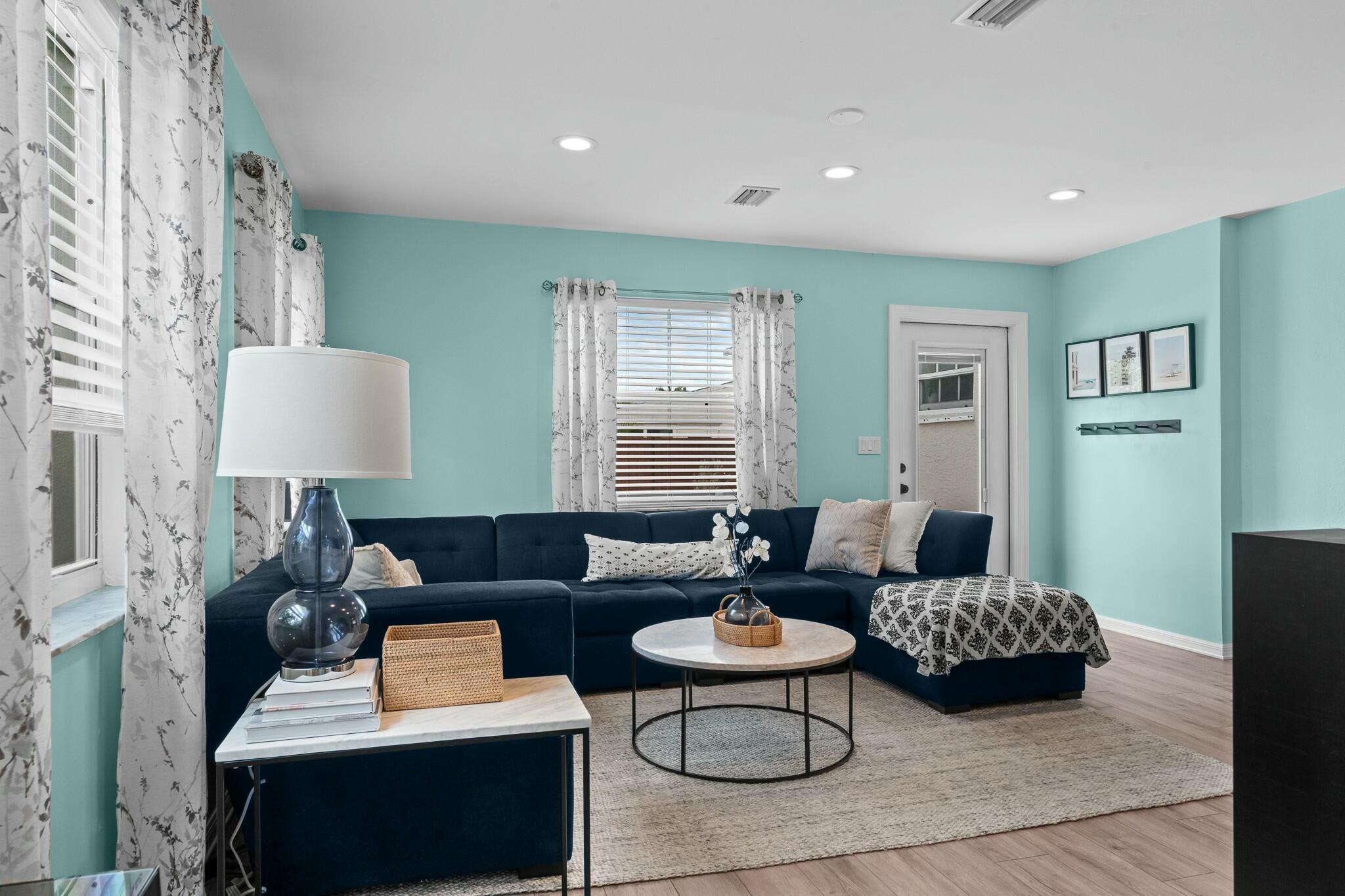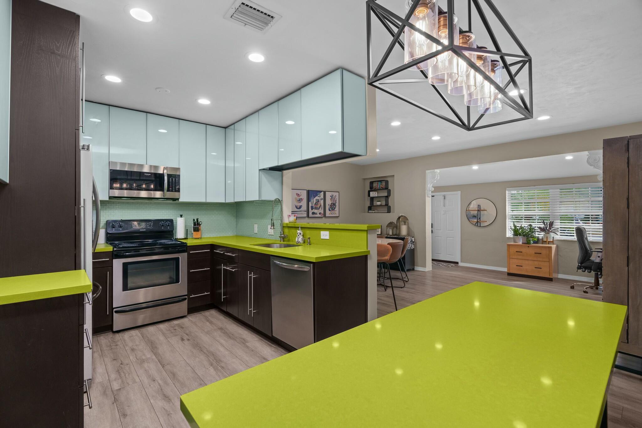 Location, location. Walk into this charming 4-bedroom, 2 bath, saltwater pool home situated only three short blocks from the Intracoastal in SOSO WPB's hottest area. Stunning remodel. High end kitchen, Soapstone countertops and SS appliances, self-closing draws, tankless hot water heater. Remodeled bathrooms. Entire home is light and bright. New features of the home are A New Roof 2024, New AC 2024, New Salt-Water Pool 2024, New Vinyl Flooring 2024, New Lighting throughout home. Nest thermostat. Ring doorbell. New Ceiling fans. New vinyl fencing along with sound system for pool area. New washer /dryer. Recently painted exterior and interior of home. All major items have been taken care of in this home. Two zone central AC. All windows and doors are either impact glass or hurric