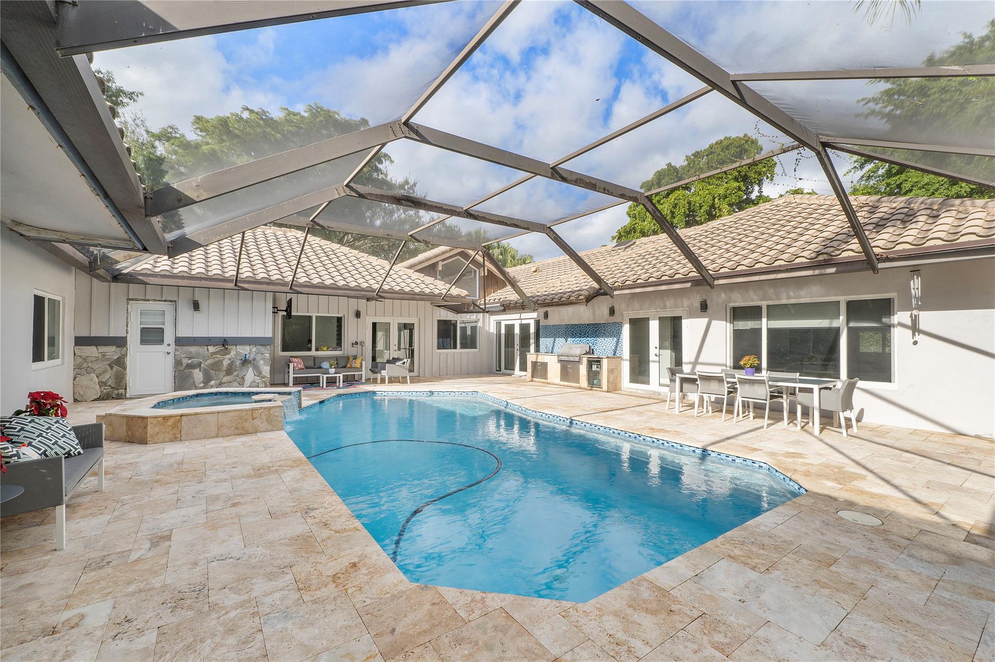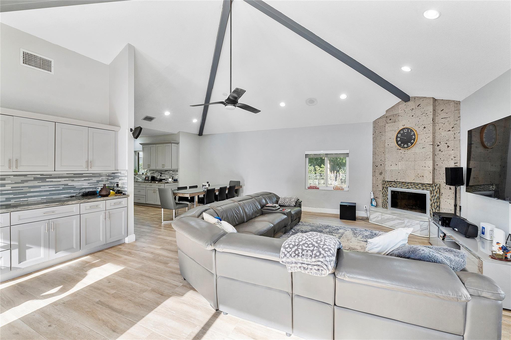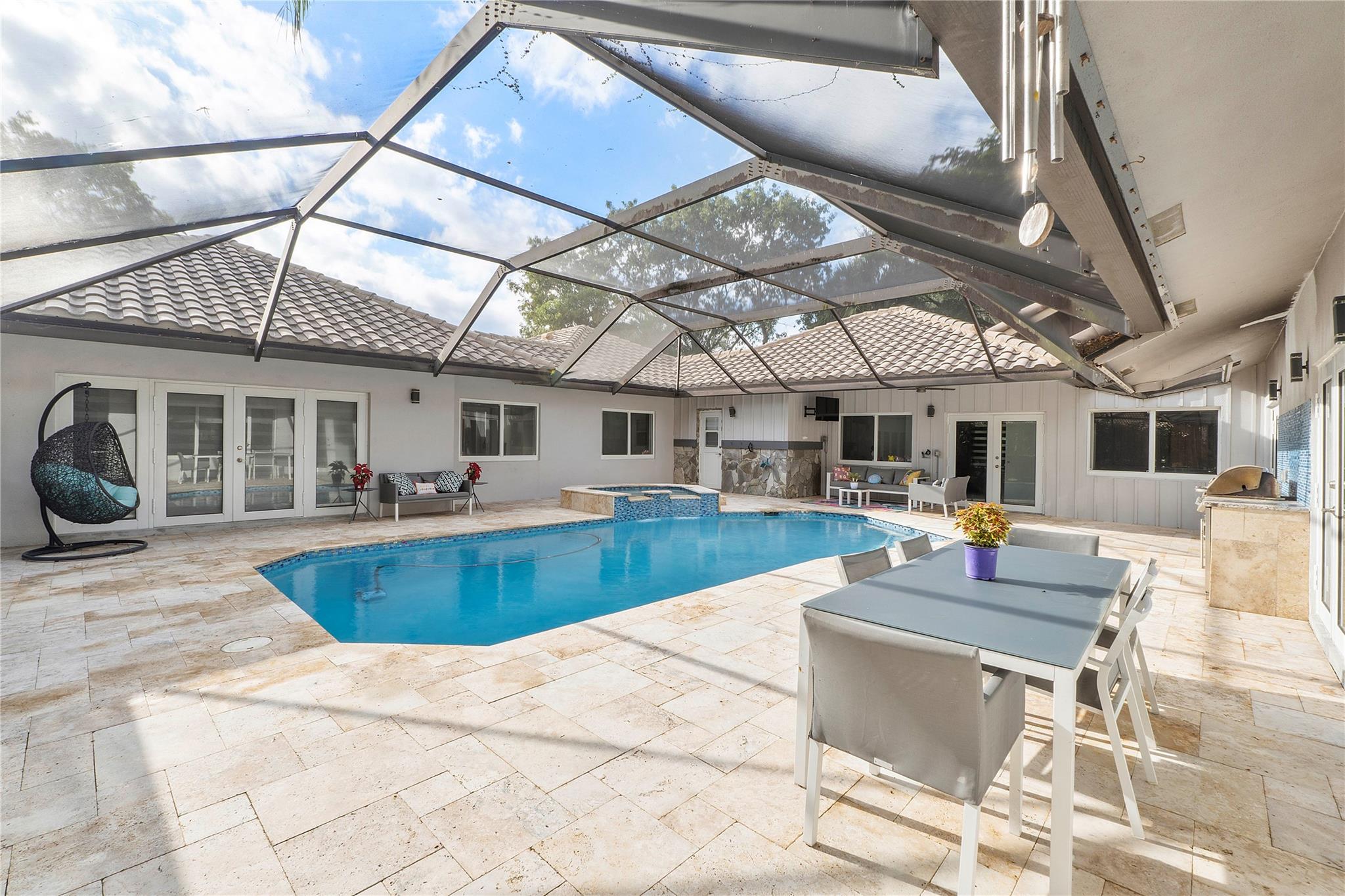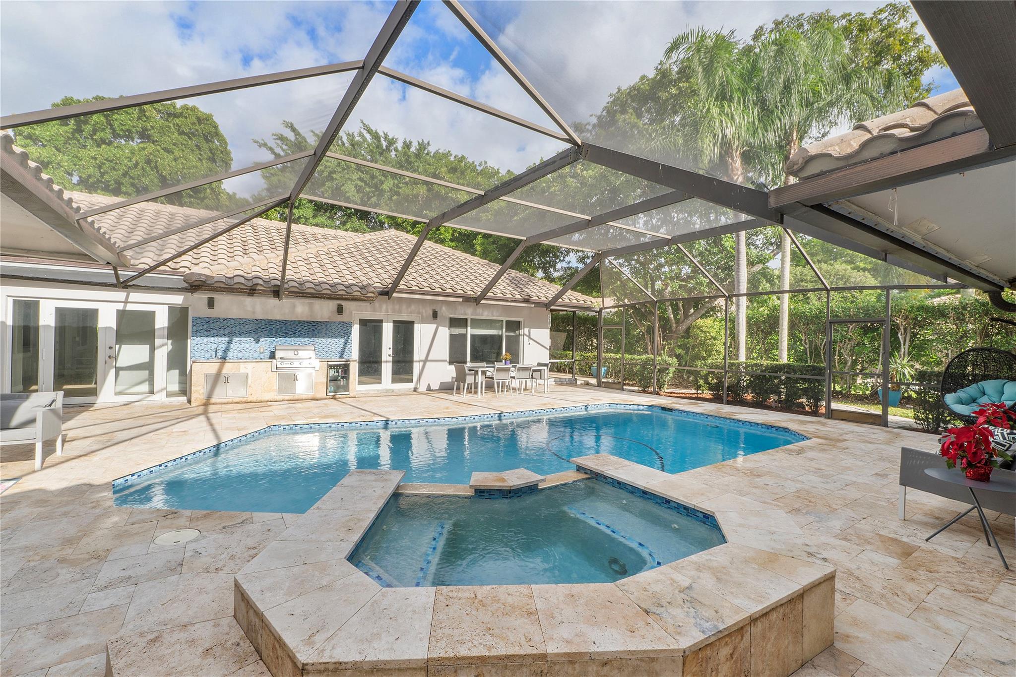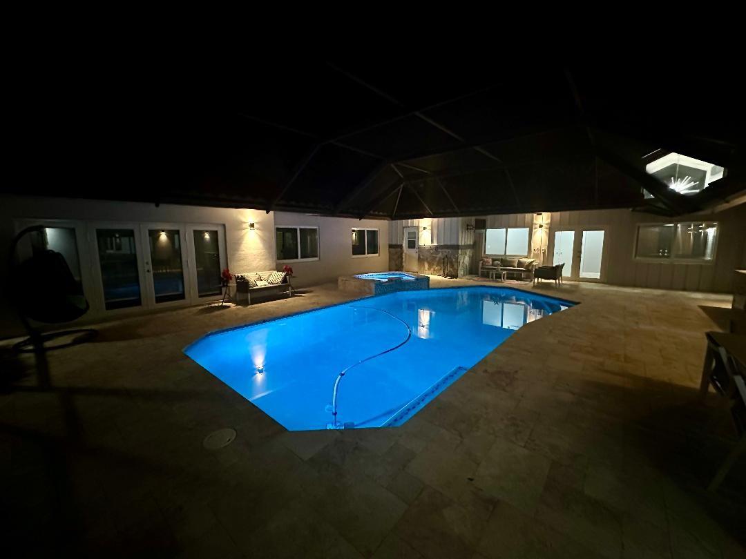 A truly exceptional home! Uniquely RENOVATED 6 bedroom(one w/o closet), 4.5 bathroom residence situated on a 17,464 square foot cul-de-sac lot. A 5-star resort-style pool plus a fenced side yard, ideal for pets or family fun. Extensive upgrades, valued at over $250,000: open-concept great room that integrates with the superbly equipped gourmet kitchen. The entire dwelling has impact windows and doors. The interior features Modern doors and porcelain wood-tile floors, custom closets throughout the home. This smart home is fully integrated with state-of-the-art technology for lighting, climate control, & security. The opulent master suite provides an unparalleled retreat. This remarkable estate is nestled within a prestigious guard-gated community, a truly distinctive place to reside.