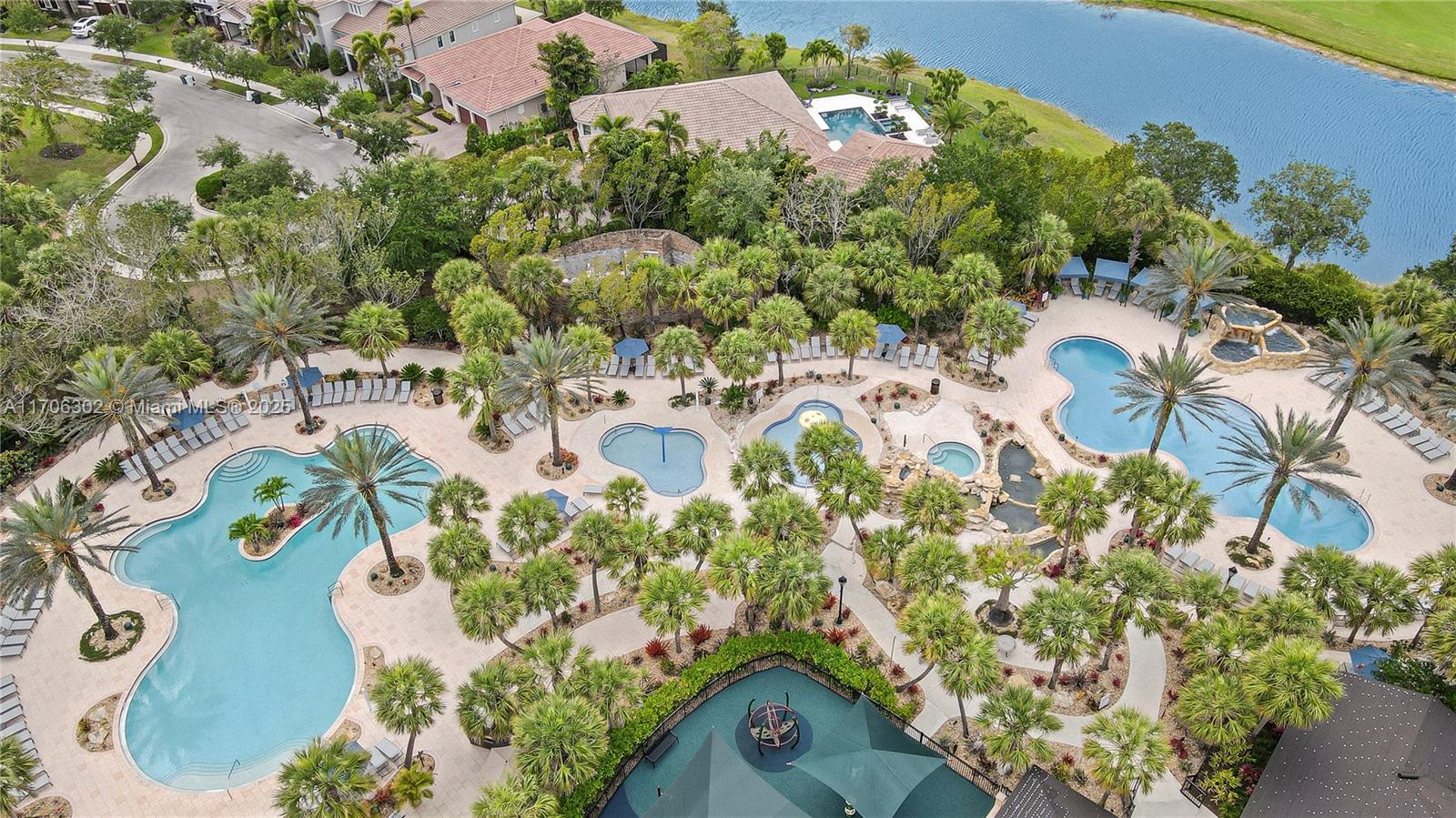 Stunning custom home with a beautiful fountain view and resort-style amenities in South Florida's best golfing community! The expanded "Palo" design offers 6 bedrooms, 3.5 baths + loft, featuring a mosaic foyer, circular staircase, crown molding, and a gourmet kitchen with a center island, granite counters, gas range, and custom cabinetry. Spacious master suite on the 1st floor includes a jetted tub, dual sinks, and a luxurious shower with dual heads. Upstairs boasts 5 bedrooms and 2 Jack & Jill baths. Enjoy 2 A/C units and washer/dryer on each floor. Top-rated schools and incredible family living await!
