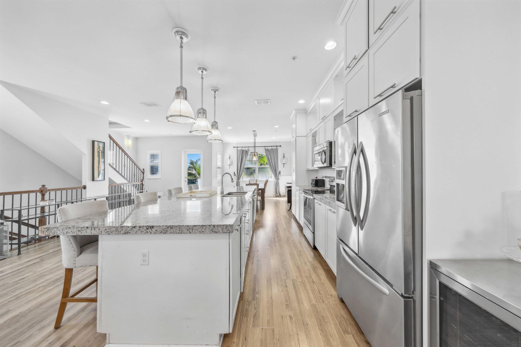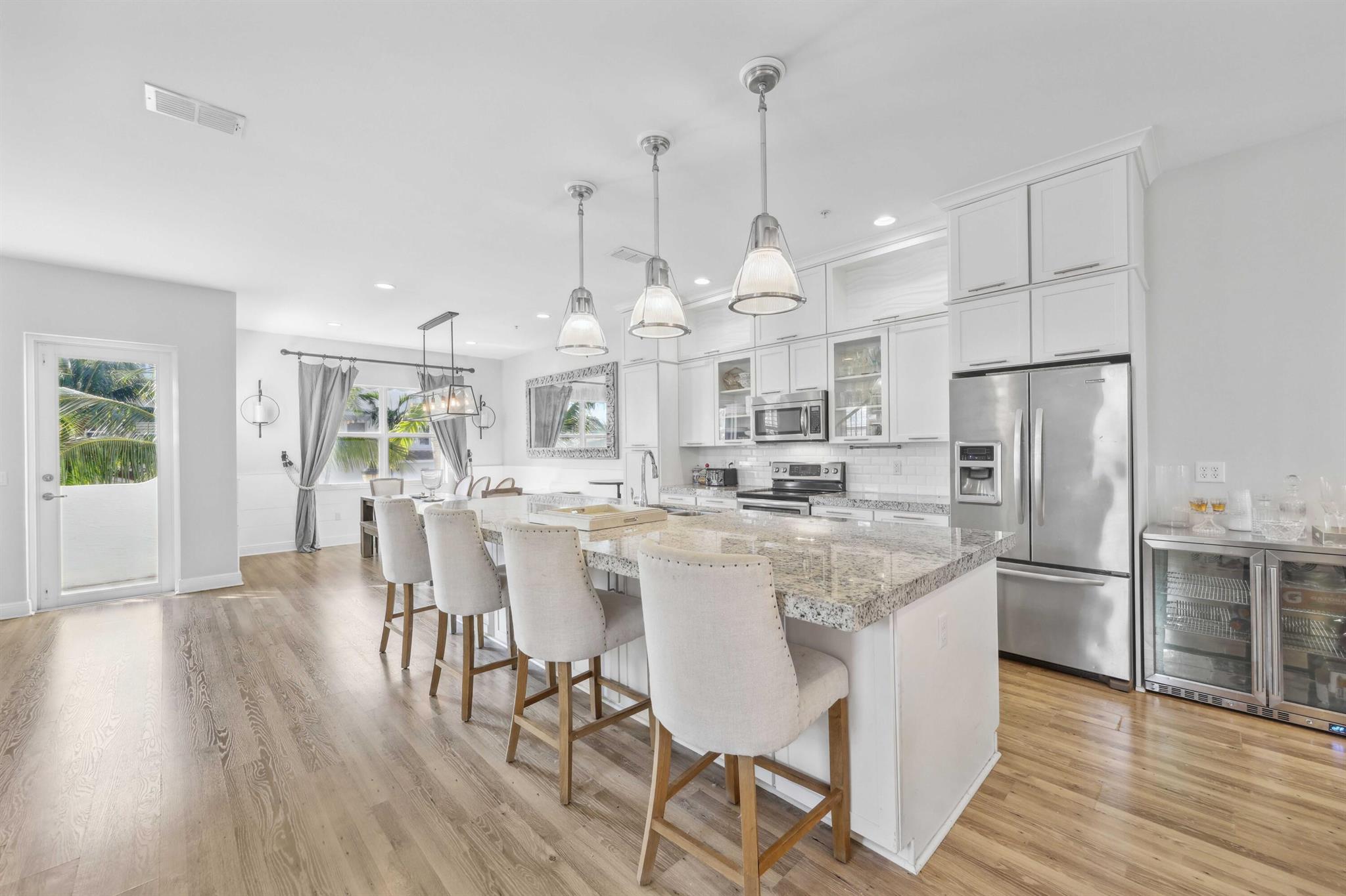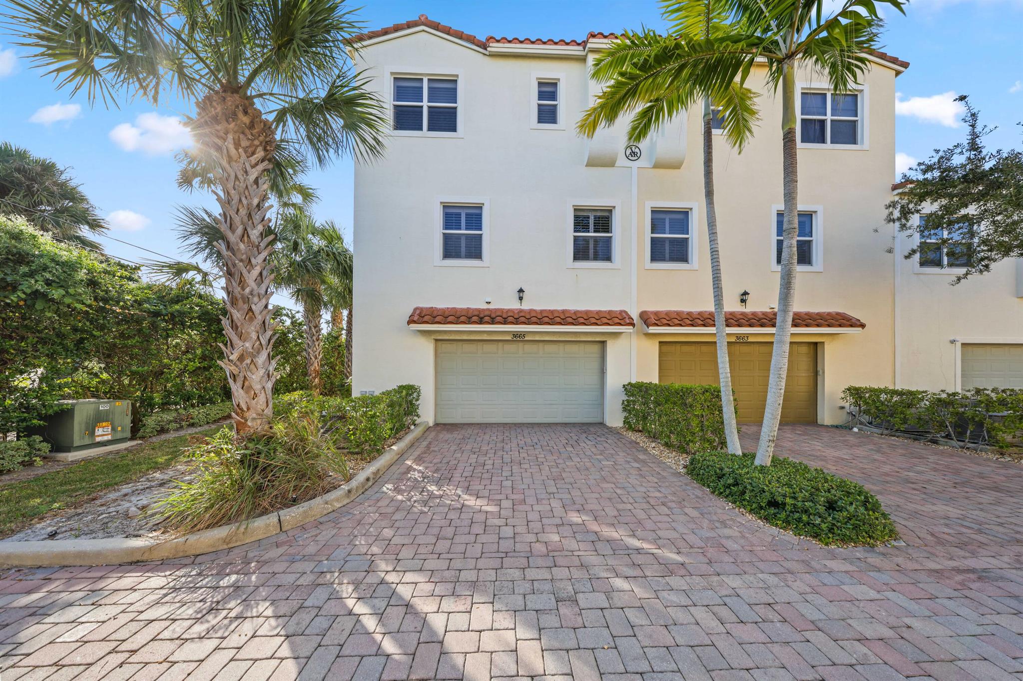 Welcome home to 3665 Vintage Way. This fully furnished, stunning 3 story, end unit townhome boasts 3013 sqft under air, 3 bedrooms, 3 and a one half bathrooms, an attached 2 car garage, and outdoor living space on every floor--perfect for that South Florida indoor/outdoor lifestyle. As you enter the home, you are immediately struck by how bright and airy it is. Designer, wood-like flooring runs throughout. The first floor of the home boasts one of two master bedrooms as well as the laundry room and an oversized two-car garage. The second floor of this gorgeous home offers a spacious open floor plan with formal dining and living rooms separated by a chef's kitchen complete with oversized island, custom cabinetry, and stainless steel appliances. The second floor also boasts its own