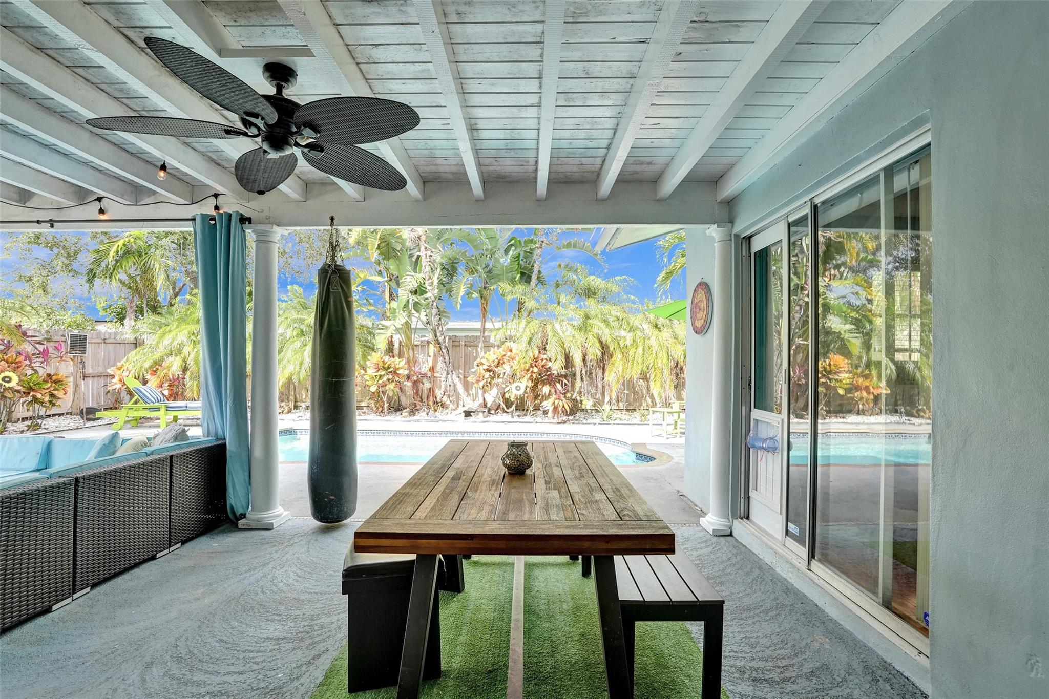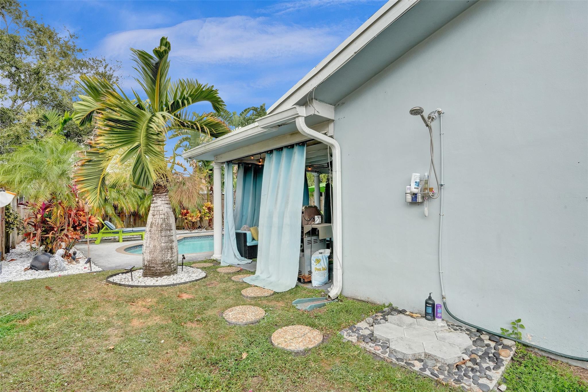 Welcome to 3323 NW 68th Ct, a stunning 3-bedroom, 2-bath home offering the perfect blend of style, comfort, and outdoor living in Fort Lauderdale. The tropical backyard is an entertainer’s dream, featuring a sparkling pool, hot tub, and a covered patio ideal for gatherings and relaxation. Inside, the home boasts a bright and airy layout with a large open kitchen, dedicated dining area, a spacious living room, and a convenient laundry room with ample storage. The 1-car garage, equipped with A/C, is currently used as a fully functional gym, offering added flexibility to suit your lifestyle. With its lush landscaping, inviting outdoor spaces, and thoughtful interior design, this home is a true private retreat!