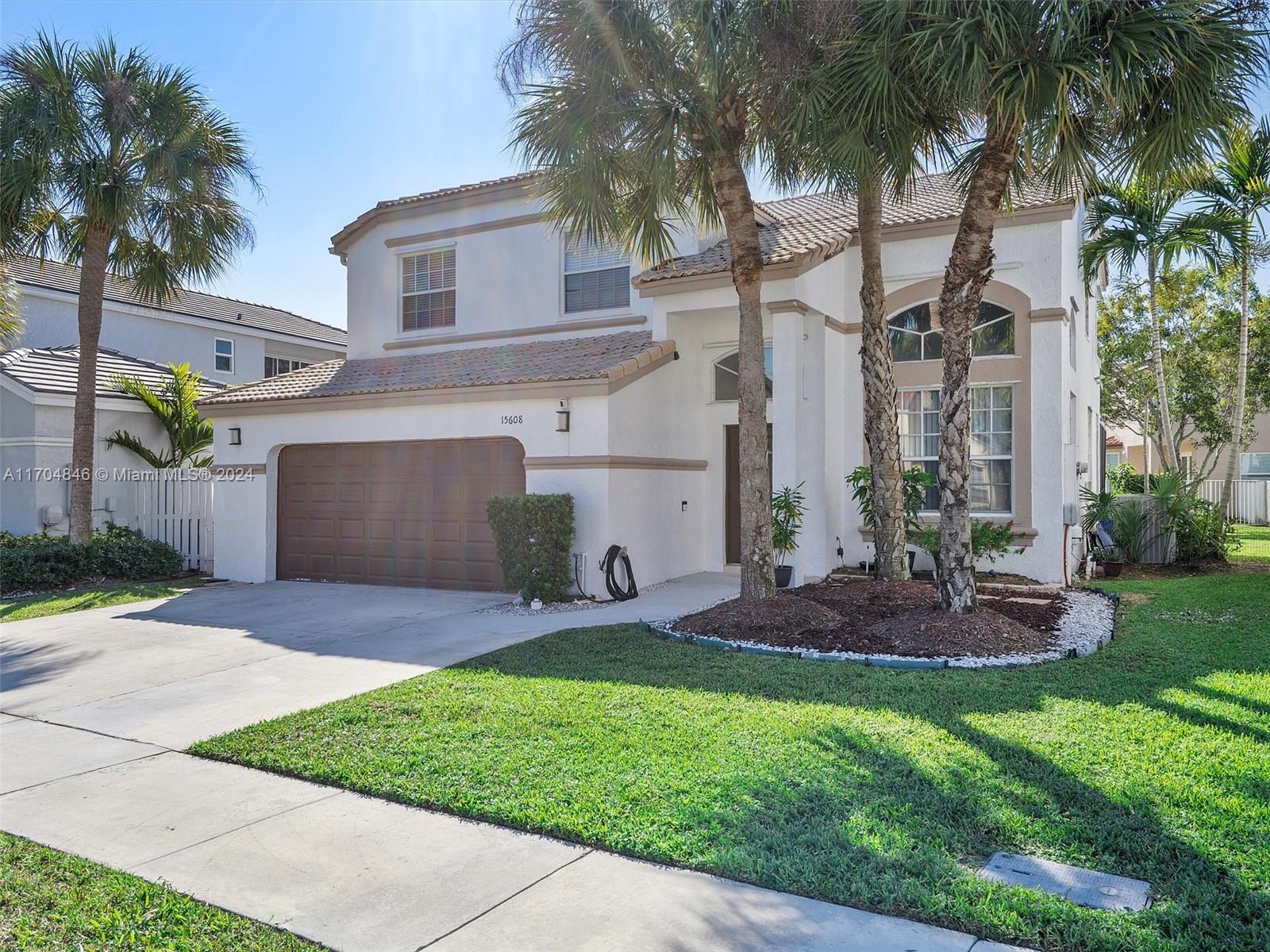 Mediterranean-style two-story home offering 4 bedrooms, 2.5 baths, and an attached 2-car garage. The home features a private fenced backyard and a screened patio, perfect for year-round use. Inside, ceramic tile flooring graces the main level, while the bedrooms are wood-look vinyl. The primary is spacious and features a walk-in closet and spa-like bath. A two-story foyer and living room create a bright, open atmosphere. The eat-in kitchen includes a breakfast bar and plenty of natural light. Located in the desirable community of Mahogany Way at Towngate, offering parks, trails, nearby shopping, and low HOA fees.