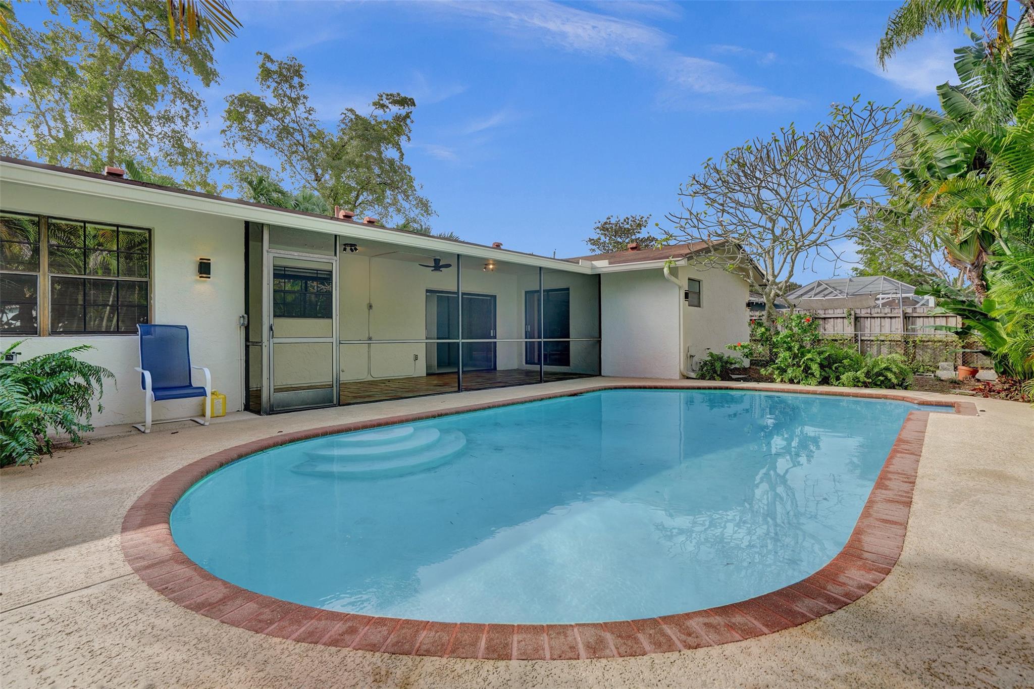 This 3-bedroom, 2-bath gem in the sought-after Riverland neighborhood is conveniently located near major highways and local boat ramps, and just 10 minutes from downtown Fort Lauderdale, the airport, and Seminole Hard Rock Casino. Solid wood double-entry doors welcome you to a sunken living room. The original kitchen boasts one-year-old stainless appliances, a stylish tiled backsplash and a peninsula adjacent to a family room/den. The primary bedroom has a walk-in closet and ensuite bathroom with updated, oversized shower. Two additional bedrooms feature large closets and share a bathroom. A one-car garage is home to almost-new washer and dryer. The large backyard is a private tropical oasis and offers a screened patio, sparkling pool, covered gazebo and lush, mature landscaping.