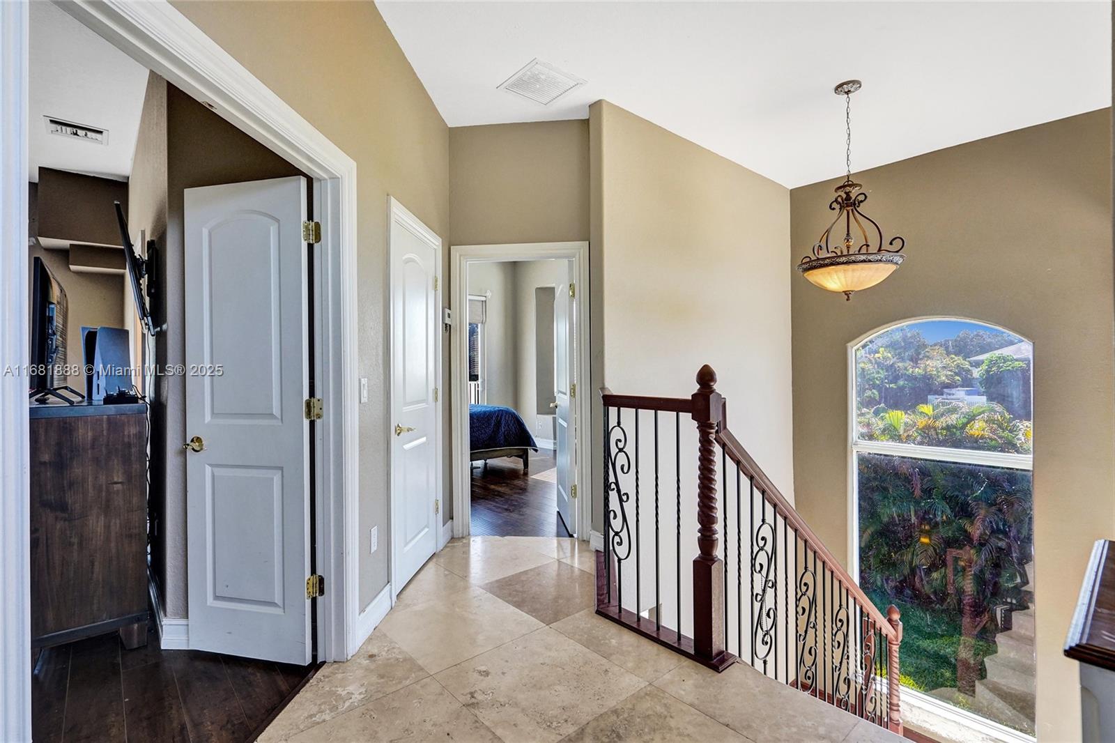 Resort style living built in 2008. 4-bed, 4-bath home now available with impact windows & doors! Private and comfortable residence features a formal living & dining room, ideal for entertaining. The spacious kitchen is equipped with S.S. appliances for cooking enthusiasts. Custom step-down bar for those family/friend gatherings. The master suite boasts high ceilings, a large bath with a jacuzzi tub, and a walk-in shower on the first floor. Upstairs are the other 3 bedrooms as well as loft area. Enjoy outdoor relaxation on the open back pool area with travertine tiles & outdoor Tiki with kitchen. The backyard offers a resort-style pool and entertainment area. Fenced for privacy with lush landscaping, this home is conveniently located near highways, shopping, dining, hospitals, & more.