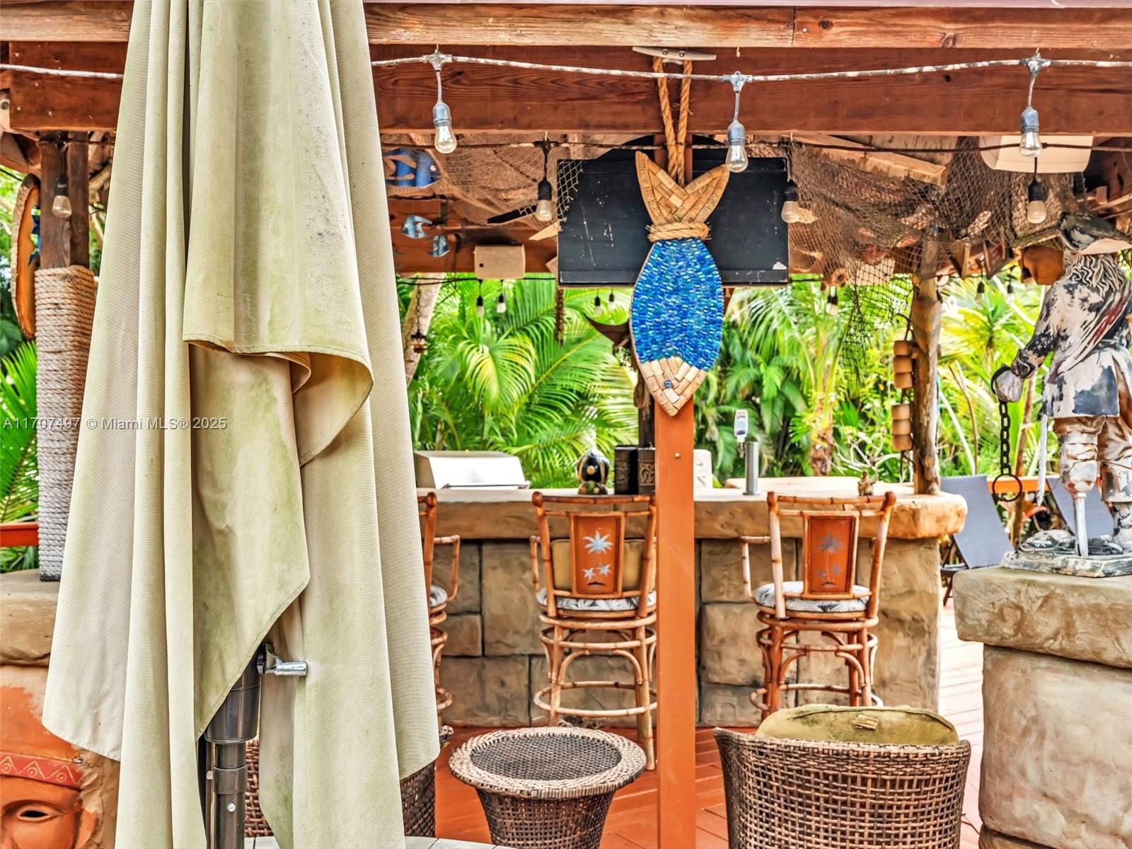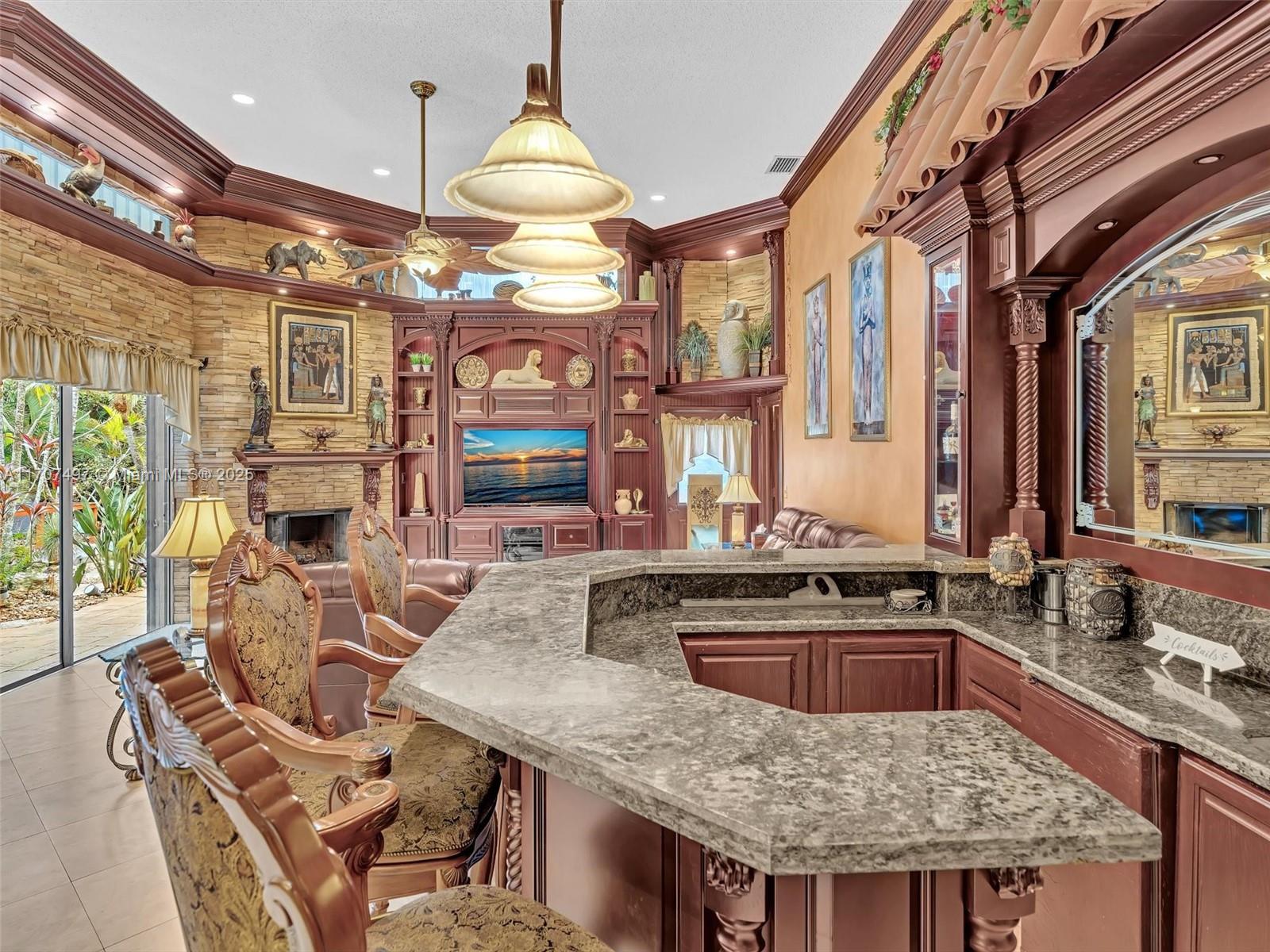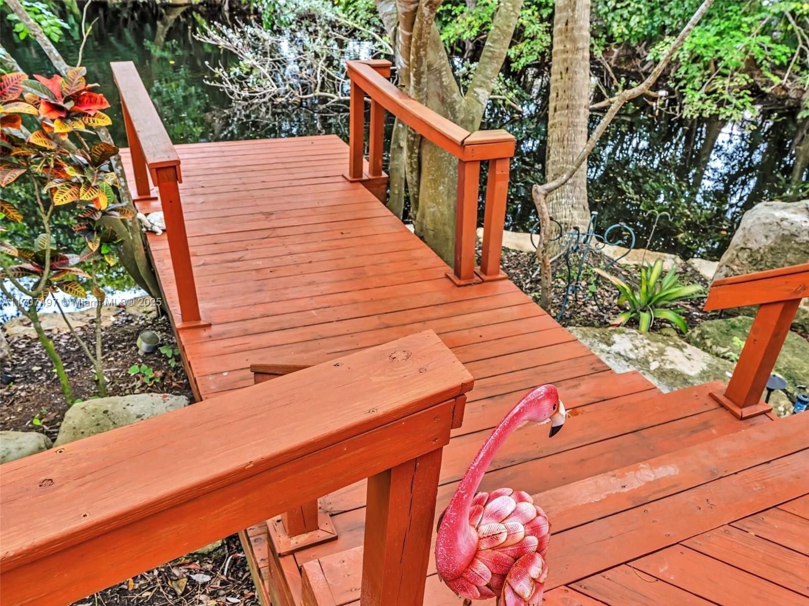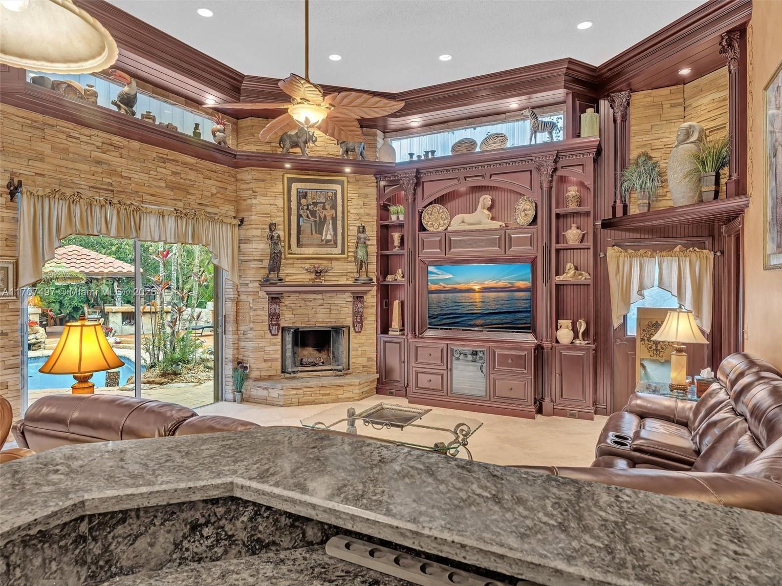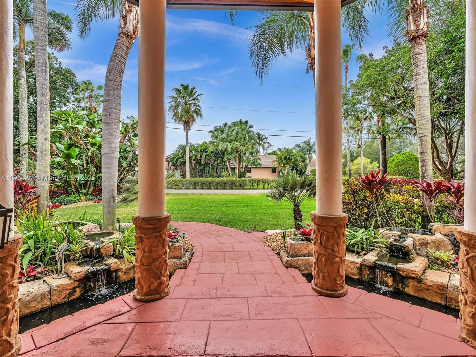 Nestled on a tropical waterfront .84 acre lot, this stunning custom-built Mediterranean-style home uniquely blends elegance & comfort. The thoughtfully designed floor plan includes 3 Bedrooms + Large Office, 2.5 Baths, and volume ceilings throughout. The private outdoor oasis features a sparkling freeform pool, outdoor shower, tiki bar, built-in BBQ area, expansive deck with a dock and hot tub overlooking the canal, & lush landscaping with fruit trees & exotic plants. Inside, the gourmet kitchen boasts Thermador appliances, custom wood cabinets & a spacious butler pantry. Relax by the wood-burning fireplace or host gatherings at the wet bar. With its balance of indoor & outdoor living, this private retreat is designed for unforgettable memories. NO HOA. NEW ROOF 2022. TWO NEW ACs.