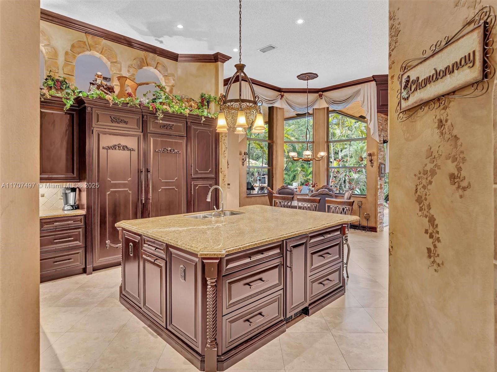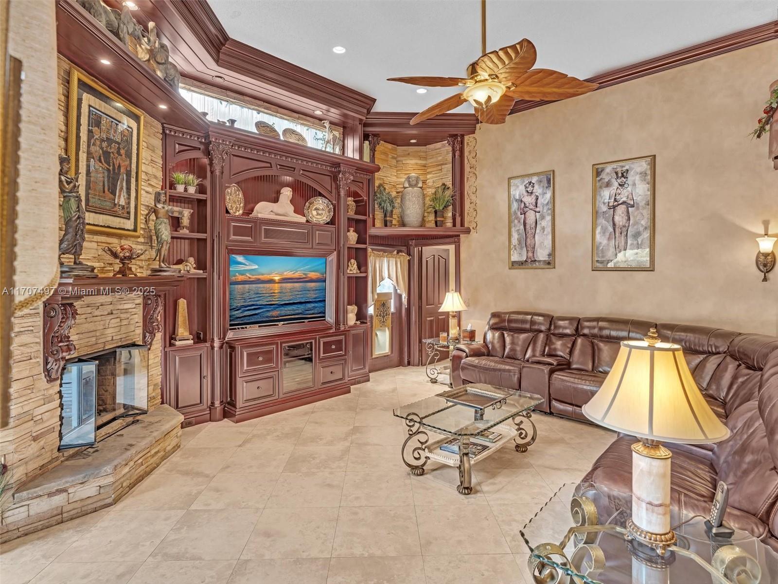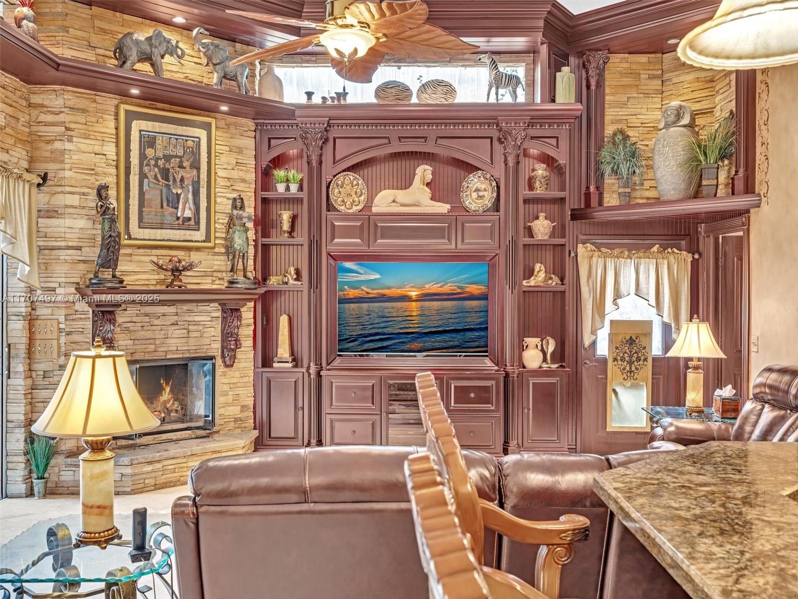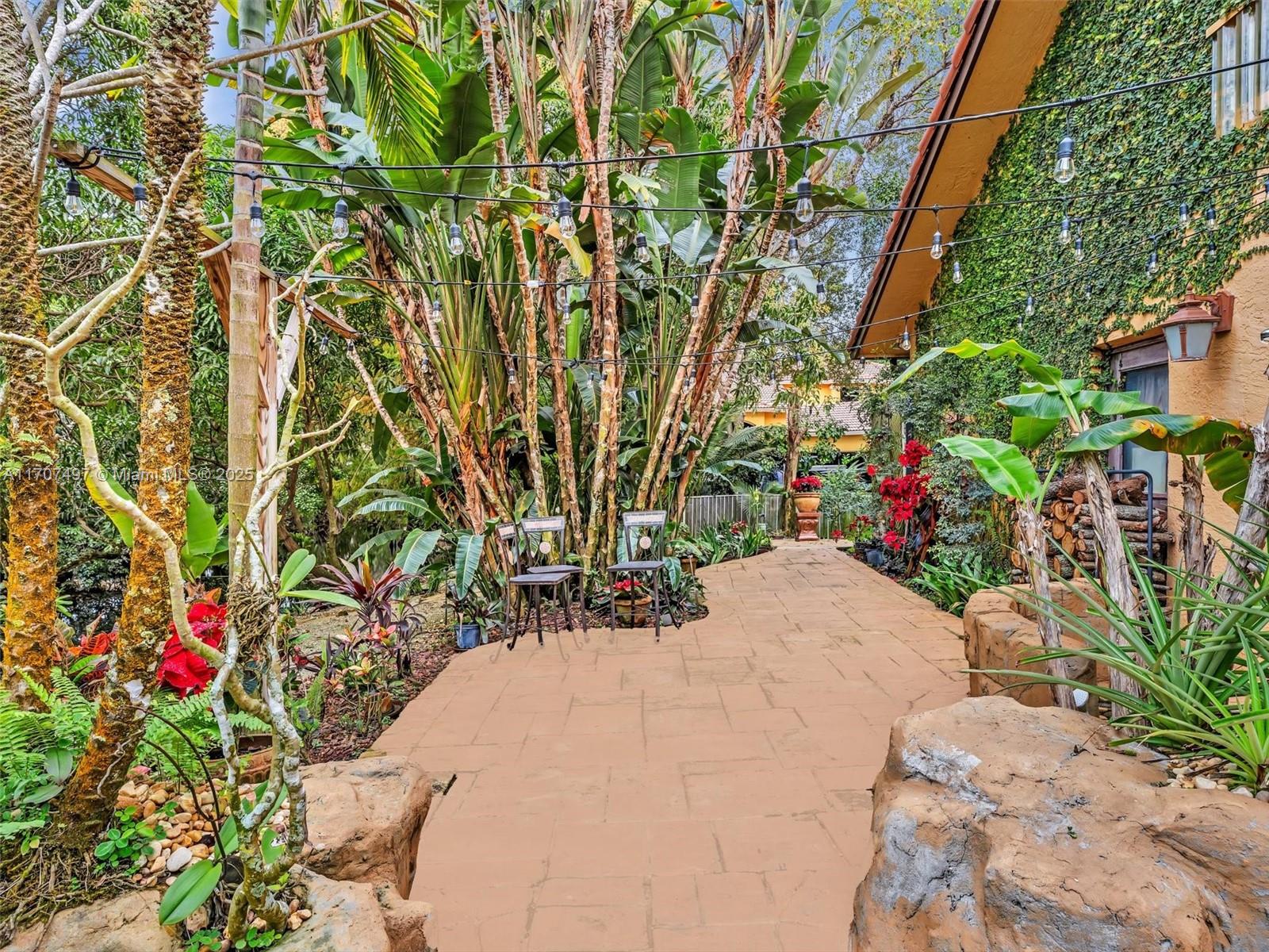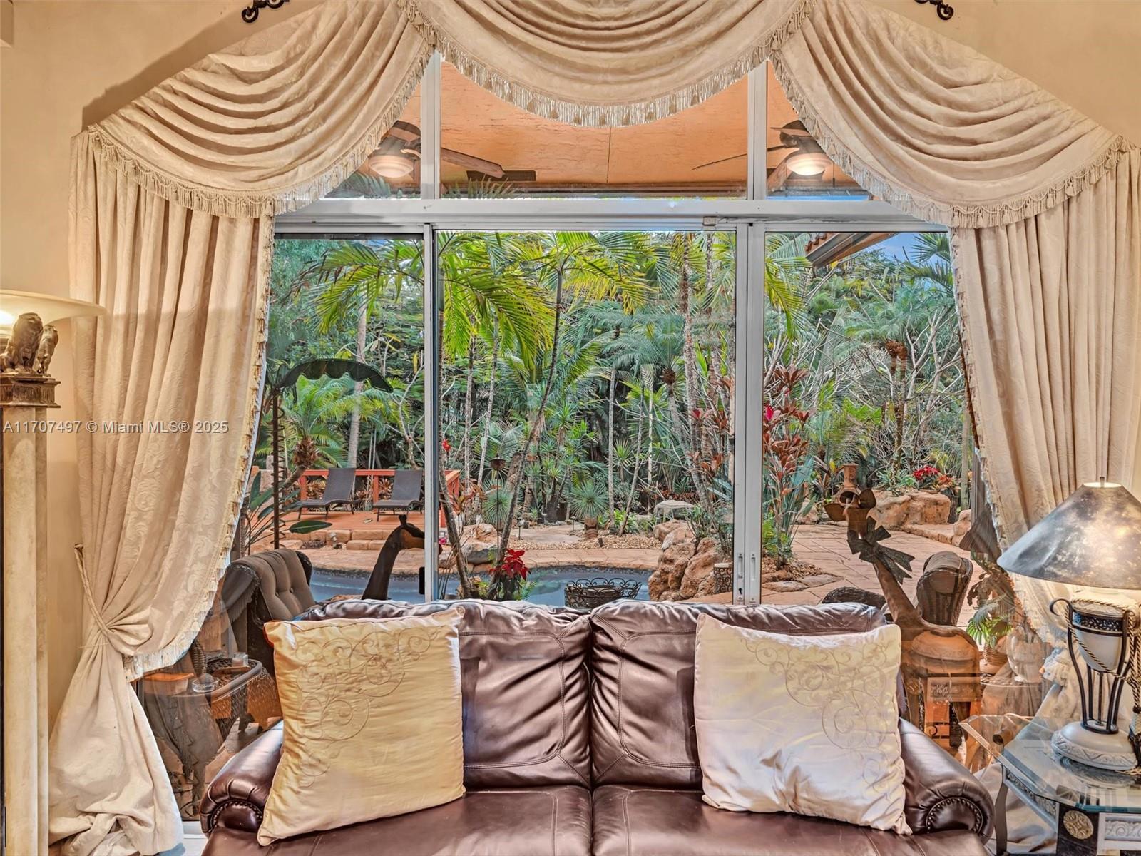 Nestled on a tropical waterfront .84 acre lot, this stunning custom-built Mediterranean-style home uniquely blends elegance & comfort. The thoughtfully designed floor plan includes 3 Bedrooms + Large Office, 2.5 Baths, and volume ceilings throughout. The private outdoor oasis features a sparkling freeform pool, outdoor shower, tiki bar, built-in BBQ area, expansive deck with a dock and hot tub overlooking the canal, & lush landscaping with fruit trees & exotic plants. Inside, the gourmet kitchen boasts Thermador appliances, custom wood cabinets & a spacious butler pantry. Relax by the wood-burning fireplace or host gatherings at the wet bar. With its balance of indoor & outdoor living, this private retreat is designed for unforgettable memories. NO HOA. NEW ROOF 2022. TWO NEW ACs.