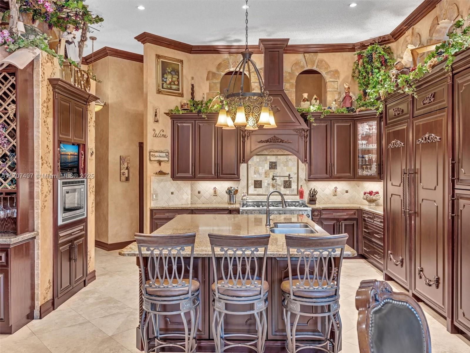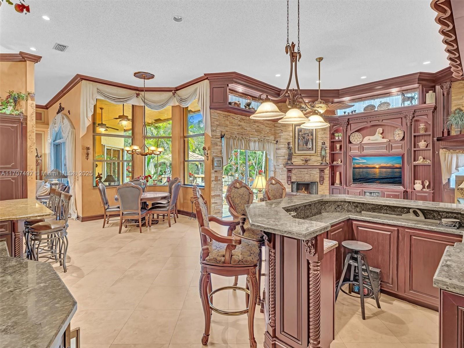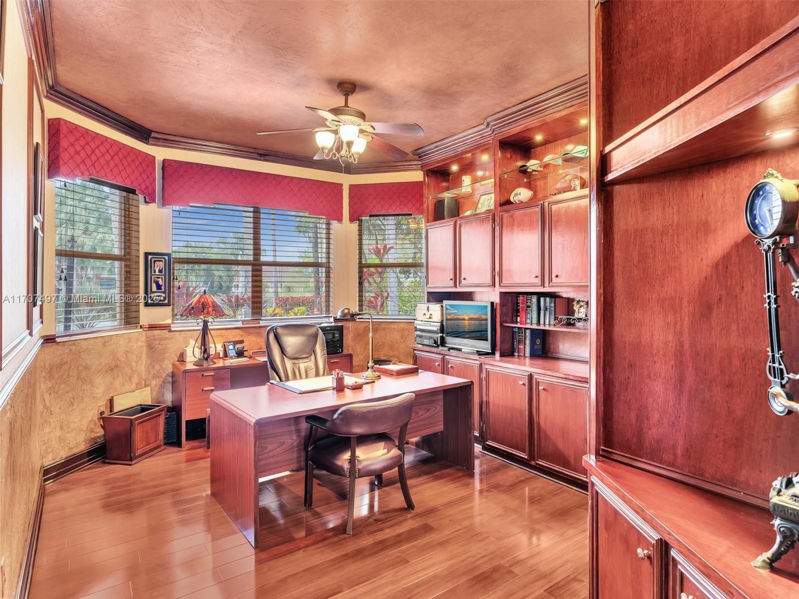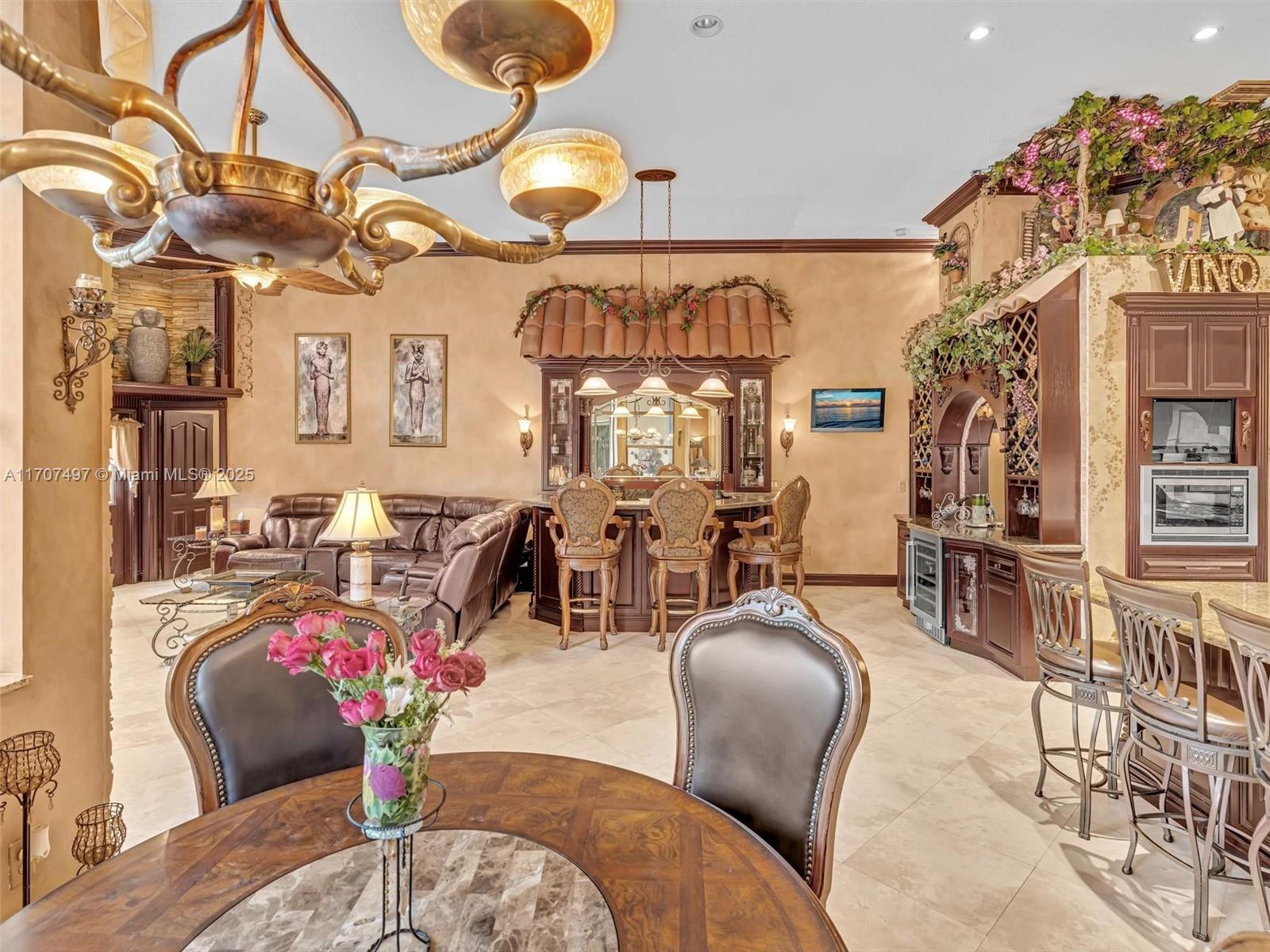 Nestled on a tropical waterfront .84 acre lot, this stunning custom-built Mediterranean-style home uniquely blends elegance & comfort. The thoughtfully designed floor plan includes 3 Bedrooms + Large Office, 2.5 Baths, and volume ceilings throughout. The private outdoor oasis features a sparkling freeform pool, outdoor shower, tiki bar, built-in BBQ area, expansive deck with a dock and hot tub overlooking the canal, & lush landscaping with fruit trees & exotic plants. Inside, the gourmet kitchen boasts Thermador appliances, custom wood cabinets & a spacious butler pantry. Relax by the wood-burning fireplace or host gatherings at the wet bar. With its balance of indoor & outdoor living, this private retreat is designed for unforgettable memories. NO HOA. NEW ROOF 2022. TWO NEW ACs.