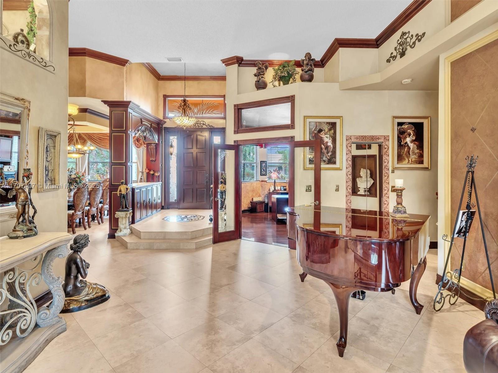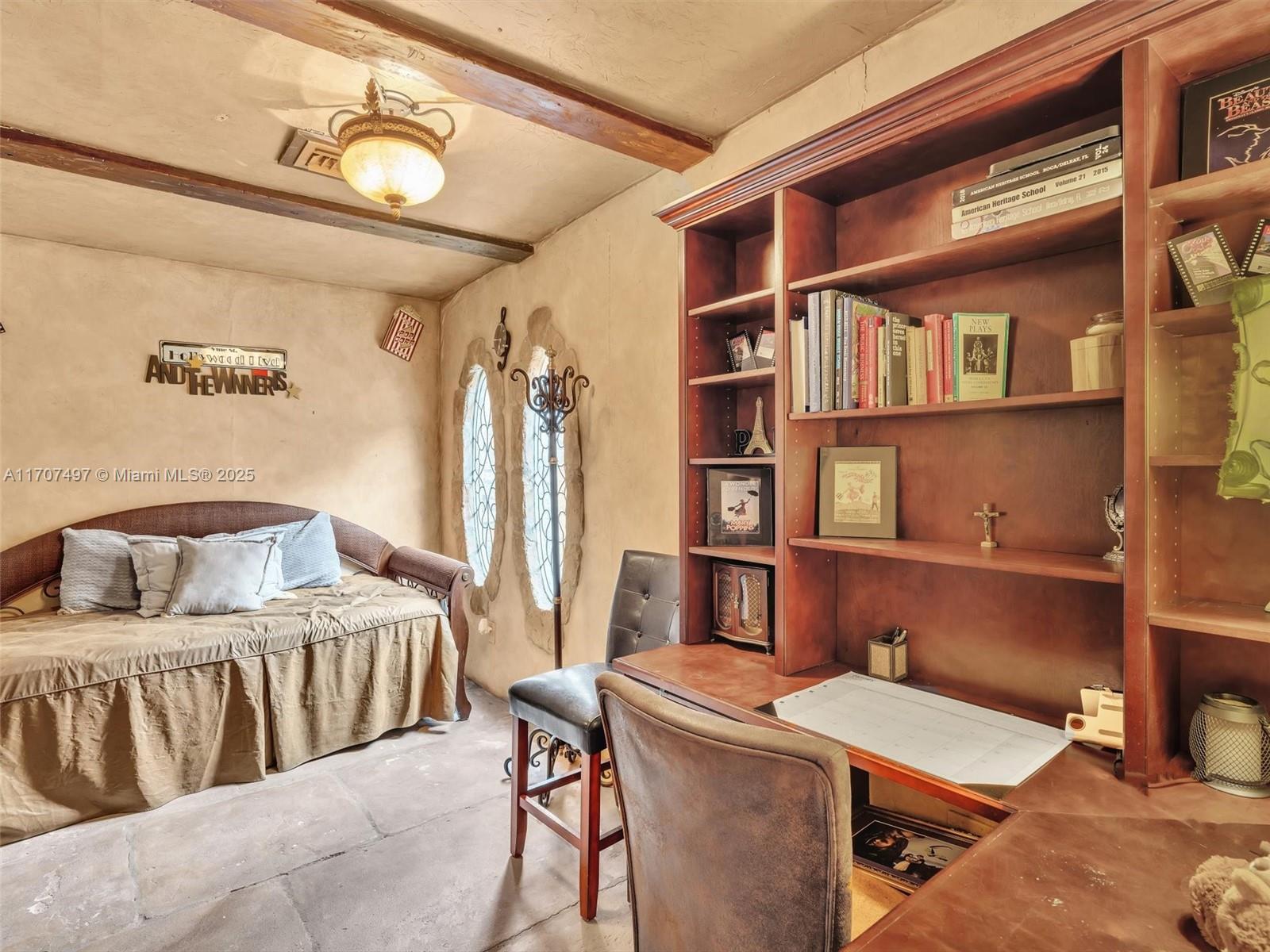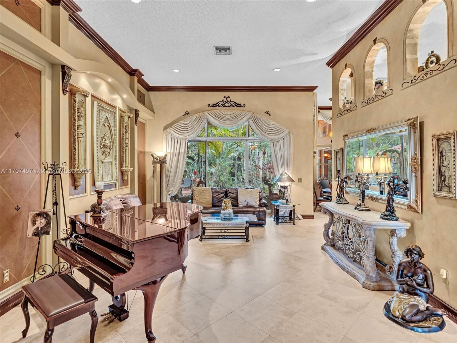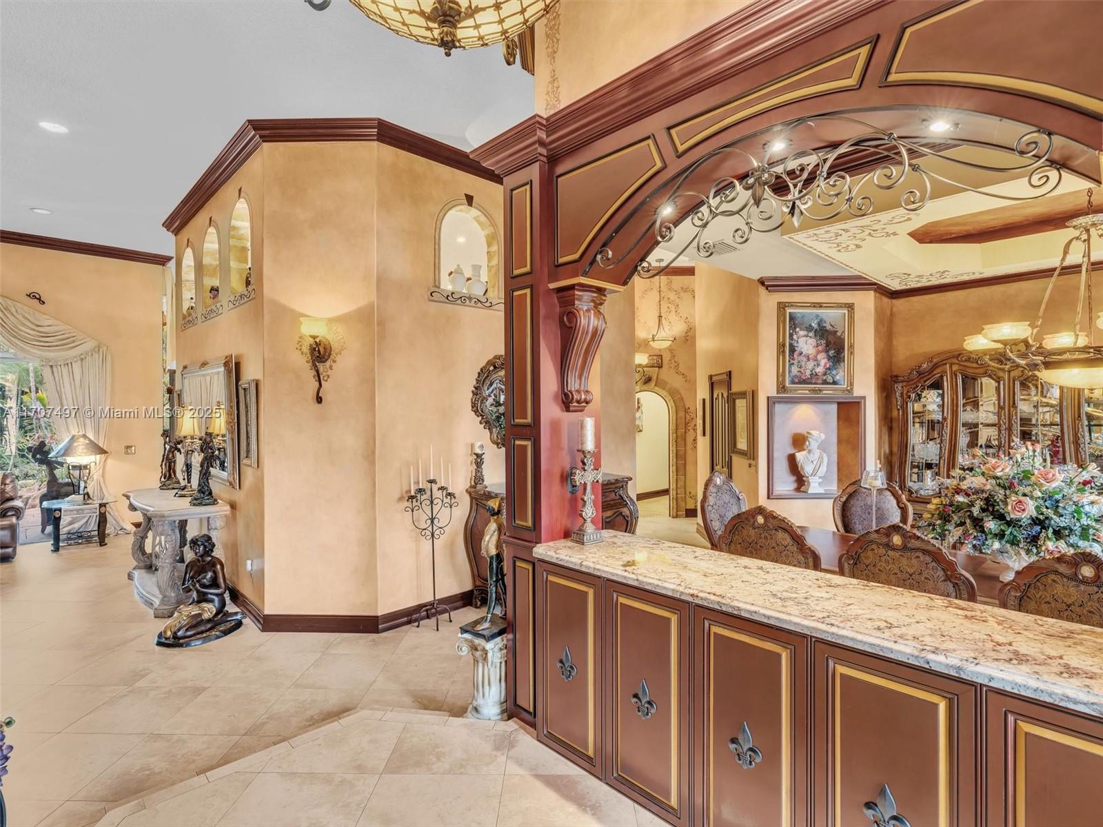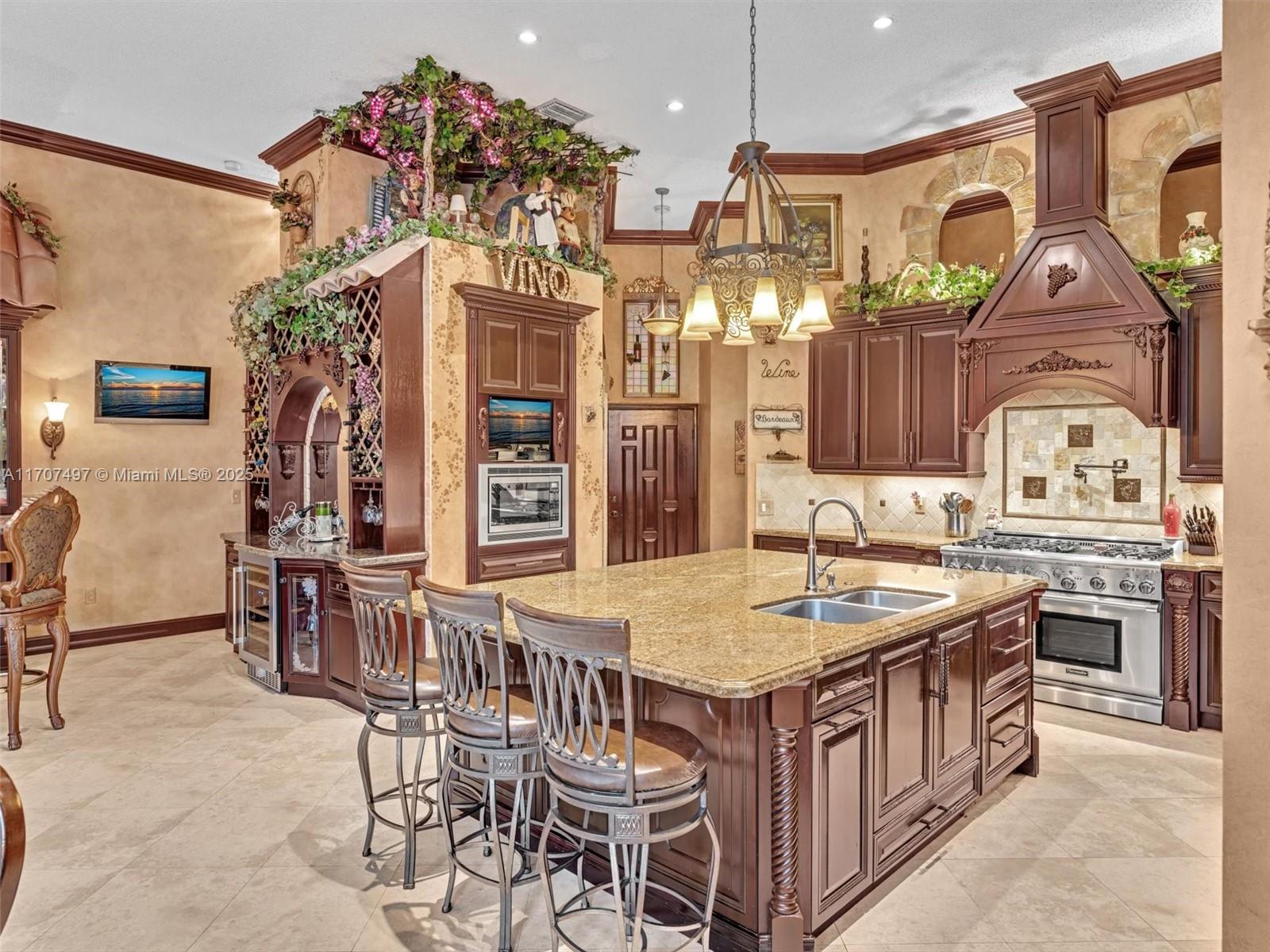 Nestled on a tropical waterfront .84 acre lot, this stunning custom-built Mediterranean-style home uniquely blends elegance & comfort. The thoughtfully designed floor plan includes 3 Bedrooms + Large Office, 2.5 Baths, and volume ceilings throughout. The private outdoor oasis features a sparkling freeform pool, outdoor shower, tiki bar, built-in BBQ area, expansive deck with a dock and hot tub overlooking the canal, & lush landscaping with fruit trees & exotic plants. Inside, the gourmet kitchen boasts Thermador appliances, custom wood cabinets & a spacious butler pantry. Relax by the wood-burning fireplace or host gatherings at the wet bar. With its balance of indoor & outdoor living, this private retreat is designed for unforgettable memories. NO HOA. NEW ROOF 2022. TWO NEW ACs.