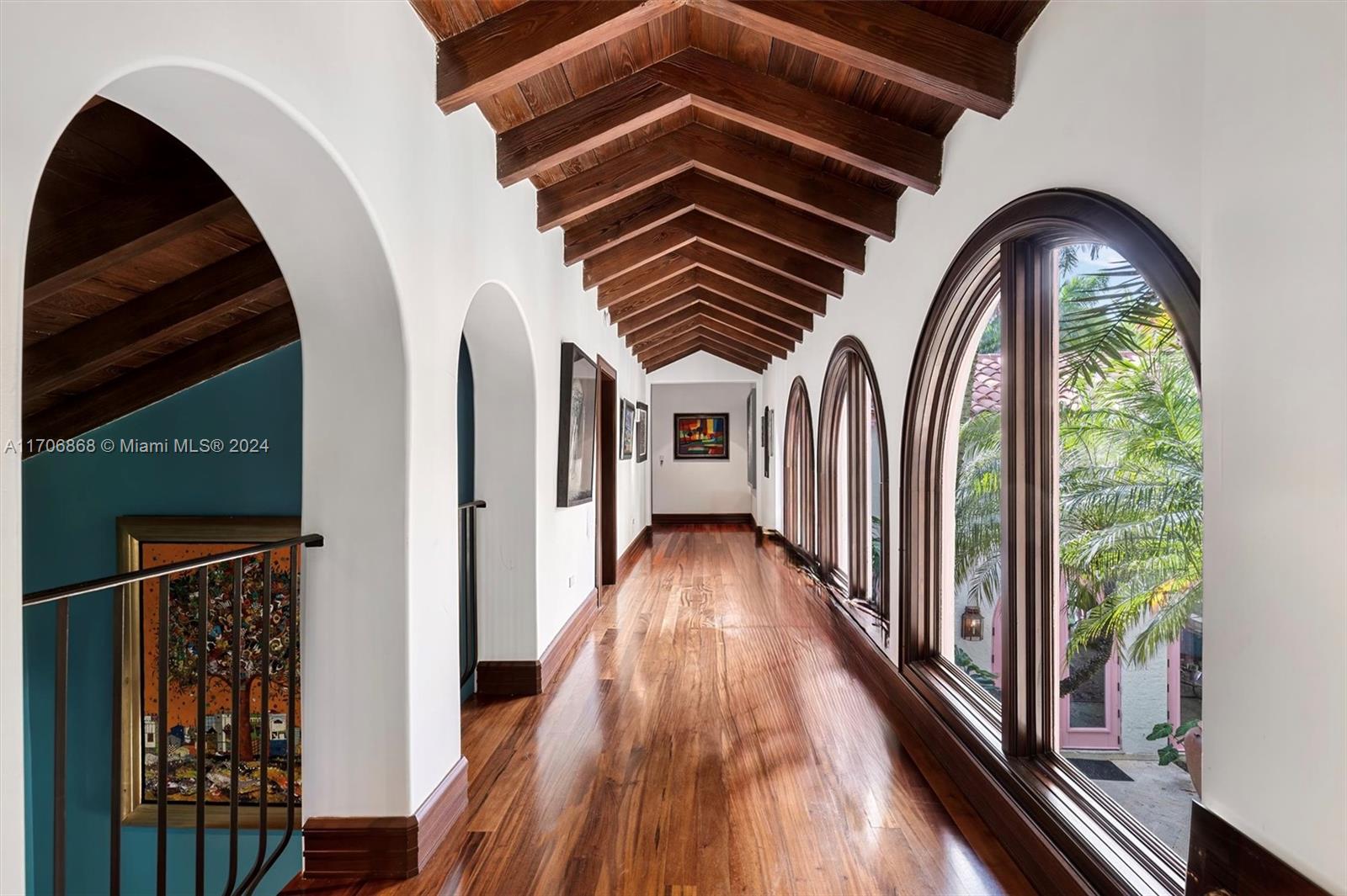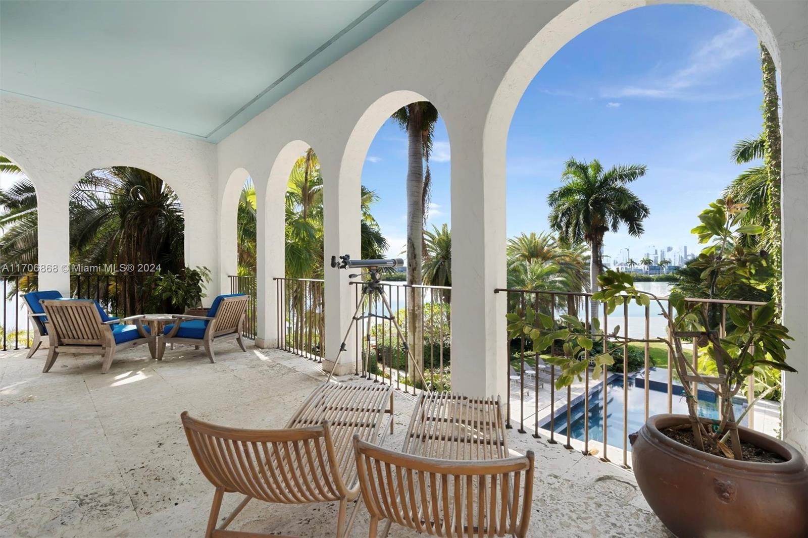 This Mediterranean Revival estate seamlessly blends classic architecture with modern luxury. Fully renovated in 2009, the home sits on a sprawling 35,348 sq. ft. lot on prestigious Palm Island, offering 220’ of prime south-facing waterfront capable of accommodating yachts up to 205’. A spacious addition includes a luxurious primary suite, chef’s kitchen, and family wing. Exceptional amenities include a home theater, gym, steam rooms, bocce court, wine cellar, heated pool, spa, private beach, and a serene courtyard. A separate guest house, smart home technology, lighting controls, and solar panels complete this lush, gated haven. Surrounded by exotic landscaping, this estate embodies sophistication and privacy in the exclusive, police-guarded Palm Island community.