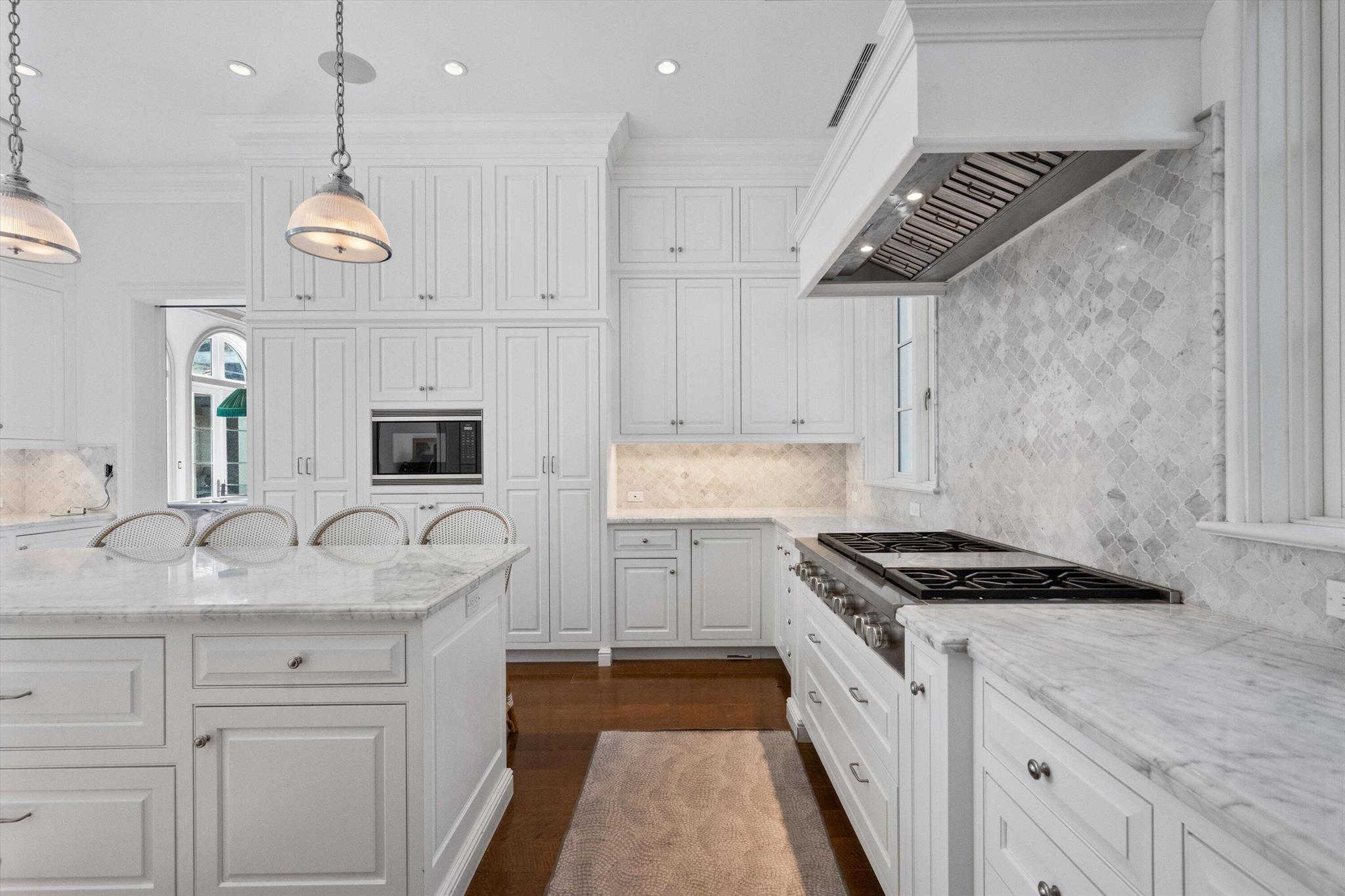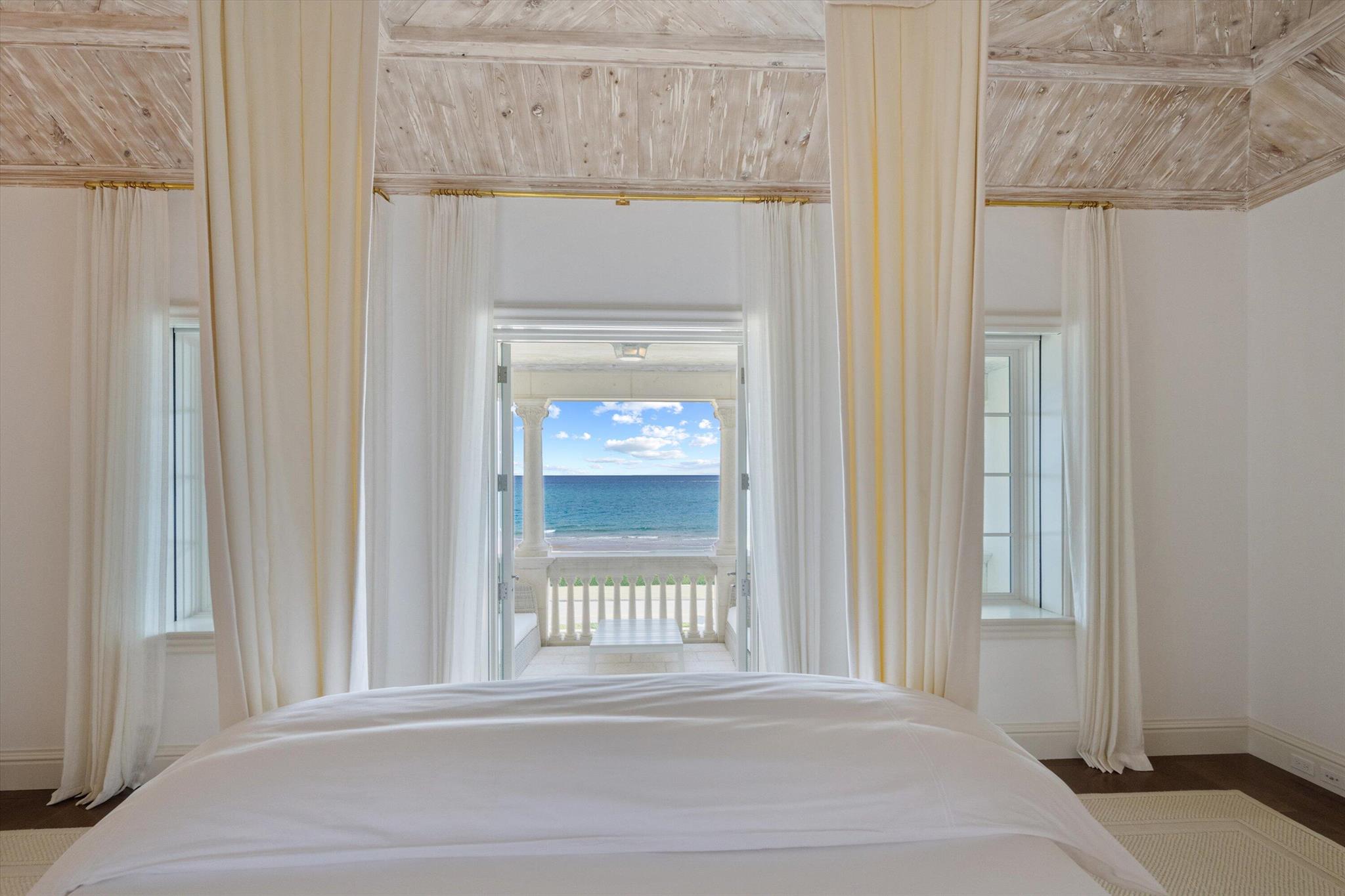 This luxurious Mediterranean oceanfront seven-bedroom estate has been beautifully renovated and is set on over half an acre offering stunning water views with a wealth of amenities for effortless coastal living. Curated by AD 100 designer Daniel Romualdez for gracious entertaining, it features an ocean-view living room with a gas fireplace, a club room with a full bar, a paneled oceanfront library, a day oceanfront living room, a formal dining room, a wood beamed entertainment room, and a gourmet chef's eat-in kitchen with a marble island, high end appliances, and a butler's pantry. Beachside enjoyment is elevated with covered loggias overlooking both the ocean and the pool, an expansive heated pool with a built-in spa, a cabana with a bath, and a shaded patio for poolside dining.