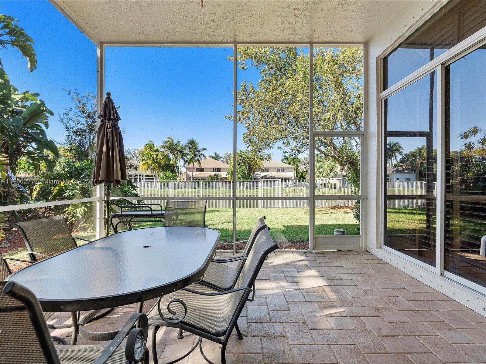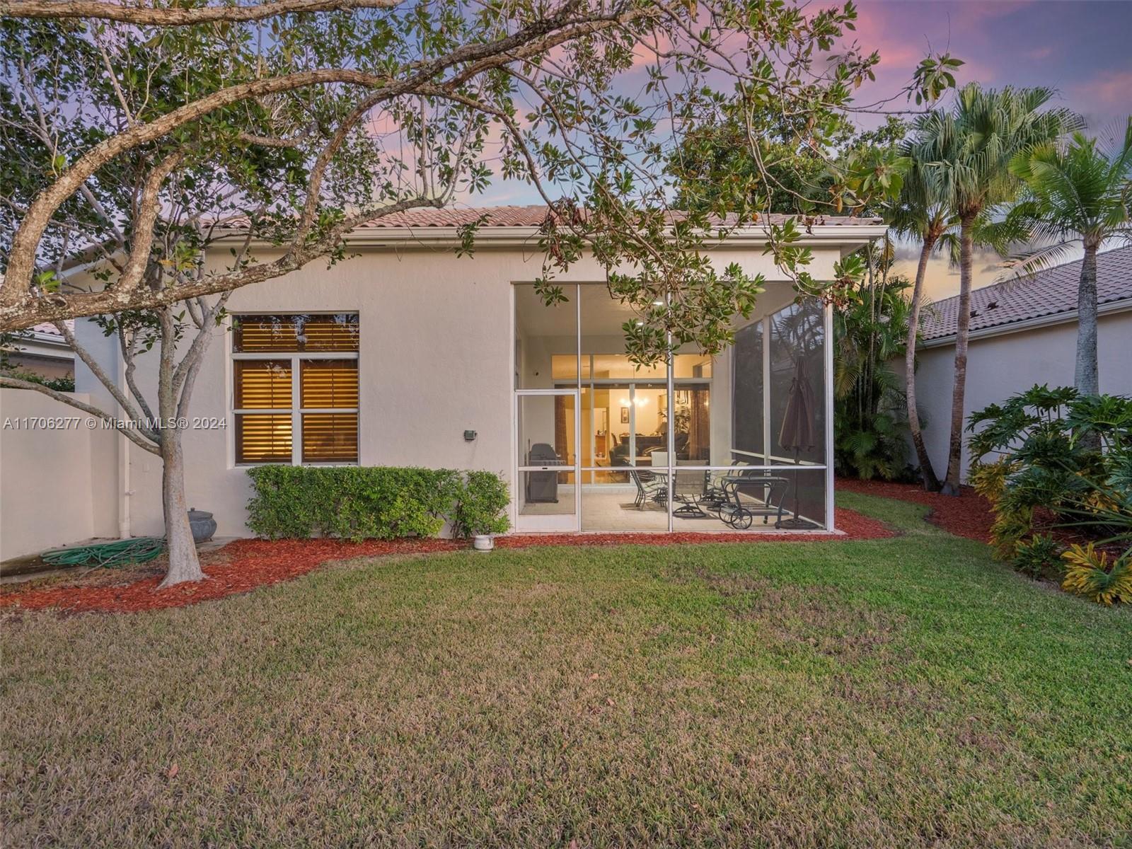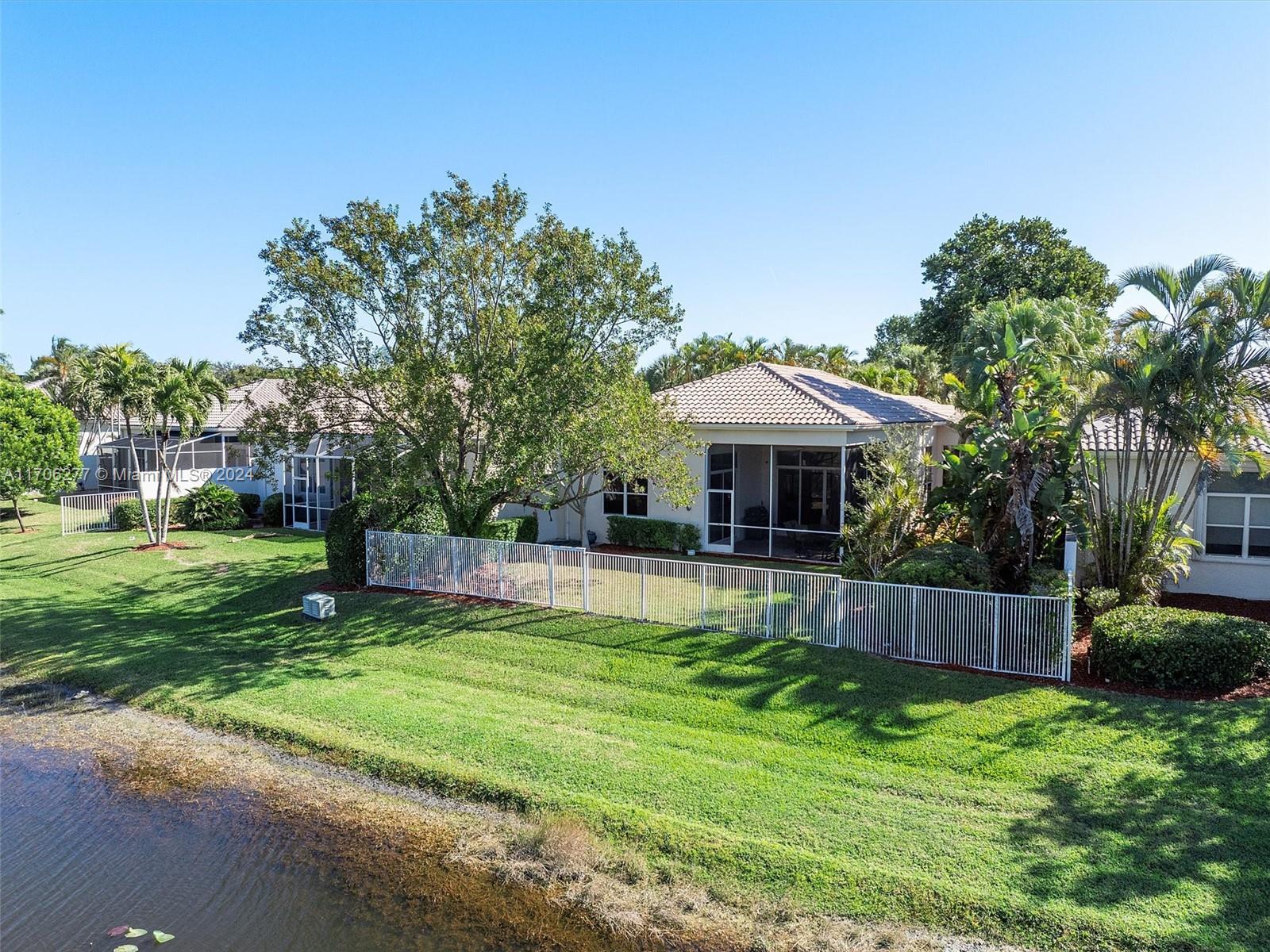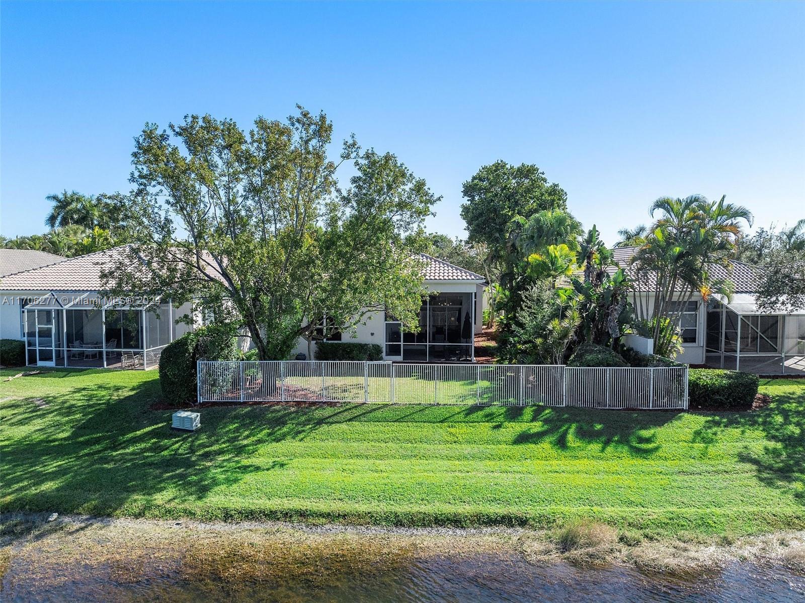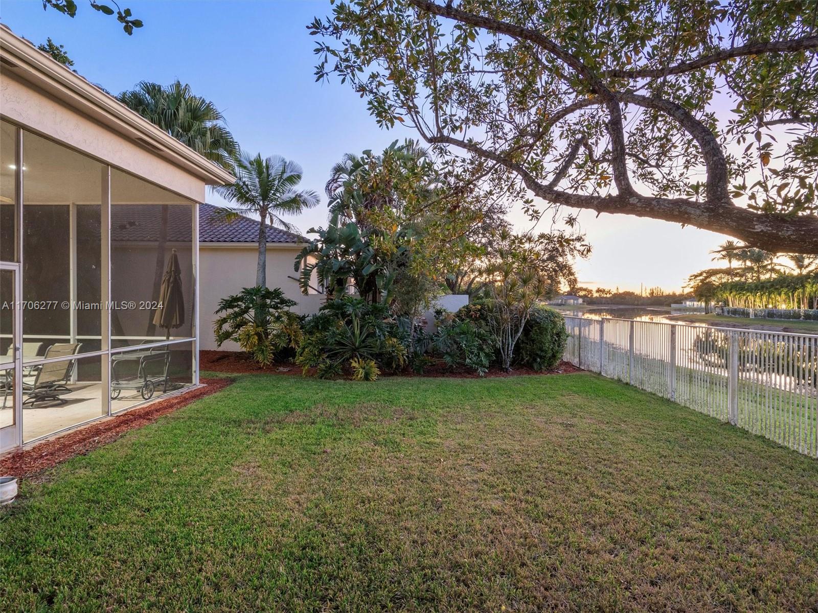 Beautiful 3 bedrooms 3 full bathrooms one-story waterfront home in the gated community of Bay Pointe at Weston Hills. Spacious open floor plan with soaring ceilings and serene lake views. Bright and airy living and dining areas. Kitchen features wood cabinets, granite countertops, stainless steel appliances and a breakfast nook. Wood and tile flooring in common areas. Primary suite offers 2 walk-in closets and large bathroom with tub, shower and dual sinks. One guest bedroom is en-suite with private bathroom. Relax and enjoy breathtaking sunsets from the oversized screened patio overlooking the large fenced backyard, with room for a pool, ideal for entertaining! Large laundry room with sink and 2-car garage. Enjoy 5-star resort-style amenities. Close to I-75, dining and parks. A+ schools.