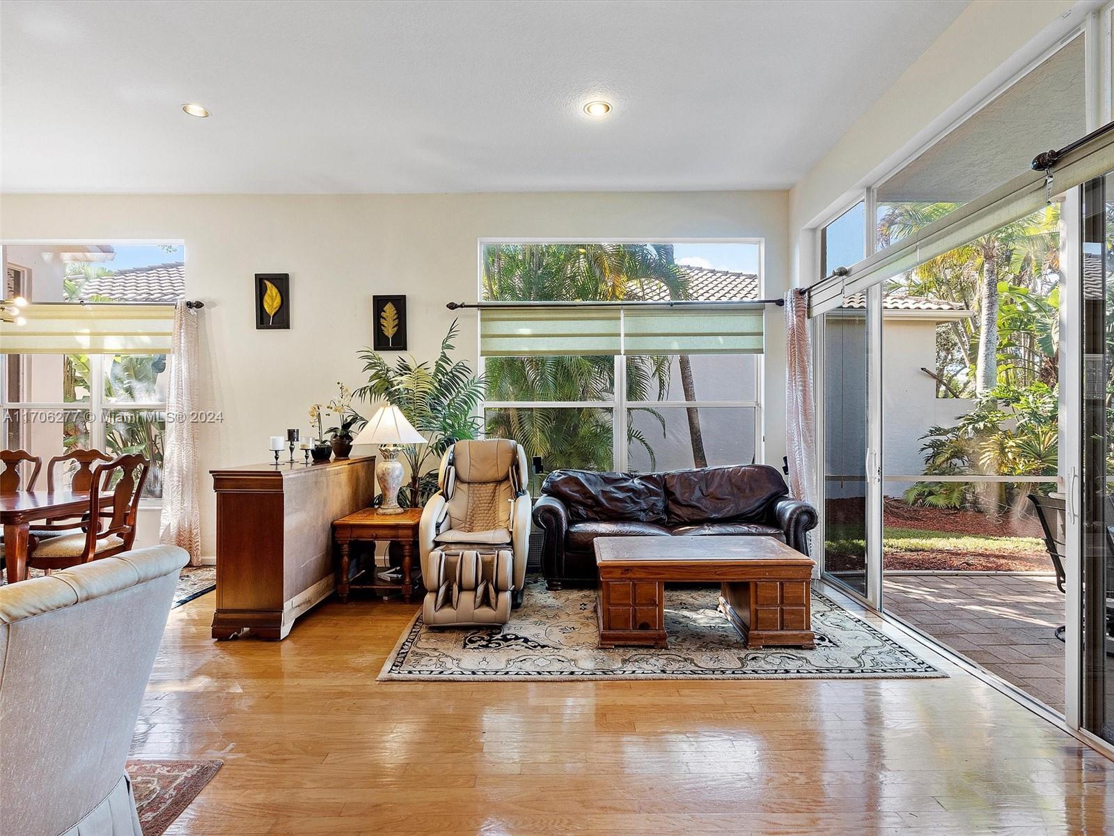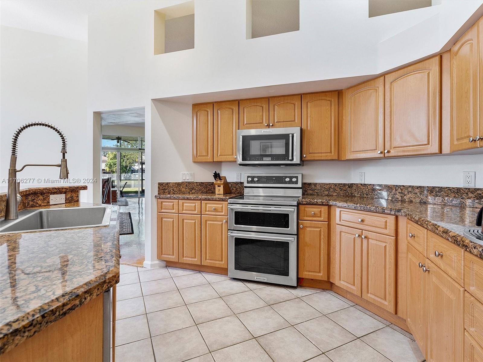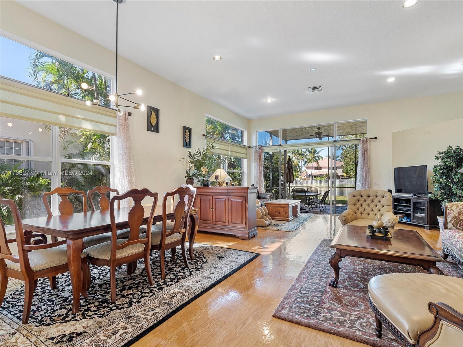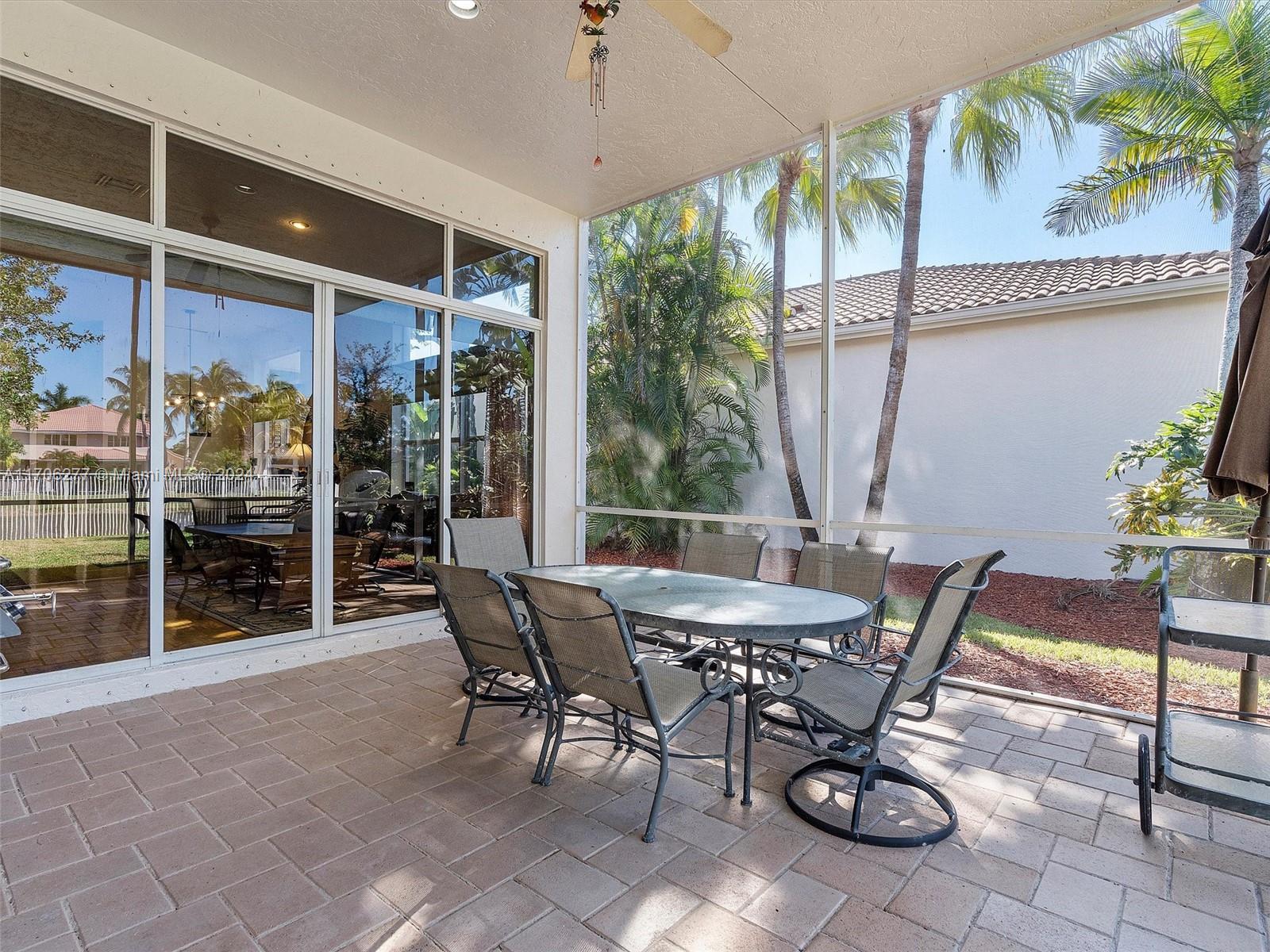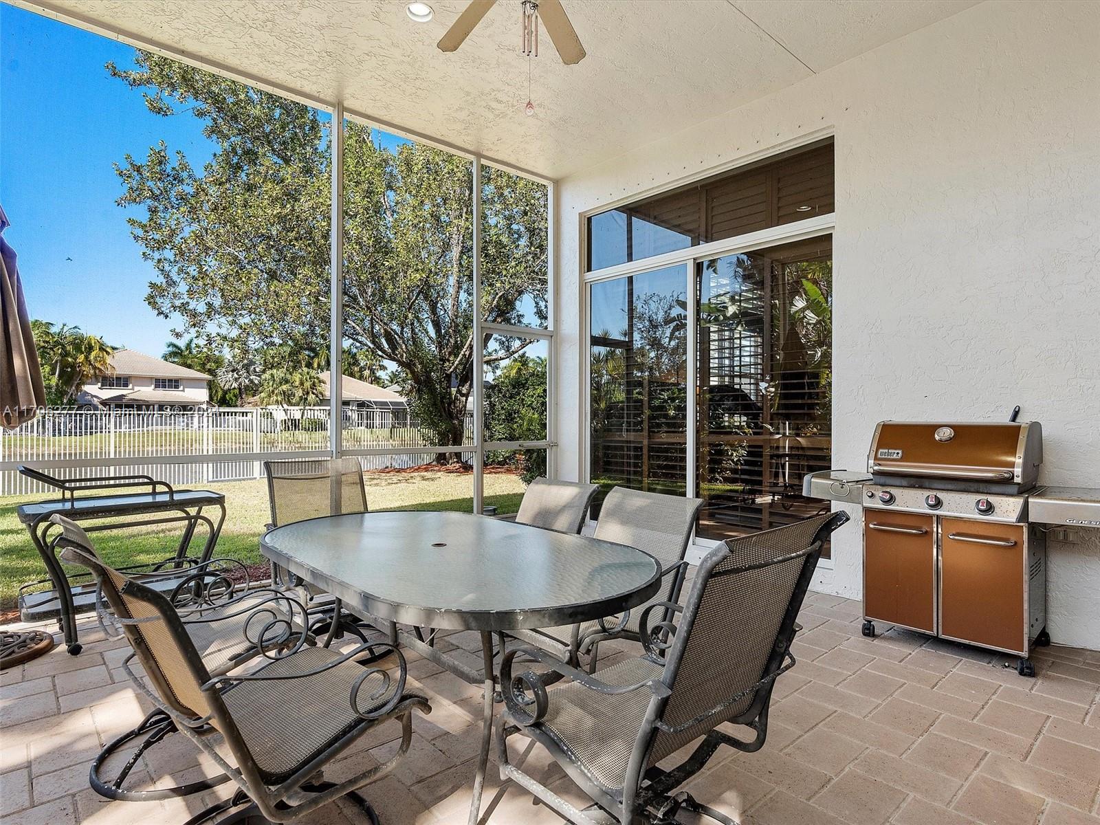 Beautiful 3 bedrooms 3 full bathrooms one-story waterfront home in the gated community of Bay Pointe at Weston Hills. Spacious open floor plan with soaring ceilings and serene lake views. Bright and airy living and dining areas. Kitchen features wood cabinets, granite countertops, stainless steel appliances and a breakfast nook. Wood and tile flooring in common areas. Primary suite offers 2 walk-in closets and large bathroom with tub, shower and dual sinks. One guest bedroom is en-suite with private bathroom. Relax and enjoy breathtaking sunsets from the oversized screened patio overlooking the large fenced backyard, with room for a pool, ideal for entertaining! Large laundry room with sink and 2-car garage. Enjoy 5-star resort-style amenities. Close to I-75, dining and parks. A+ schools.