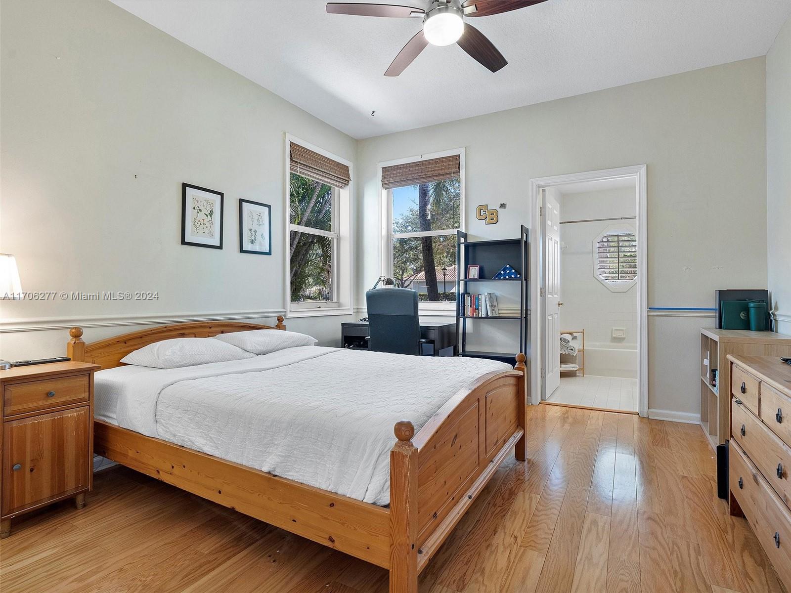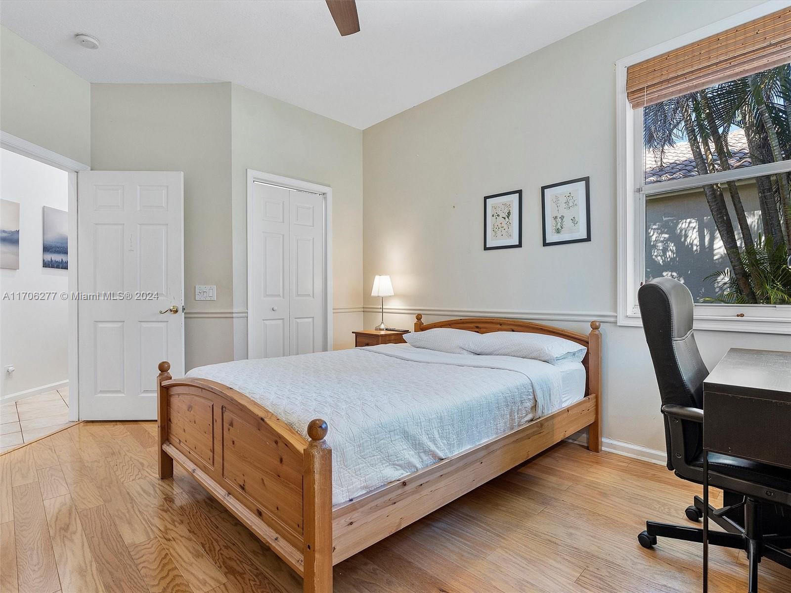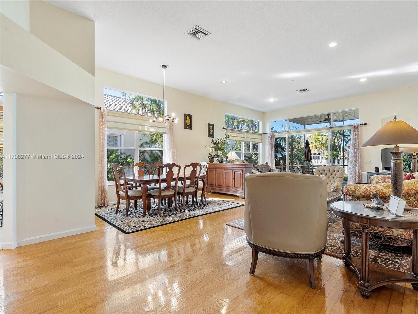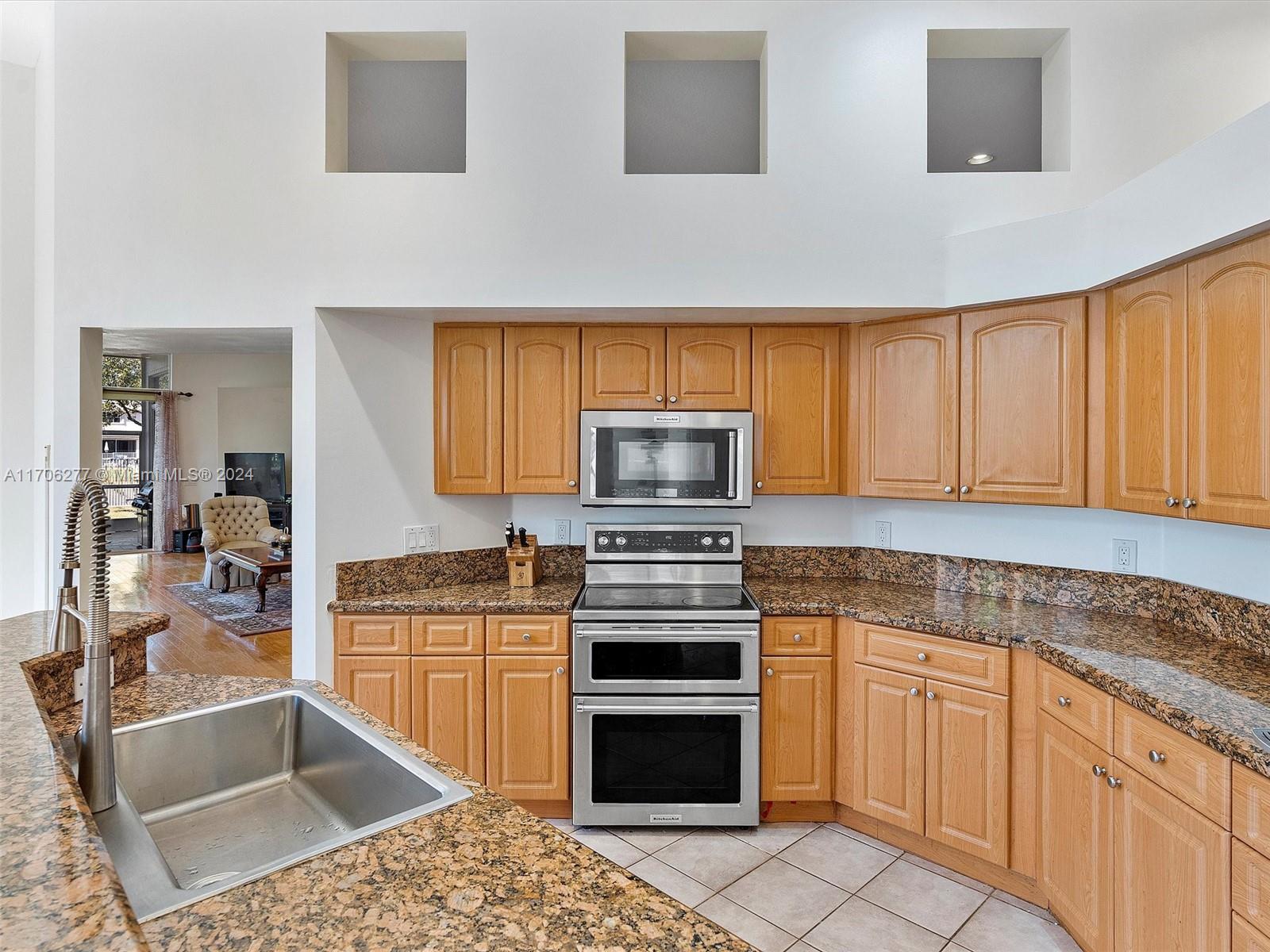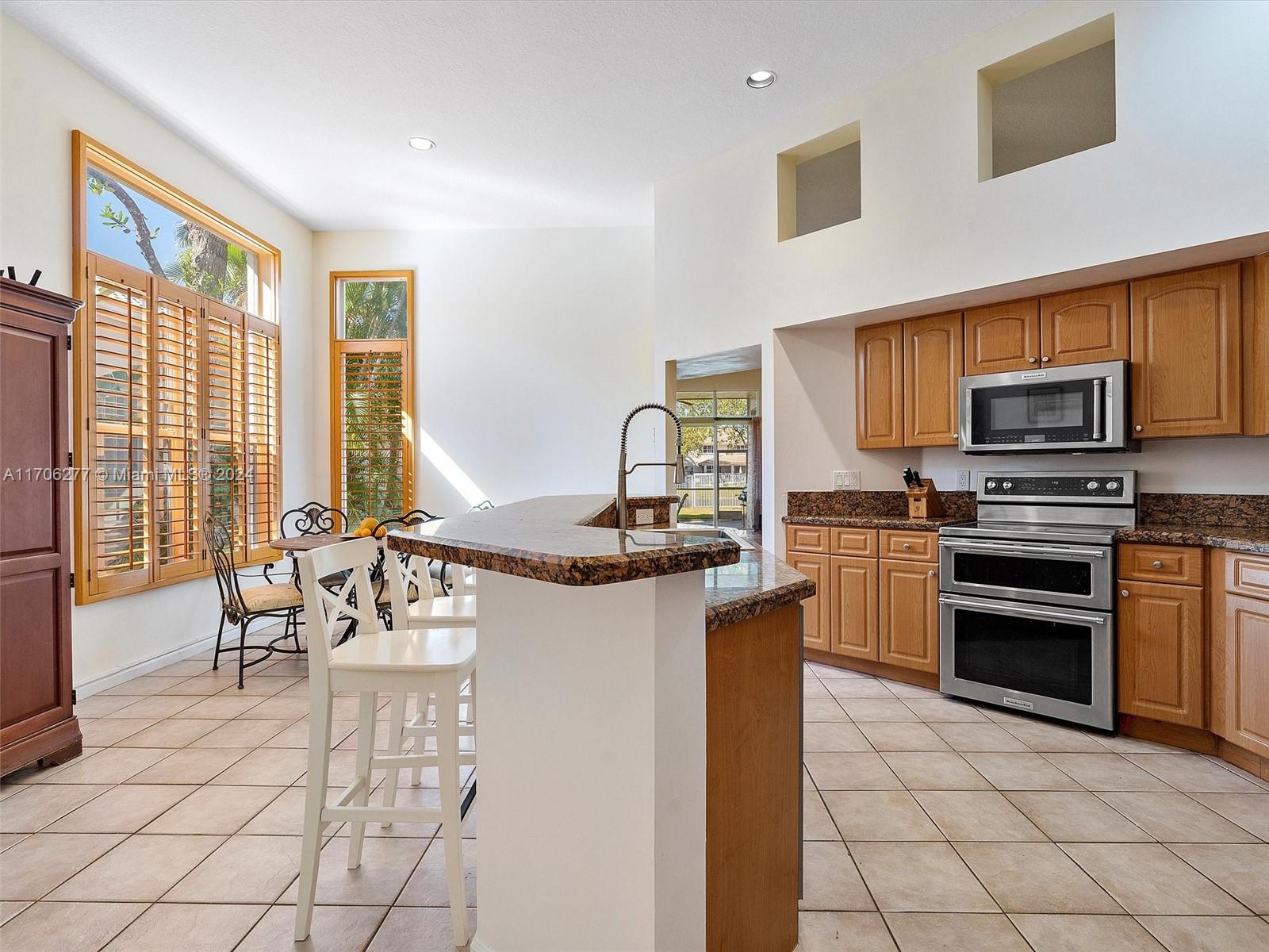 Beautiful 3 bedrooms 3 full bathrooms one-story waterfront home in the gated community of Bay Pointe at Weston Hills. Spacious open floor plan with soaring ceilings and serene lake views. Bright and airy living and dining areas. Kitchen features wood cabinets, granite countertops, stainless steel appliances and a breakfast nook. Wood and tile flooring in common areas. Primary suite offers 2 walk-in closets and large bathroom with tub, shower and dual sinks. One guest bedroom is en-suite with private bathroom. Relax and enjoy breathtaking sunsets from the oversized screened patio overlooking the large fenced backyard, with room for a pool, ideal for entertaining! Large laundry room with sink and 2-car garage. Enjoy 5-star resort-style amenities. Close to I-75, dining and parks. A+ schools.