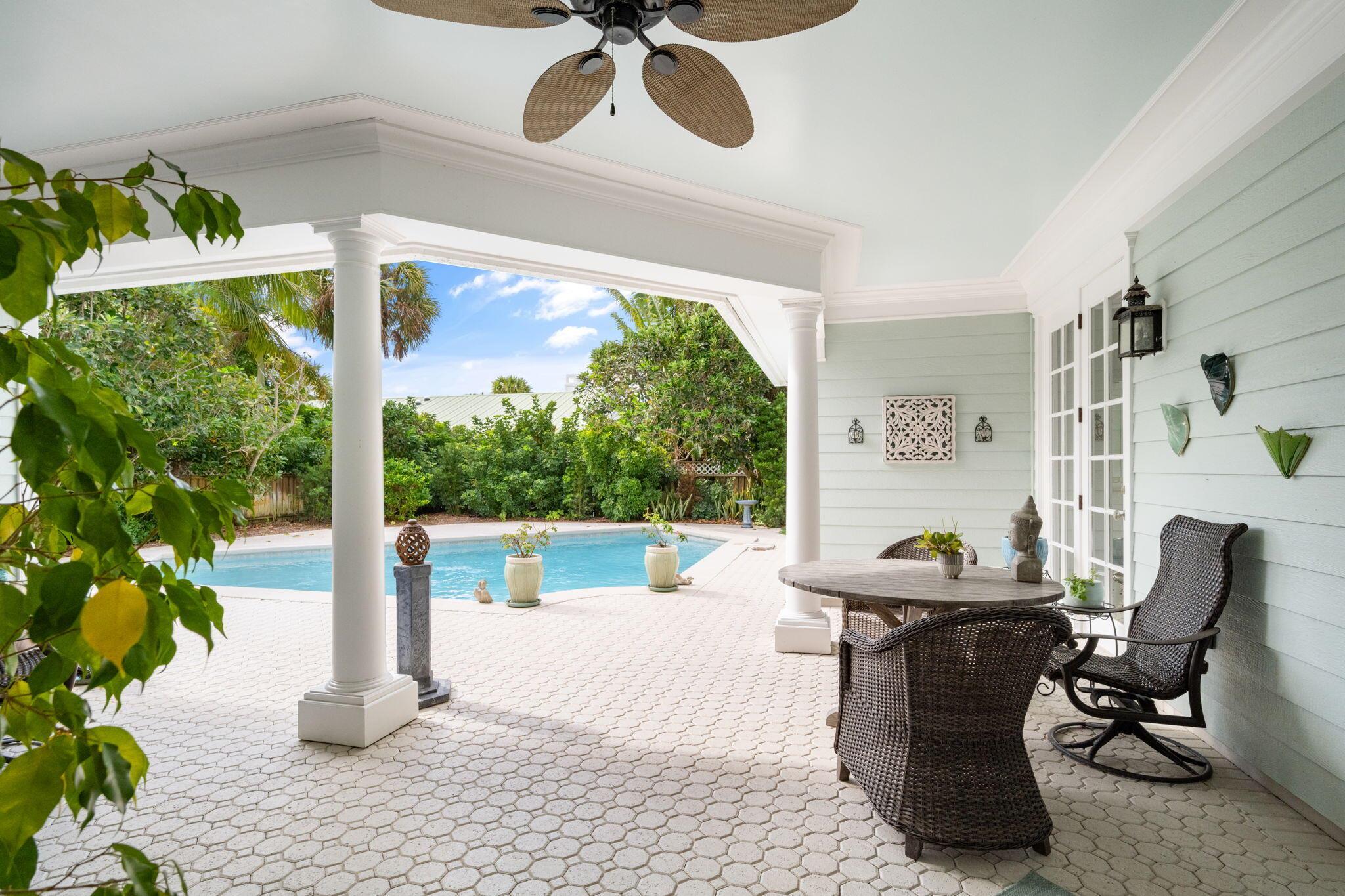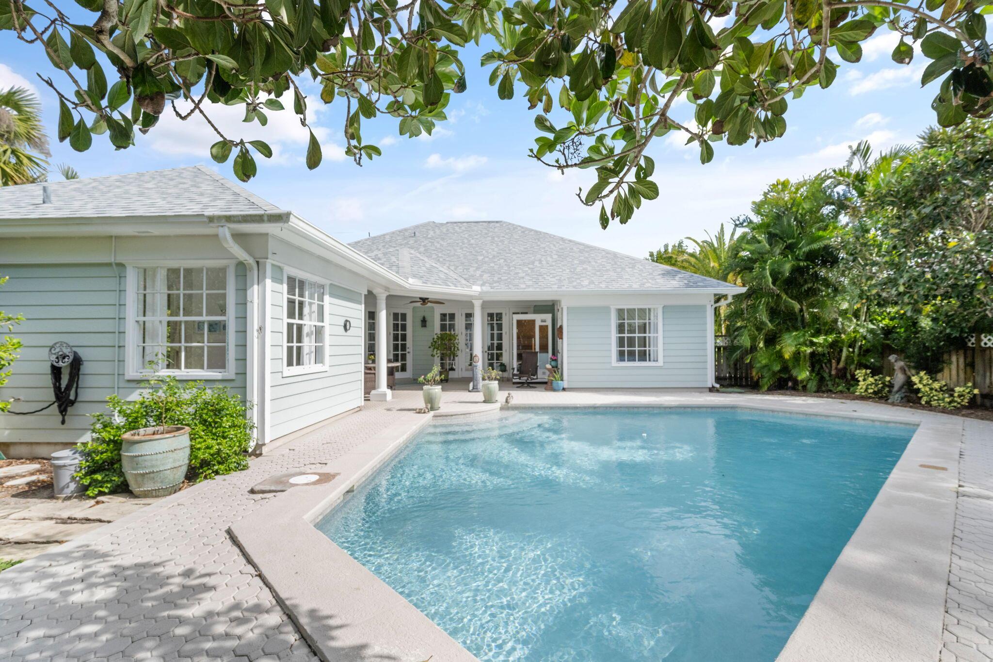 Prime Ocean Drive location in Vero Beach! This 3 bed, 2 bath, 2 car garage pool home is a coastal gem just steps from the beach. Enjoy ocean breezes, beach cottage charm, open living, and floor-to-ceiling windows with volume/coffered ceilings. Features include butcher block kitchen island, white oak floors, and floor to ceiling dining room bookshelves. Located just minutes from the Ocean Drive village with boutique shopping, fine dining, and local events. Perfect for year-round living or seasonal retreat, offering a private pool, beach access, and ultimate coastal lifestyle.