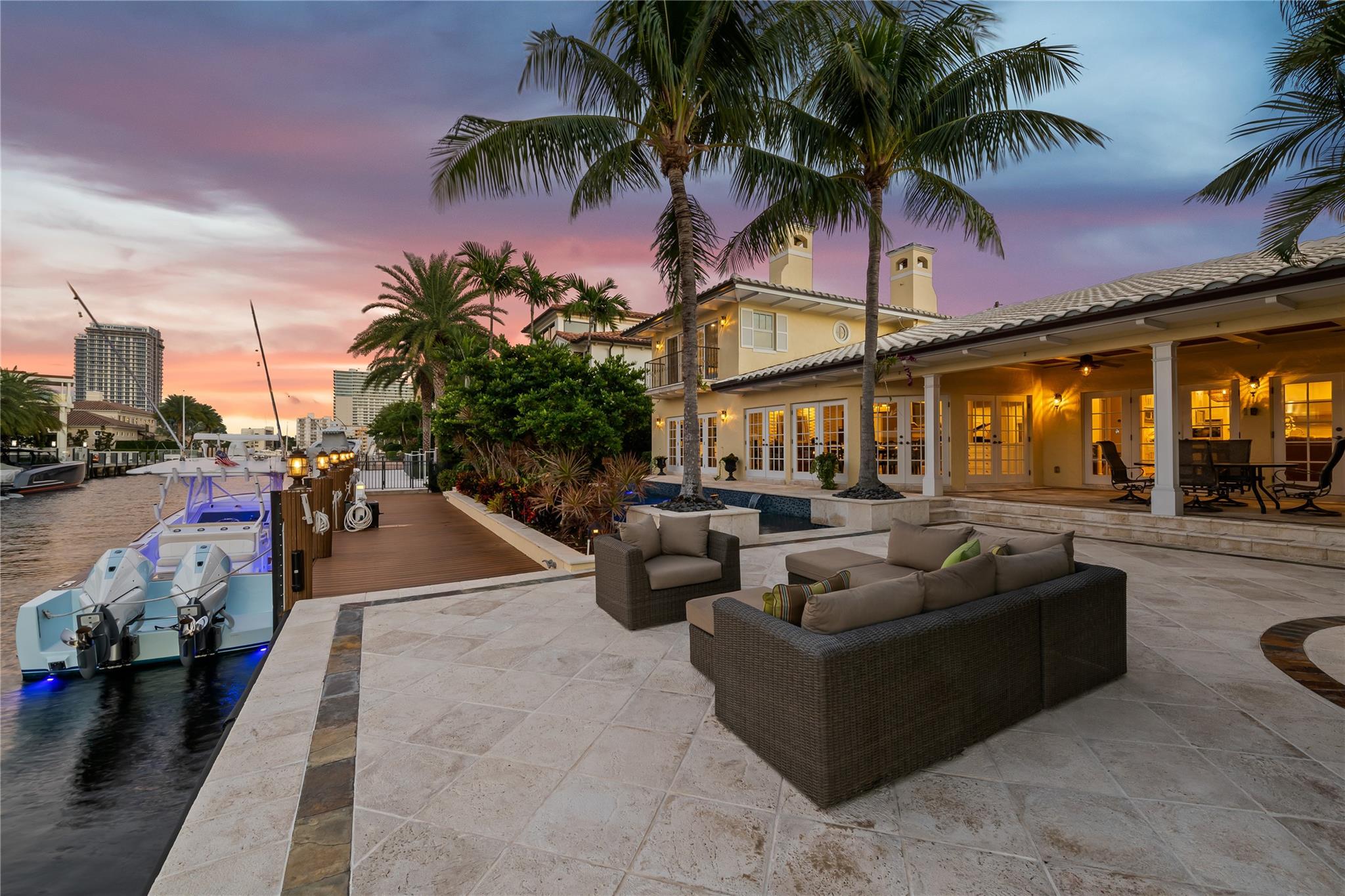 Major Renovation from 2006-2008 (total A/C SF including garage: 4,961) This Florida home boasts an exceptional layout with 85' of ocean access and an air conditioned 2-bay garage. Residing in the privately patrolled Seven Isles community in Las Olas steps from restaurants and beaches. Designed by architect Bill Storrs, it blends elegance and functionality. Chef's kitchen fully equipped with top-of-the-line Wolf, Sub-Zero, and Gaggenau. Marble and stone adorn all bathrooms, including a steam shower, ground-floor in-law suite and cabana bath. House generator, spa + saltwater heated pool, complemented by three gas fireplaces for cozy evenings. Large primary bedroom suite offers a balcony with views of the pool and waterway while catching the ocean's breeze. *HOA is Voluntary