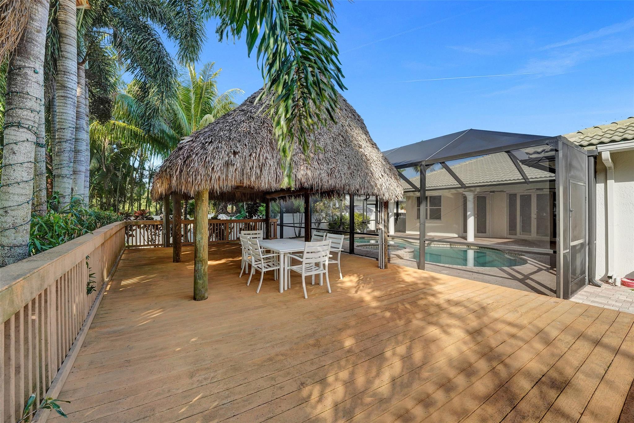 Gorgeous renovated five bedroom three bath estate home in the heart of Davie. Split floor plan with an office next to the master bedroom. Located in a gated community with 15 estate Homes. Fenced backyard with gorgeous heated, pool and Jacuzzi. Paved driveway, pool and walkways. A rare find. Large tiki hut and decking for parties and gatherings. Small chicken coop , a very large shed, Fruit trees. Lemon, mangoes, coconuts and more. gourmet kitchen w/ Vaulted ceiling. Formal dining room. 2 AC units. 2 water heaters. Large circular driveway. Two car garage. Near turnpike, great schools 5 minutes away ( summit Questa). Nova university. Electric hurricane shutters with remote controls. Wood floors. We can’t say enough! Many happy family times. Wonderful, and friendly neighbors