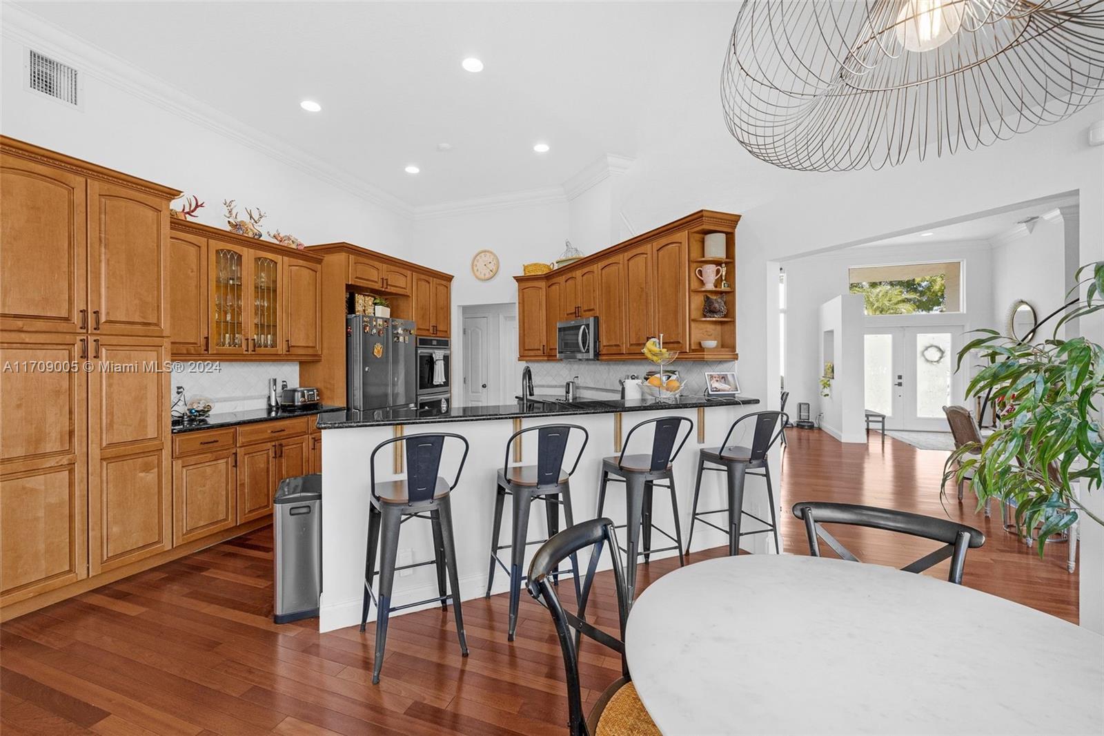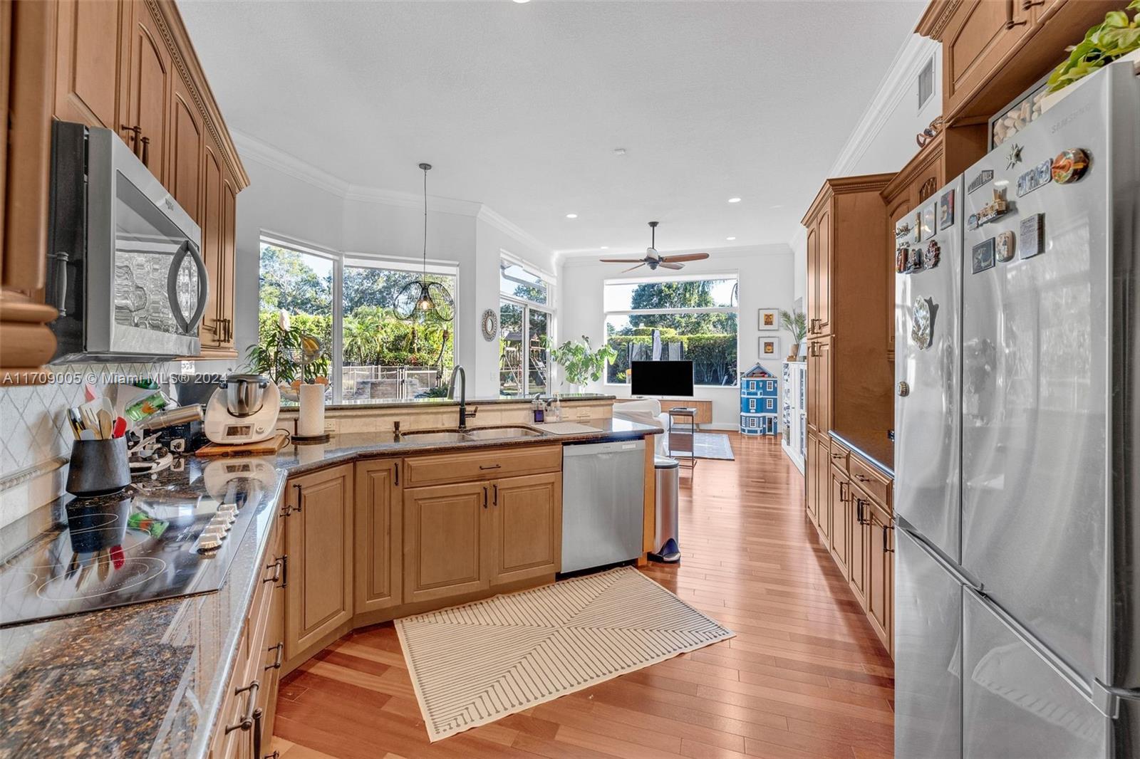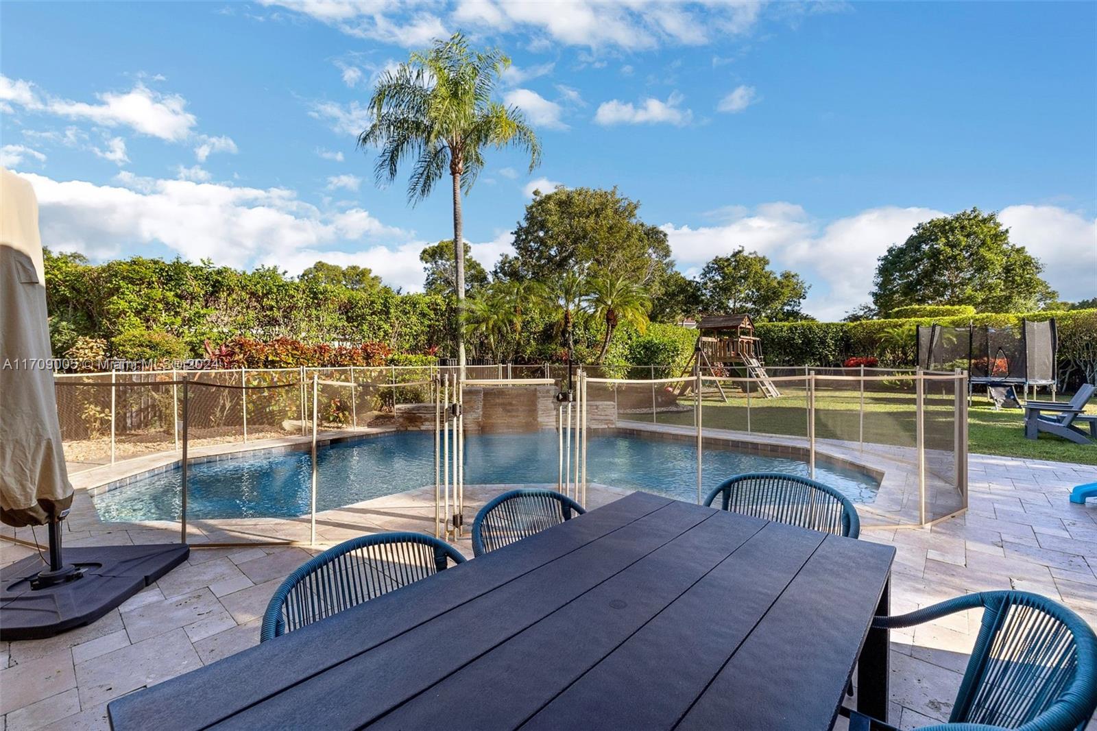 Beautifully upgraded home on a rare private oversized lot in The Lakes, Weston. This 4BR/2.5BA home features a spacious floor plan with elegant hardwood floors, impact windows, a new A/C unit, and new appliances. The master suite overlooks the sparkling pool and lanai, while the backyard offers privacy with lush trees and no visible neighbors. Perfect for entertaining, the outdoor space includes a grilling station with granite countertops and a small refrigerator. The updated kitchen boasts stainless steel appliances, granite countertops, and ample seating. Located in a gated, family-friendly community with 24-hour security, enjoy amenities like a playground, soccer field, and community pool. Close to top-rated schools, this home is the lifestyle upgrade you’ve been waiting for