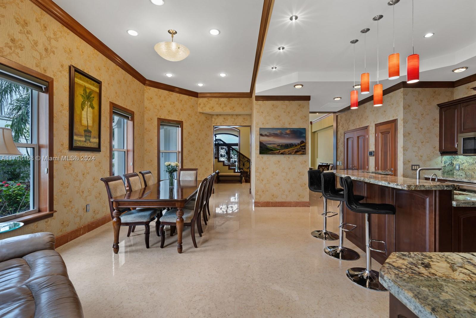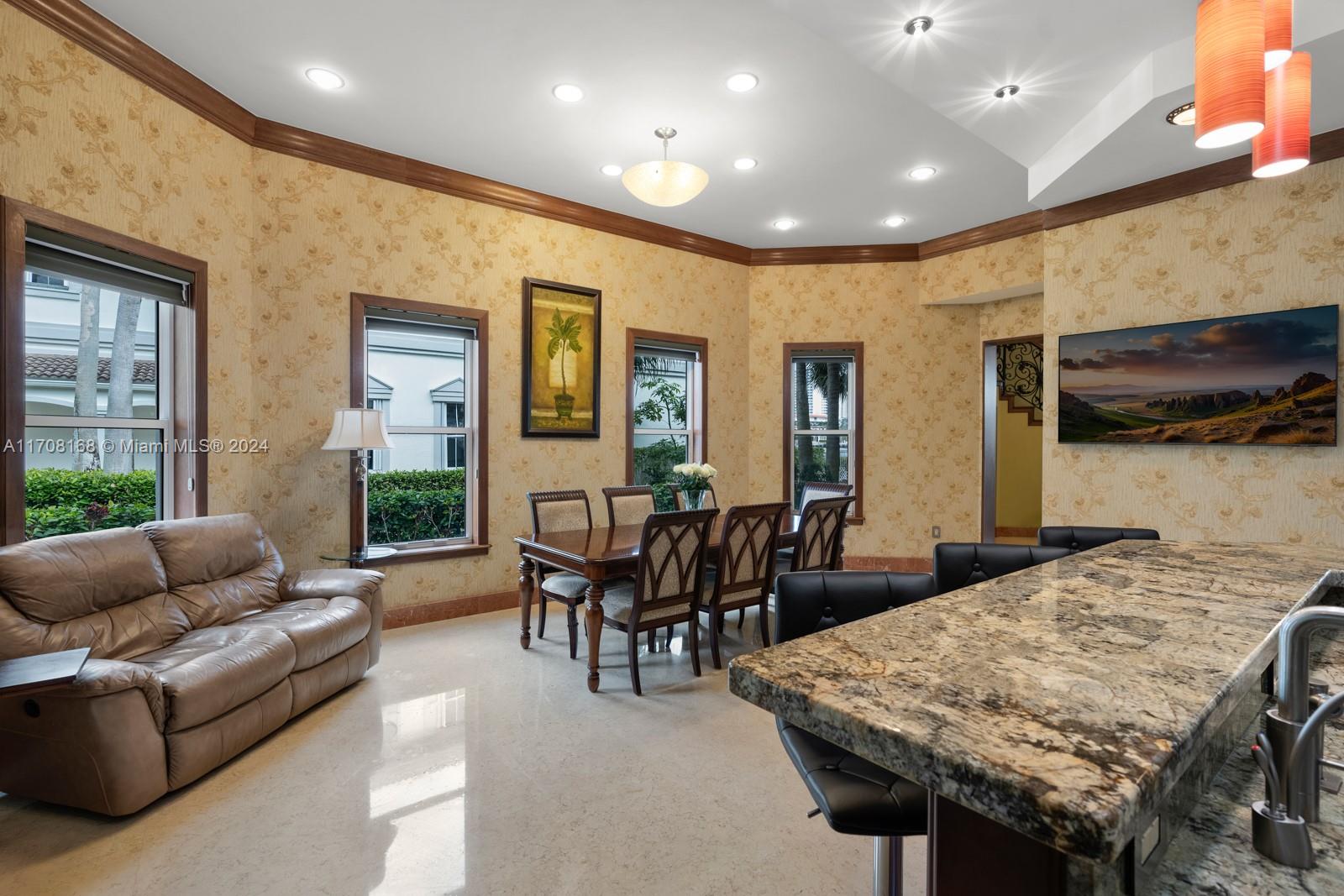 Stunning waterfront townhome in the prestigious Courtyards at The Point, a guard-gated community. This corner unit offers serene wide Intracoastal views, a deeded private dock, and a spacious master suite with a private balcony overlooking the water. The home is thoughtfully designed with 3 bedrooms and 2.5 bathrooms in one section, and a separate 1-bedroom in-law suite located in its own wing, offering privacy. home features soaring ceilings in the living area, a bright open floor plan, and a private courtyard with a built-in grill and BBQ, perfect for outdoor entertaining. Residents enjoy world-class amenities including a state-of-the-art gym, 3 pools, a full-service spa with a beauty salon, and a café. Landscaping maintenance, cable, internet and trash are included in HOA fees.