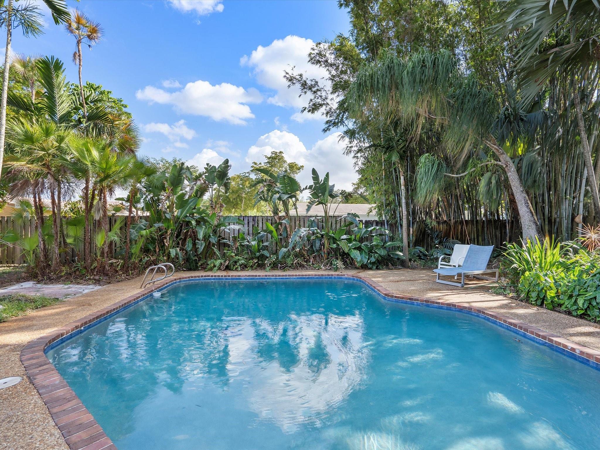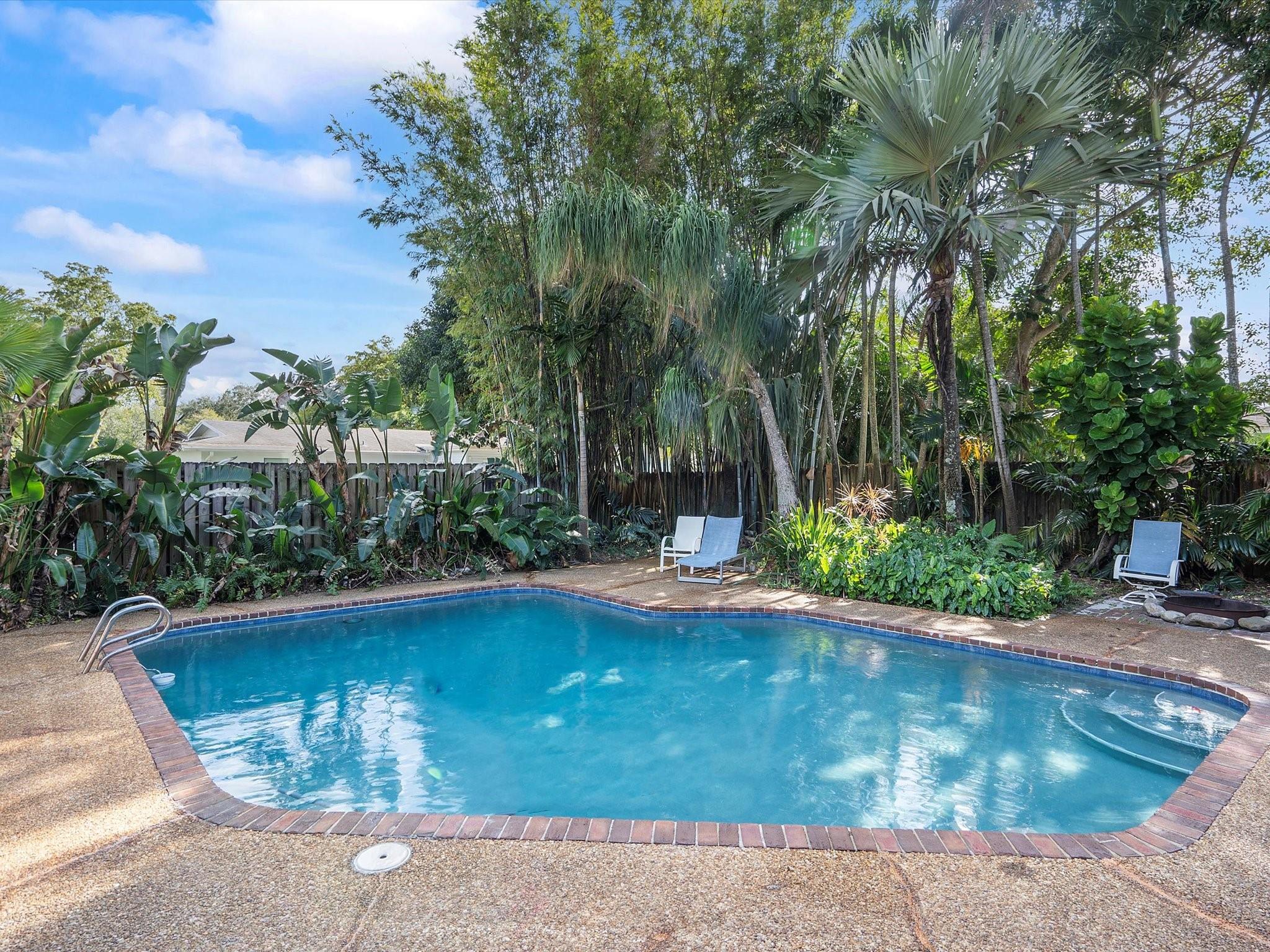 This is your chance to own in the highly sought-after community of Royal Palm Estates. Here you’ll get a beautiful pool, expansive lot, 4 bedrooms, 2 bathrooms, a split bedroom floorplan, 2-car garage, & NO HOA! The home features a formal living room, dining room that opens to the kitchen, and the HUGE screened-in lanai, family room, renovated bathrooms & more. The primary suite has a spacious walk-in closet & an ensuite with rain shower head, river rock floors also leads out to the pool area. We can’t overlook that the garage door & some windows are impact, a new outside panel w/connection for backup generator, & double-paned windows. Outside you’ll love the tropical landscaping, orchid house with sprinklers, & firepit. gravel pad for RV/boat up to 30', shed, & well-water sprinklers.