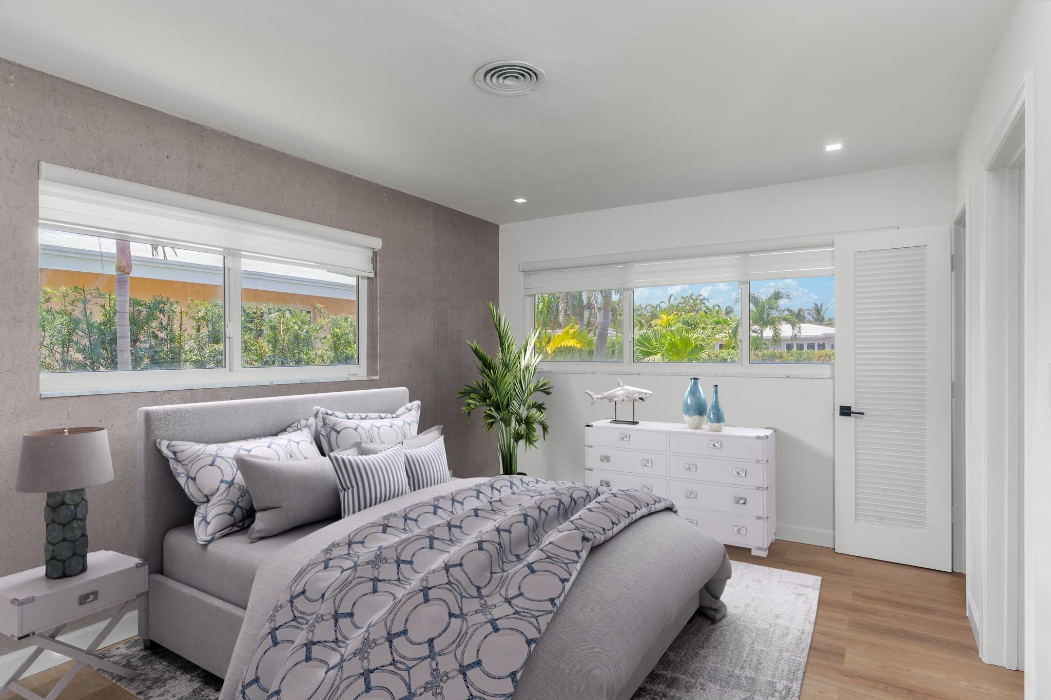 NEW Roof !!!Discover modern living in this beautifully remodeled home in the heart of East Fort Lauderdale's prestigious neighborhood. This residence features a sophisticated design with luxurious finishes, high-impact windows, new PVC piping, and Quartz countertops with top-of-the-line KitchenAid appliances. The air ducts have been replaced throughout the majority of the home, and beautiful gray shaker cabinets add a touch of elegance to the kitchen. The split bedroom floor plan, large laundry room, and bonus room offer versatility and privacy, enhanced by an open, bright ambiance throughout. Fully updated bathrooms and professional landscaping add to its appeal. Room for a Pool