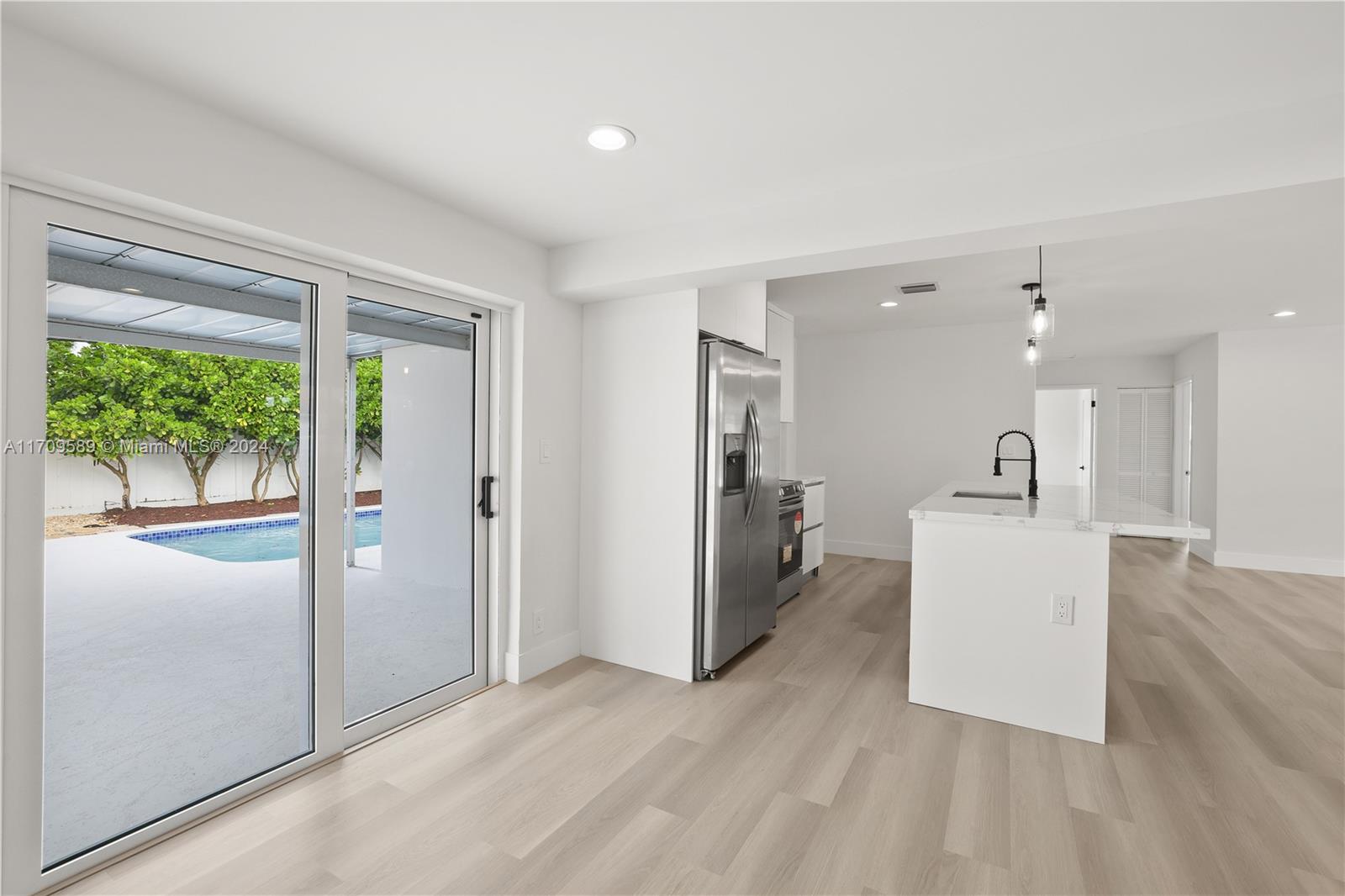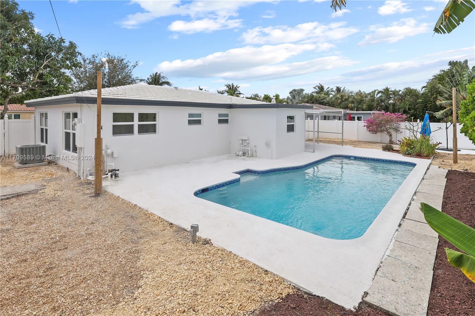 Beautiful OPEN CONCEP RENO..! 2 Bedrooms, 2 Bathrooms, Pool in House, in East Boca location with A rated School.! Close to the Beach, dinning, Shops, others entertainment, access to I95. Freshly painted inside & outside, fully fence, New Vinyl floor, European Cabinets in Kitchen & Bathrooms, New S.S Appliances, Roof was done in 2020, Central A/C 2022,(correction..! 2012), update cleaning in 2024 was done with professional tech. Impact windows & doors, pool was updated, w/ diamond bright & tiles, NEW PUMP, and much more.
