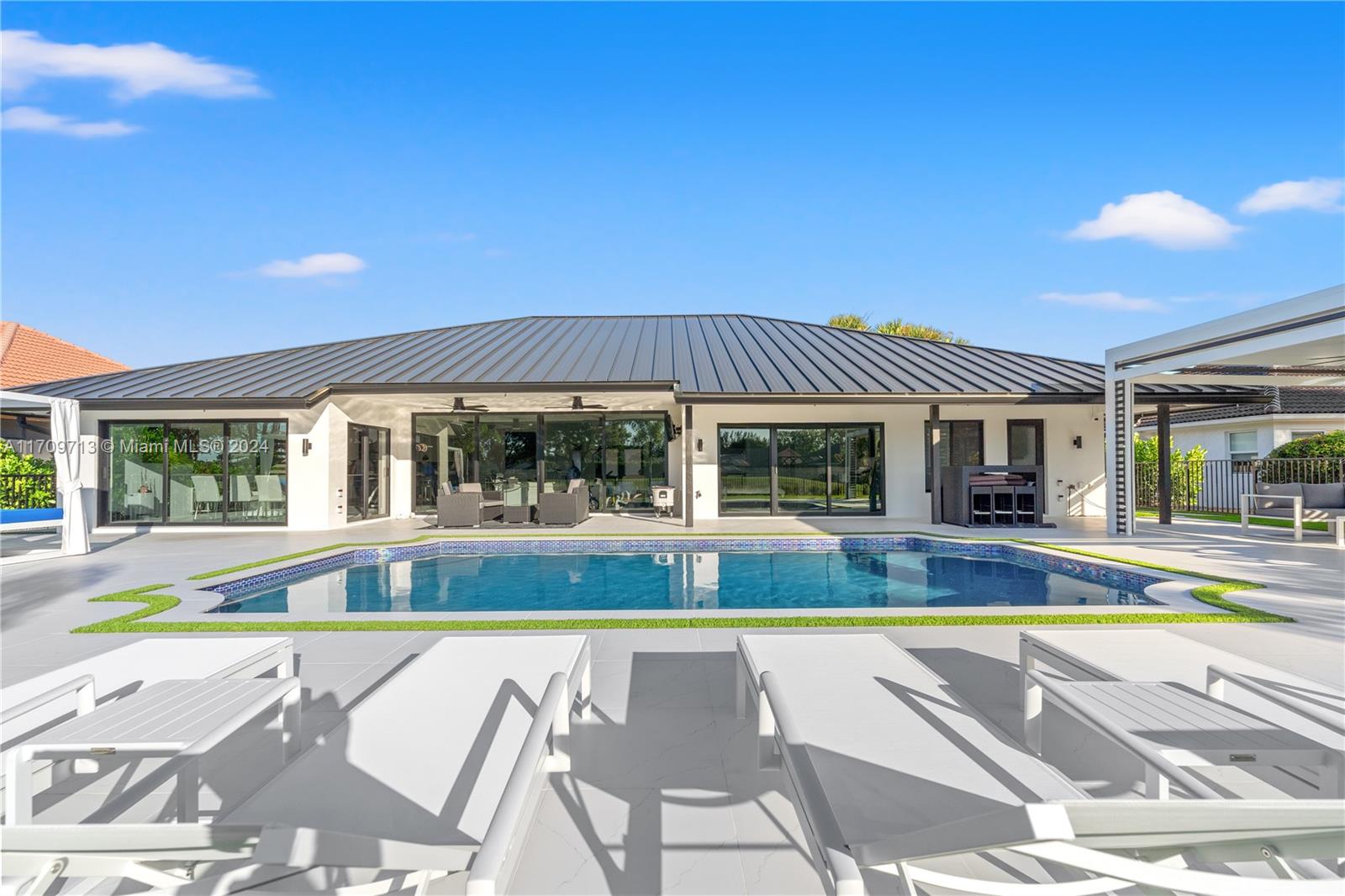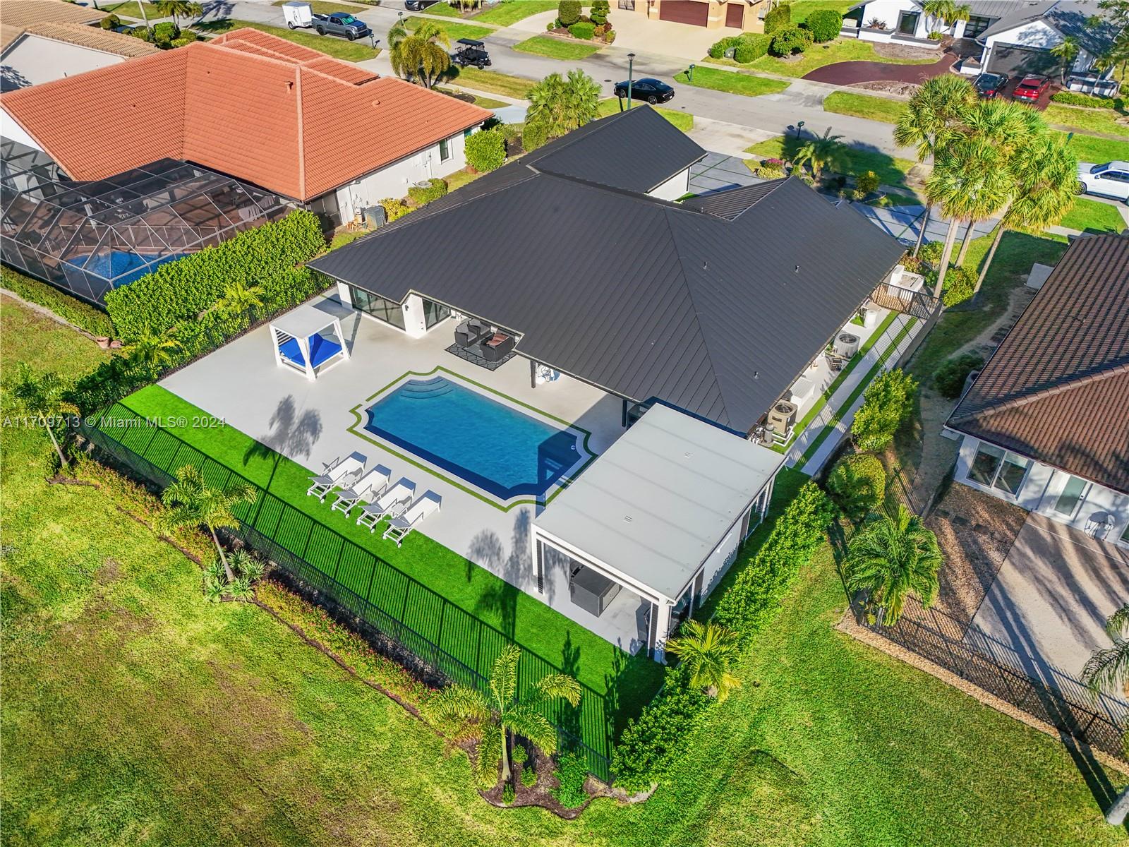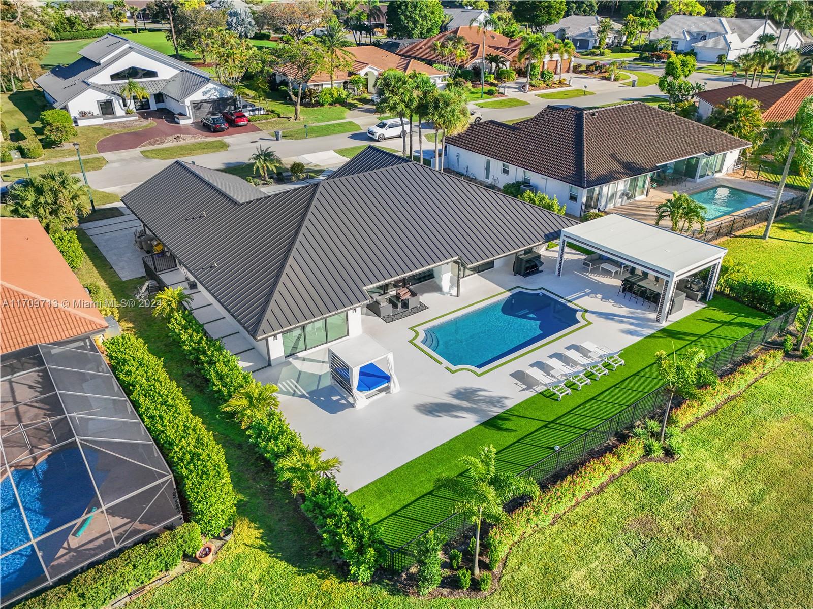 Welcome to an extraordinary opportunity on one of the most desired streets in the Boca Woods Country Club! This exceptional 3-bed, 2.5-bath home with a den/office is nestled on a spacious 14,257 sqft lot located on the signature hole of the Woods golf course. With a brand-new metal roof, impact windows and doors, lush landscaping, and a refinished & heated, saltwater pool - no detail has been overlooked. Inside, enjoy porcelain tiles throughout, while new pool pumps, a insect spray system, and a new sprinkler system elevate the experience. The community offers unparalleled amenities, including but not limited to; new pickleball & tennis courts, 2 golf courses, and a stunning new clubhouse featuring game rooms, boardrooms, & a full-service spa and gym. This is luxury living at its finest!