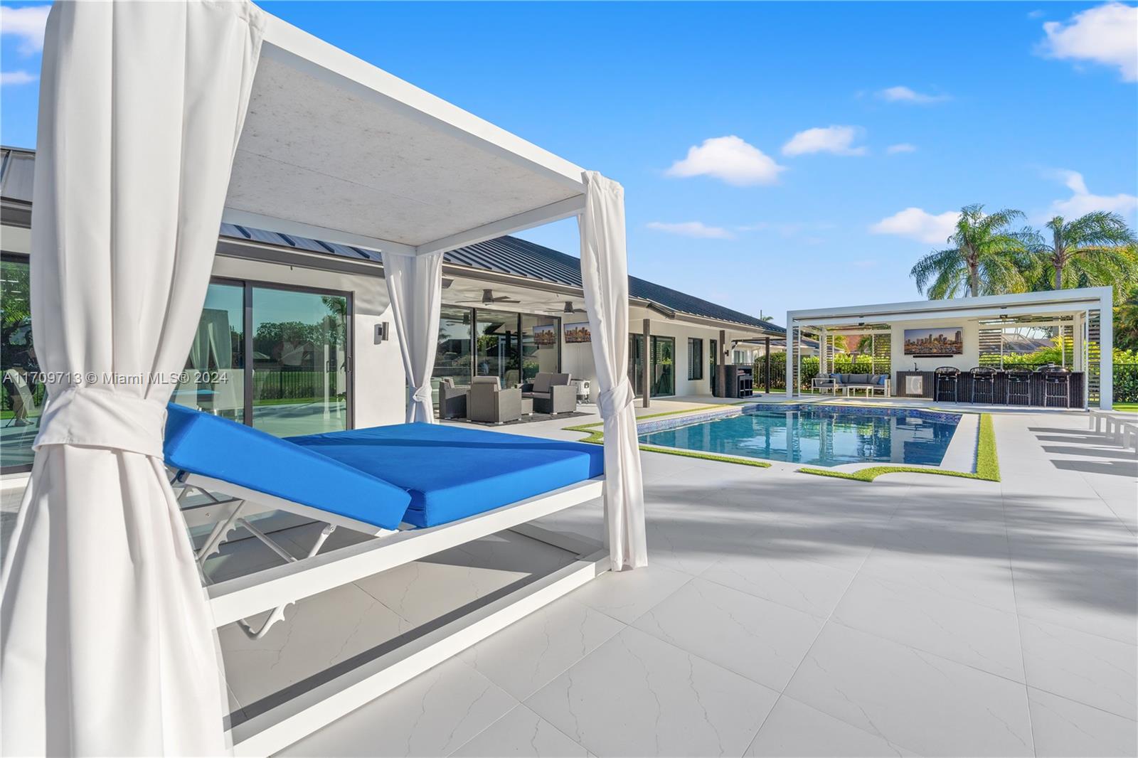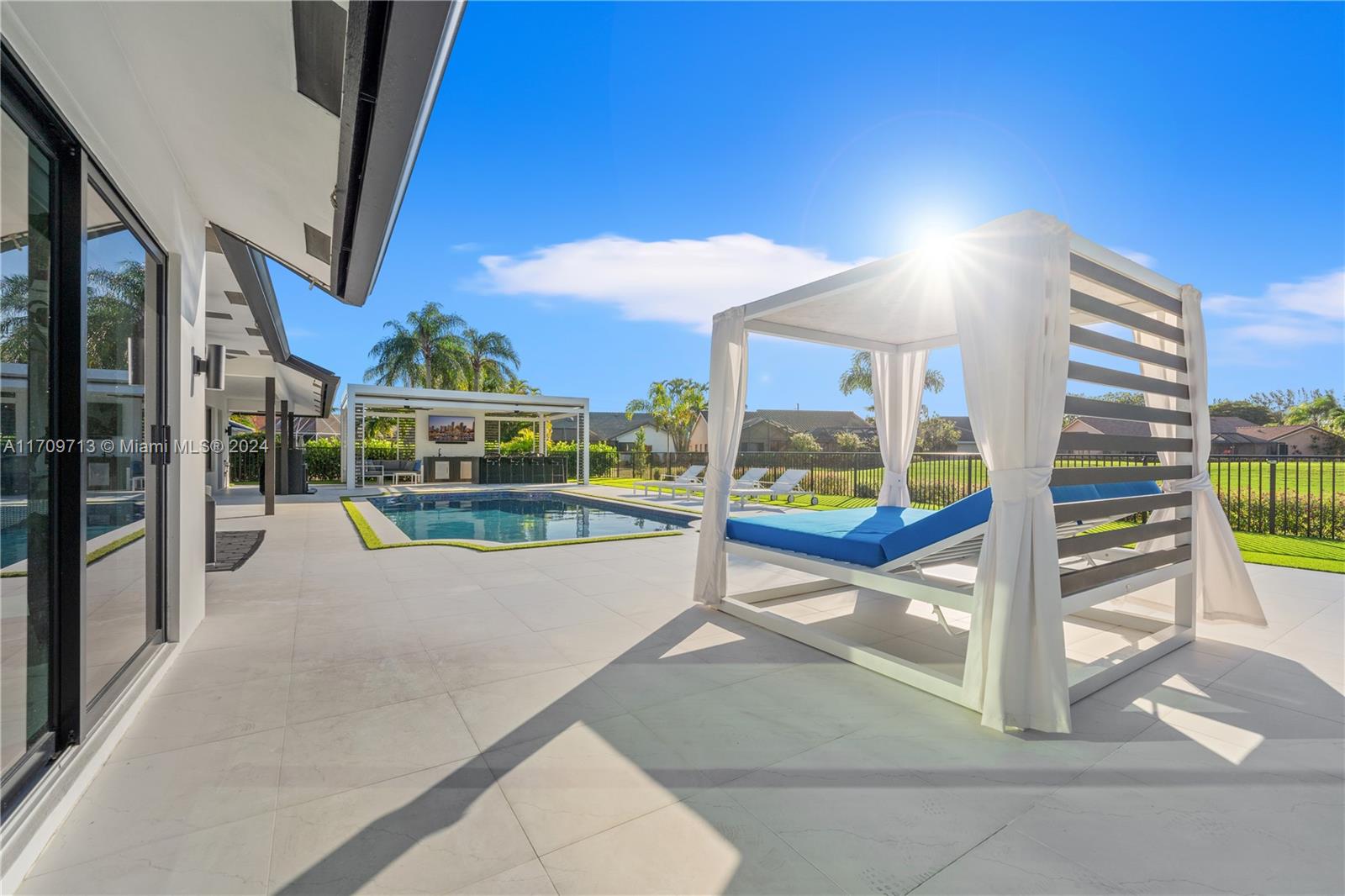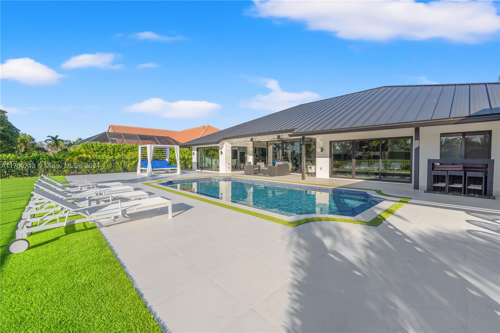 Welcome to an extraordinary opportunity on one of the most desired streets in the Boca Woods Country Club! This exceptional 3-bed, 2.5-bath home with a den/office is nestled on a spacious 14,257 sqft lot located on the signature hole of the Woods golf course. With a brand-new metal roof, impact windows and doors, lush landscaping, and a refinished & heated, saltwater pool - no detail has been overlooked. Inside, enjoy porcelain tiles throughout, while new pool pumps, a insect spray system, and a new sprinkler system elevate the experience. The community offers unparalleled amenities, including but not limited to; new pickleball & tennis courts, 2 golf courses, and a stunning new clubhouse featuring game rooms, boardrooms, & a full-service spa and gym. This is luxury living at its finest!