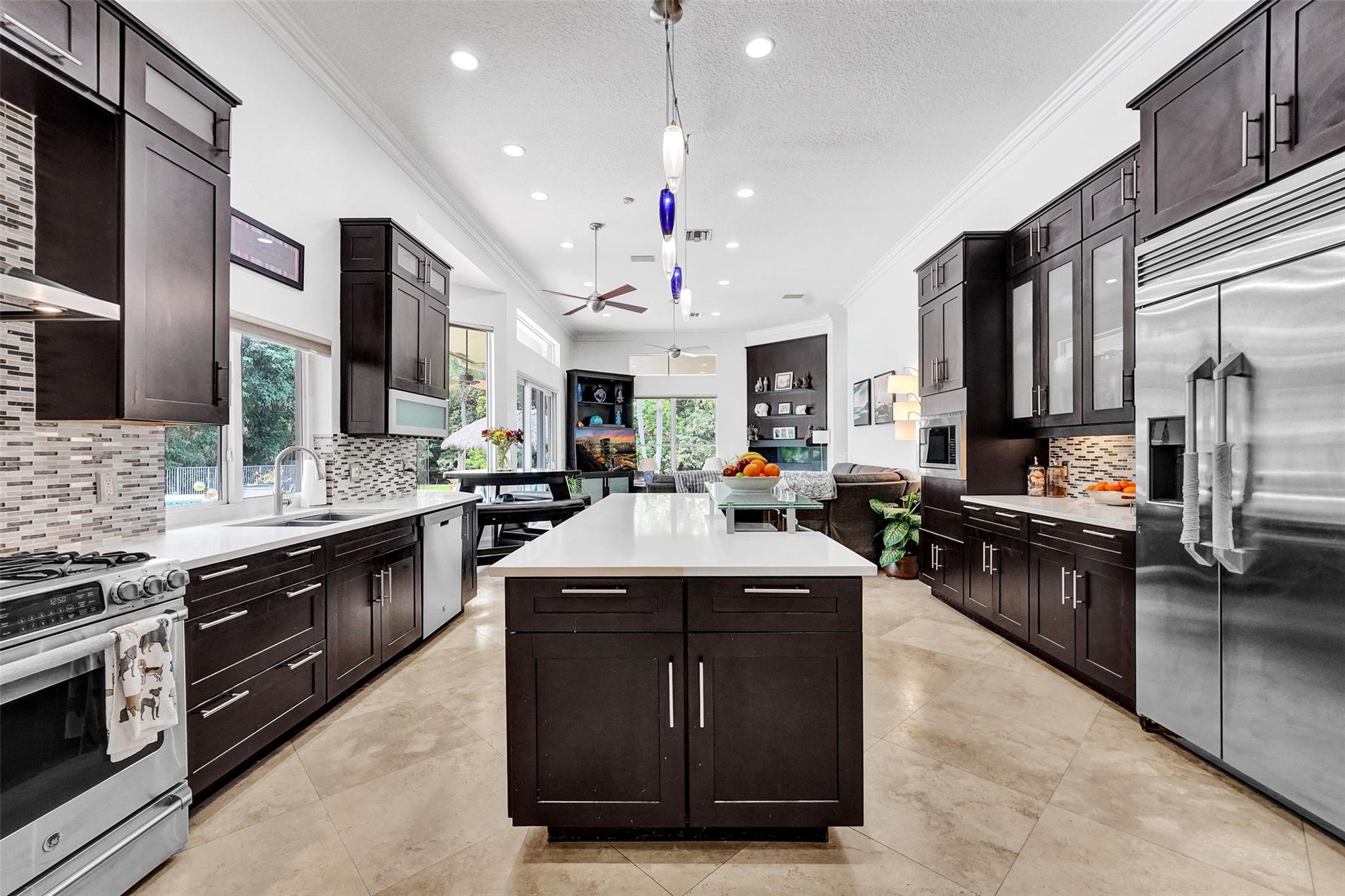 Located in the prestigious Plantation Acres community, this huge property is fully fenced offering privacy and plenty of space for activities. As you enter the front door, you are met with a grand entrance, high ceilings, marble floors, and expansive views of the pool/backyard. With 4 bedrooms, a dedicated home office, and an oversized 3-car garage, this home spans 5,051 square feet on a sprawling lot. The updated kitchen features a gas stovetop, bar seating, and a walk-in pantry, perfect for culinary enthusiasts. Enjoy the expansive heated pool, private covered patio, Tiki Hut, and lush backyard. Additional features include a standby generator with a buried propane tank, impact doors, and a private electric gate. The primary ensuite offers a separate tub, walk-in closets, and pool access.