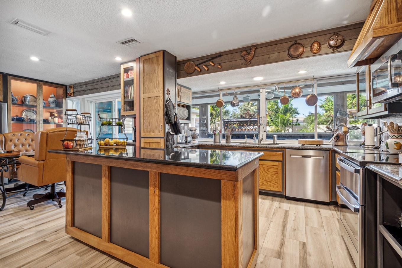 Beautiful 3BR/2BA in the quiet neighborhood of Plantation Landings. Your new home features some of the finest amenities to be enjoyed & shared w/ Family & Friends. Spacious Gourmet Kitchen boasts top tier appliances; dual full size Refrigerators & Oven, Coffee Bar, Ice Maker, Exhaust Hood, Kitchen Island w/ storage, huge Pantry to name a few. Spacious Main Bedroom & Guest Room, upgraded Bathrooms & comfy Family room. Step through the Florida room and into the beautifully manicured backyard & enjoy swimming in the Heated Pool. The Outdoor Kitchen has a built-in gas Grill, Griddle, Wood Burning Pizza Oven, Commercial size Smoker & outdoor Pantry. Relax under the cozy Gazebo that overlooks this stunning home. No matter the occasion, your new home will create a lifetime of great memories.