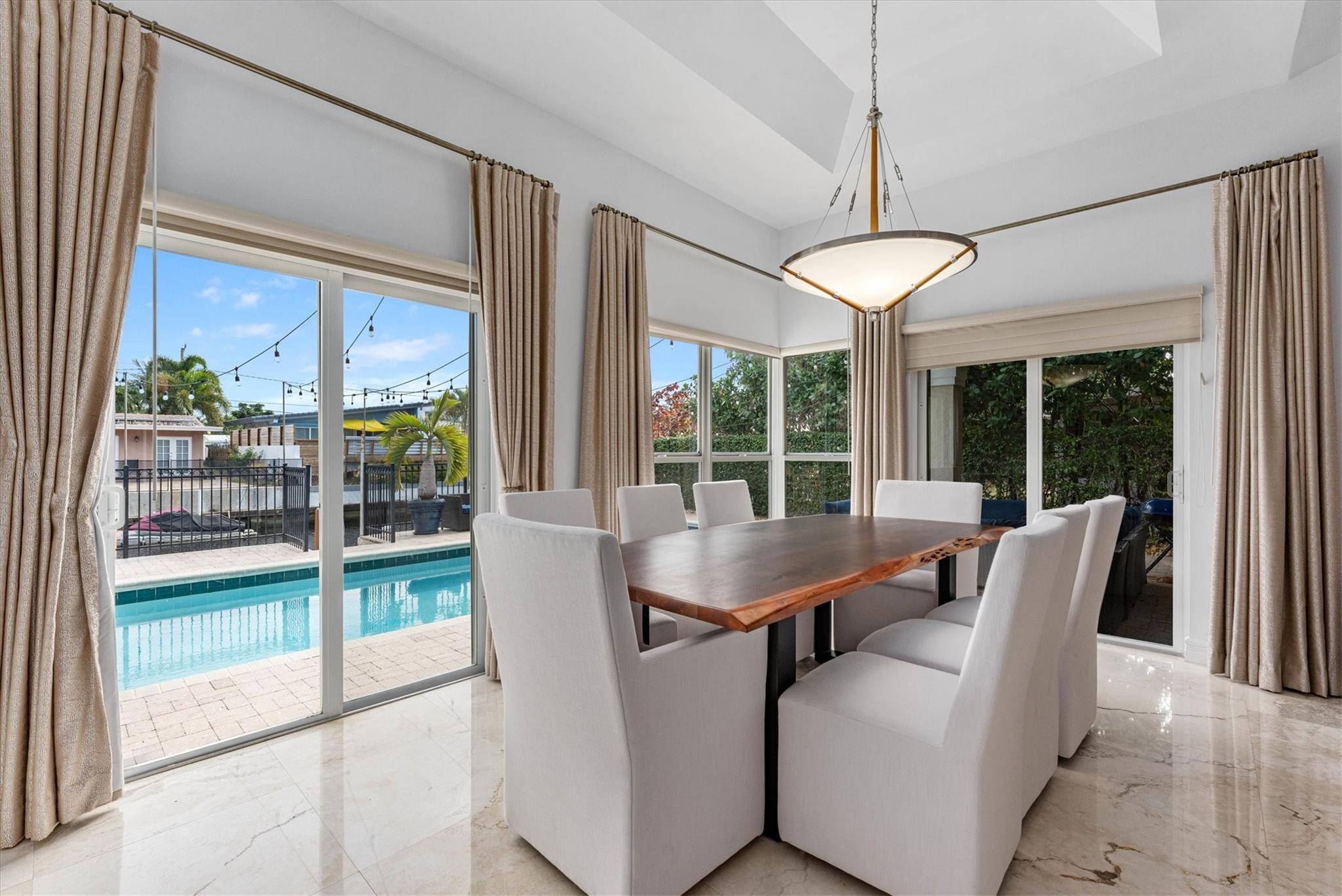 This stunning, updated 2,331 sqft single-family home, offers the perfect blend of modern luxury and comfort—with NO HOA. Featuring 4 beds and 2 baths, this home is an entertainer’s dream. The oversized owner's suite , custom master bath and built-in closets in every room for ample storage. The heart of the home is the open kitchen with top of the line appliances, including a 78-bottle wine cooler. With impact windows/doors throughout, this home combines safety and energy efficiency with modern elegance. A breathtaking patio oasis with an Intracoastal view, covered patio, pool, and a charming tiki hut. Don’t miss out on this rare opportunity to own a dream home that offers unparalleled style, comfort, and location. This is more than just a house; it's a lifestyle.