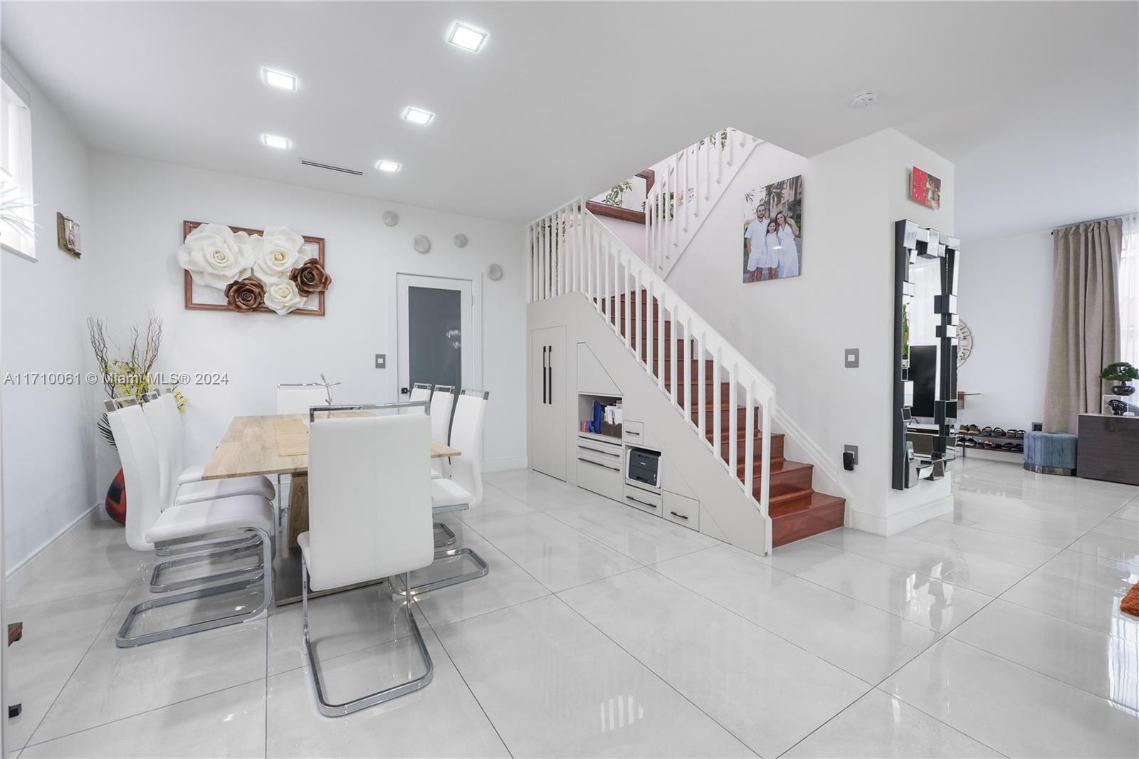 This fully renovated corner lot home features a modern and stylish interior with high-end finishes and functional upgrades. Brand new tile floors downstairs with laminate floors upstairs, fully impact windows and doors. The kitchen boasts quartz countertops, double oven, paired with stainless steel appliances for a contemporary look. The custom cabinetry is equipped with soft-close mechanisms, ensuring quiet and smooth operation. The house is illuminated by recessed lighting, creating a warm and inviting ambiance throughout the space. AC unit is only 6 years old. Community offers a pool and gym. Located just minutes from the Hard Rock Hotel & Casino, shopping centers, and the beach, this home offers an excellent blend of luxury living and convenience in a sought-after area.