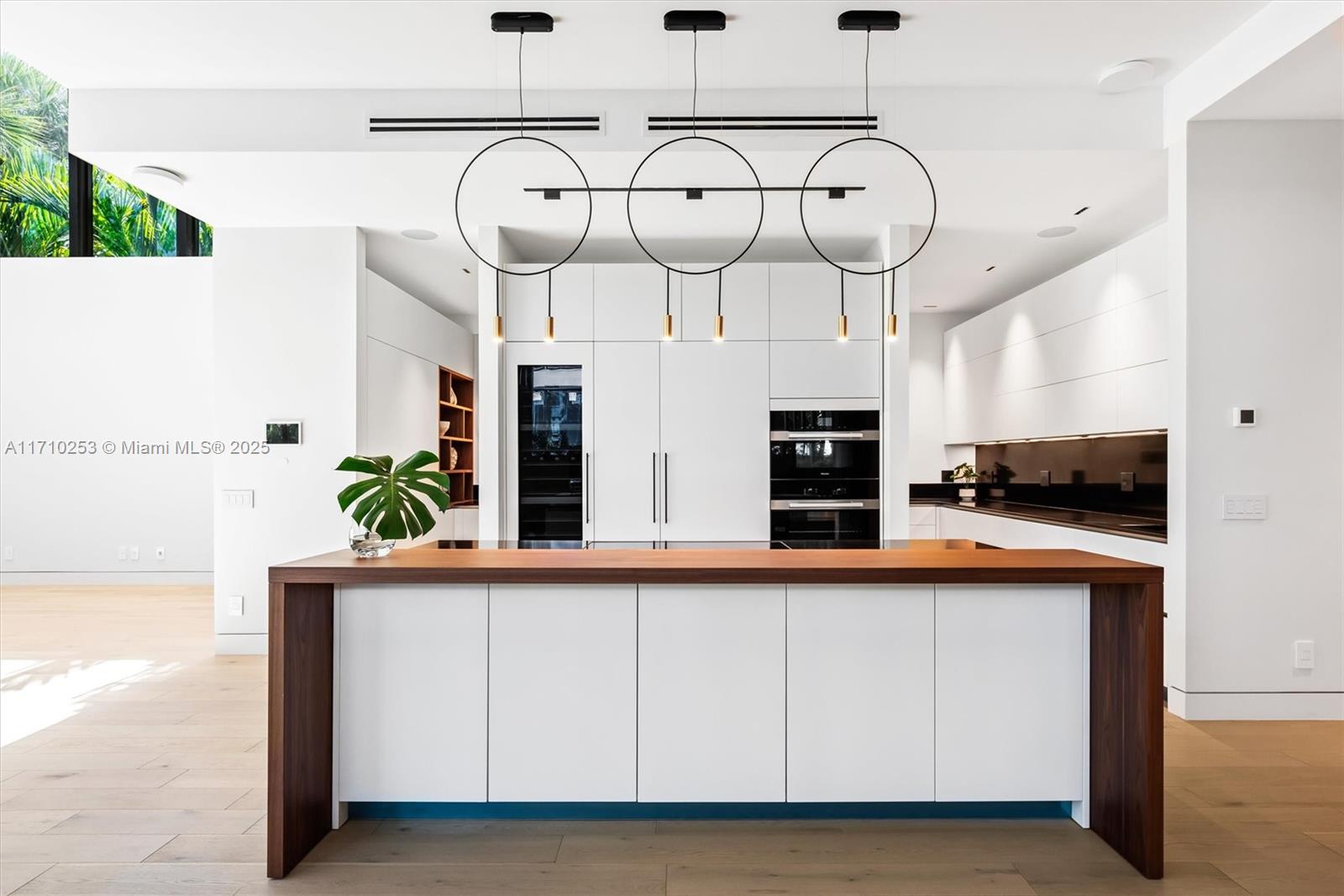 Discover a new level of luxury coastal-living in this 5-bed 6-bath residence. Offering stunning views from every room showcasing meticulous craftsmanship and sleek elegance. Custom cabinetry, fixtures, and lighting were imported directly from Italy, adding a touch of refined sophistication. The kitchen is adorned with Miele appliances, stone countertops, and a full-size wine cooler. A private elevator opens to the master suite, while home automation puts every feature at your command. Outdoors, a custom pool wraps around the house while the rooftop terrace features a private spa, bar, and summer kitchen for entertaining with panoramic views of the ocean and park. This residence offers a serene escape while being just moments away from the beach. Design by: Studio KHORA & Alex Penna