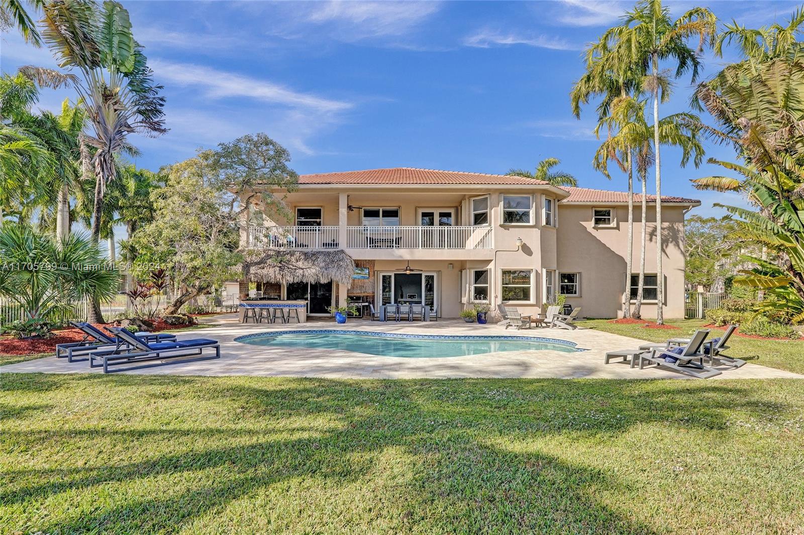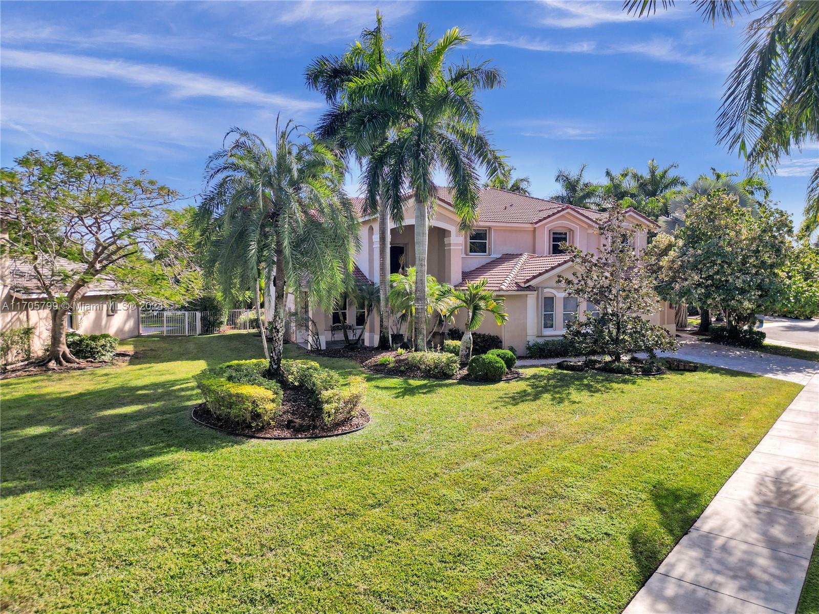 This stunning, palatial lakefront 5Bed/5Bath/3CG residence of almost 5000SF/ac w/game/media room, office/playroom situated on an amazing 1/2 acre corner/cul-de-sac lot in Savanna's most prestigious enclave, The Cove. Fully fenced resort-style backyard retreat w/sparkling pool, covered patio & tiki-hut w/fully equipped summer kitchen. Gourmet kitchen features dual toned cabinetry, gorgeous quartzite counters, top of line Miele & Sub-Zero appliances. Downstairs features an office & large game room, cabana bath & powder room. Upstairs, the luxury primary suite w/generous sitting rm, leads to wide balcony w/breathtaking lake/pool views.Double staircases, marble & wood flooring, newer AC's & W/H. Enjoy the incredible Clubhouse,w/lap pool, miniature golf, waterslide/tot pool, Weston's A+ schools