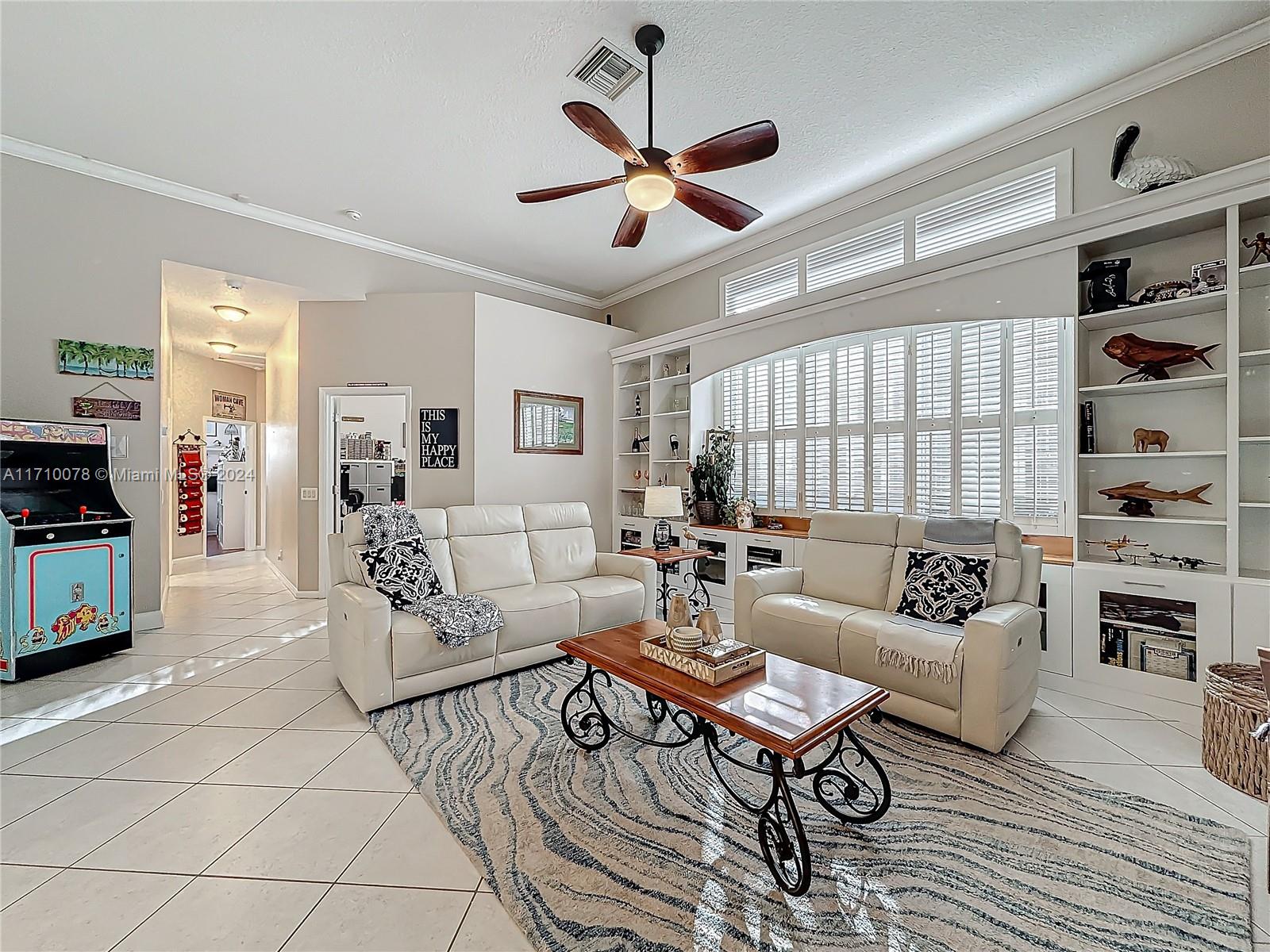 Rare opportunity to own an updated waterfront Sensation model, featuring 4 bedrooms, 2.5 bathrooms, 3 CG and a separate den area, offering an elegant living space. The open floor plan is complemented by high ceilings and a brand-new roof (October 2024). The modern kitchen boasts quartz countertops, ample cabinetry, and SS appliances. This split-plan home ensures privacy and energy efficiency with two A/C units. Situated on a spacious 9,600 sq. ft. lot with stunning lake views, there’s plenty of room for a pool. Ideal for family gatherings or a peaceful retreat, the owner’s suite includes two walk-in closets, plantation shutters, and a luxurious bathroom with dual vanities and a walk-in shower. Diamond Head is a desirable, small community with a prime location and top-rated schools.