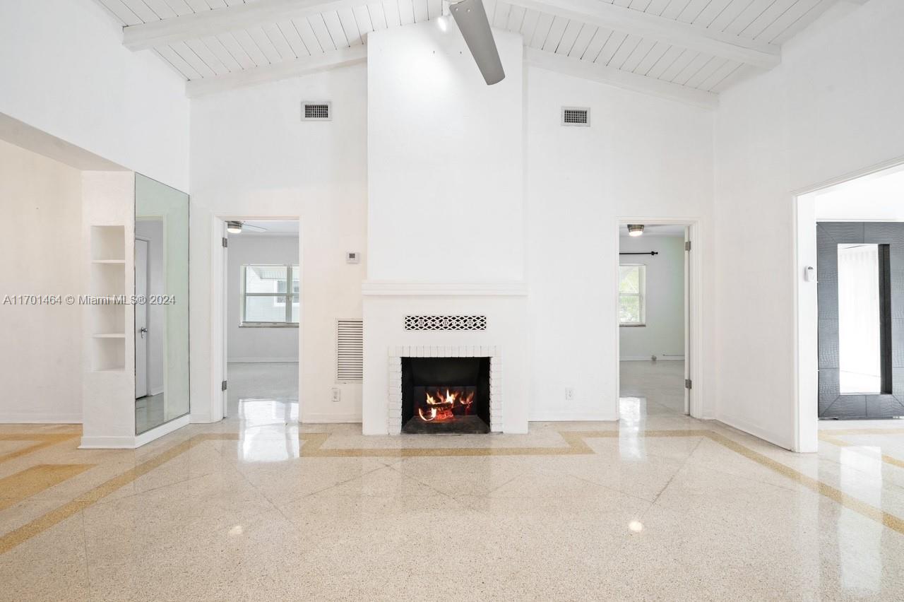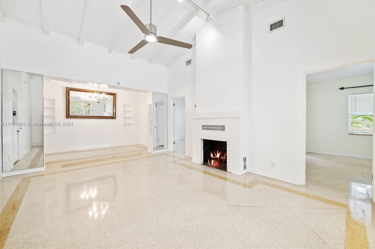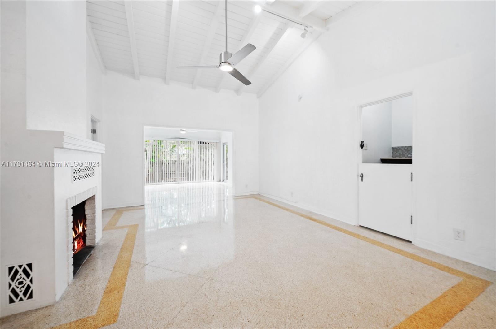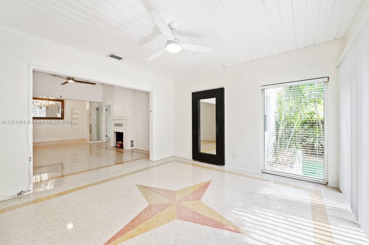 This charming 1936 Spanish-Style Home in Miami Beach offers timeless appeal and classic character. Featuring polished terrazzo floors, a spacious split floor plan, and a decorative fireplace, the home exudes warmth and style. Vaulted ceilings with exposed wood beams and an abundance of natural light create an open, airy atmosphere. This property also includes an in-law's quarters and a studio, offering flexible space for guests, a home office, or rental potential. While this charmer is in need of some updates, it presents a fantastic canvas for anyone looking to bring a historic gem into modern times.
