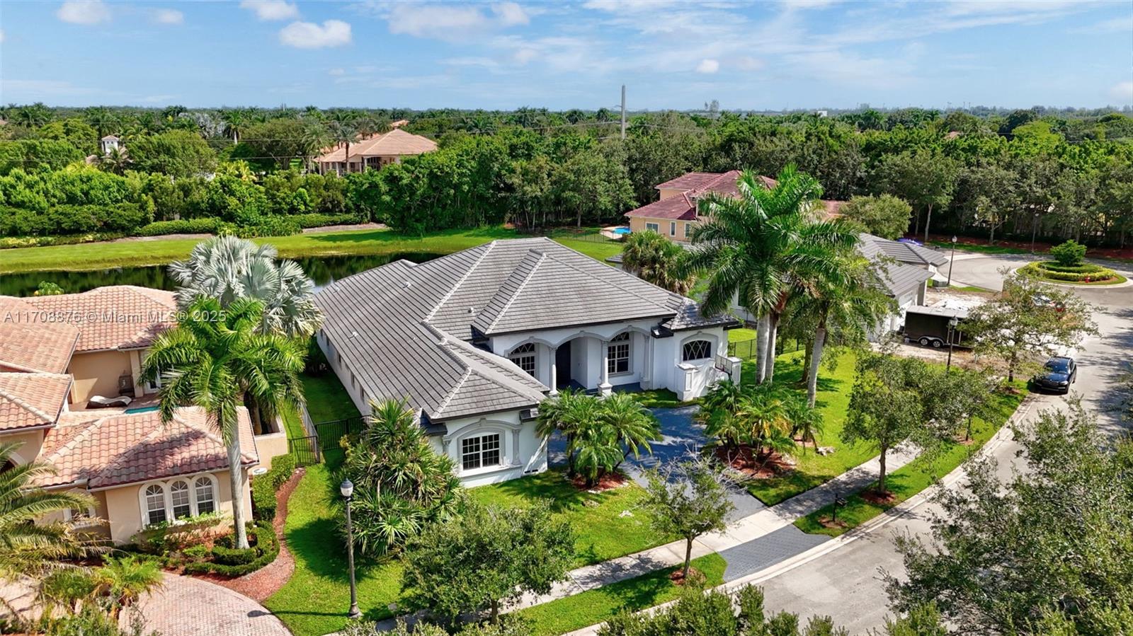 Welcome to this stunning one-story modern home in the exclusive Windmill Reserve community In Weston. Offering ultimate privacy with only 20 homes. Situated on a 17,193 SqFt private lakefront lot, this 5,052 SqFt residence features 5 beds, an office, and 4 baths—all remodeled in 2022. The home boasts high ceilings, expansive windows with natural light, front windows are hurricane impact, and all windows have sun-protective film. Recent updates include a new roof (2022), Spanish porcelain flooring (2021), beautifully updated kitchen with quartz countertops & Thermador appliances (2022). The fully fenced backyard has room for a pool and includes a cabana bathroom. Located moments from A+ schools, this home blends modern elegance, exclusivity, and comfort. Schedule your private tour today!