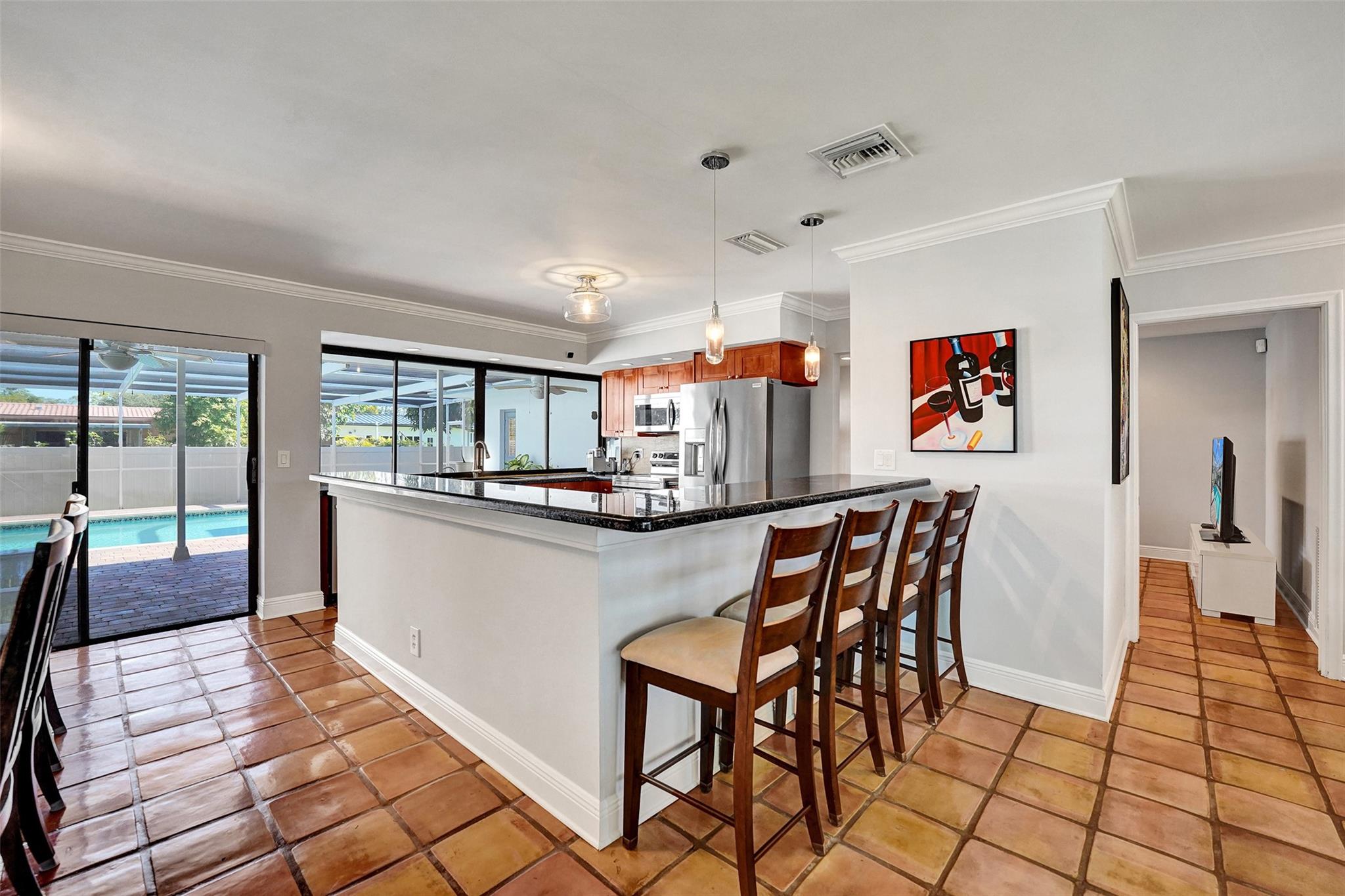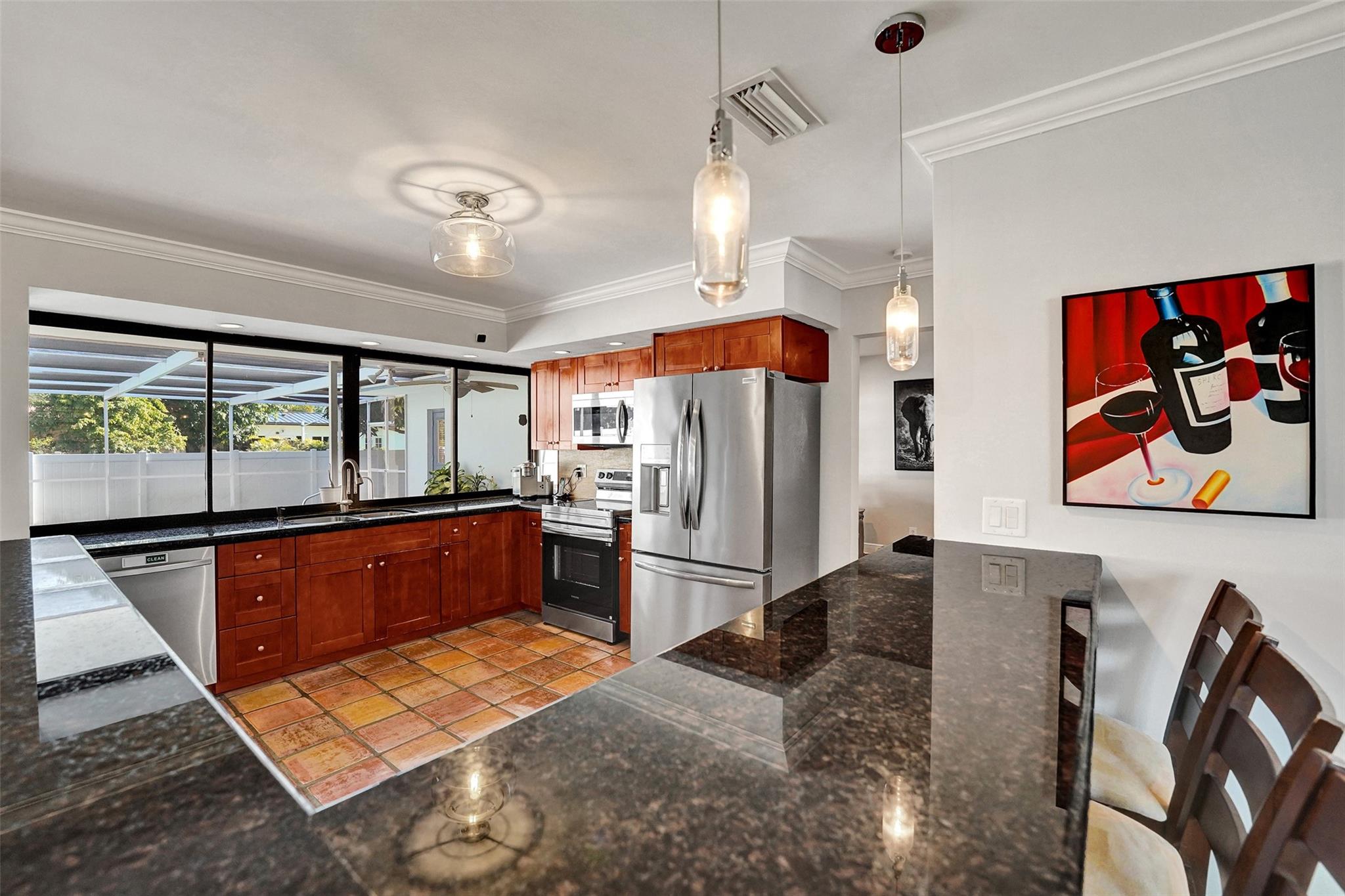 Beautiful 3-bed/2-bath Hollywood Hills pool home with new roof in 2024, freshly painted inside & out and charming tile floors in living areas with elegant wood laminate in bedrooms. Wide open kitchen with brand new appliances and a lot of natural light from your pass-through window to patio! A designated laundry room with washer and dryer, newly re-lined sewer lines and a private fenced backyard with mature fruit trees, lush landscaping and a screened-in pool area. Circular driveway and a 2-car garage with refinished floors and custom shelving with plenty of room for all your toys and tools. Conveniently near shops, houses of worship, major highways, and just minutes from the iconic Hard Rock Hotel & Casino and the famous Hollywood Beach Broadwalk. Don’t wait—schedule your showing today!