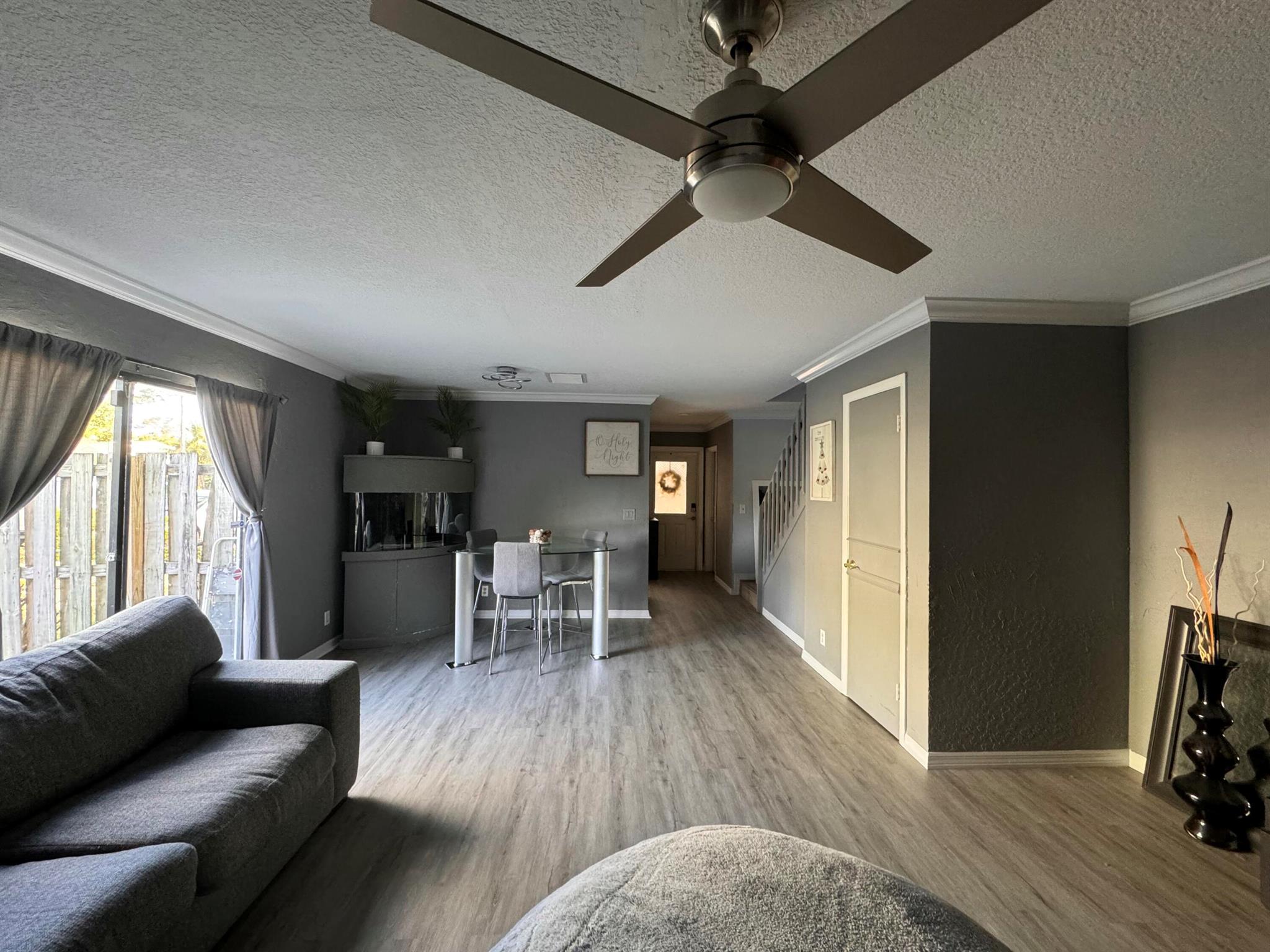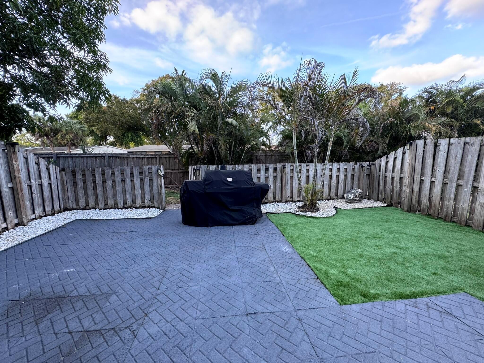 This updated 3-bedroom, 2.5-bath home features a first-level flex room with closet (4 rooms total), perfect for an office, plus a convenient half bath. The modern updated kitchen (2024) includes Samsung stainless steel appliances, hard wood countertops, and a spacious layout. Recent upgrades include new flooring on the first level, water heater (23'), and AC unit (20'). Smart Wyze light switches and an impact sliding door!Upstairs, you'll find three bedrooms and two full bathrooms, perfect for family living. The patio is ideal for entertaining, featuring artificial grass for easy maintenance. Additional highlights include a new washer (24'), dryer, and Ring cameras at both the front and backyard with a floodlight. Located near 95, CityPlace, top restaurants, the airport, and beaches!