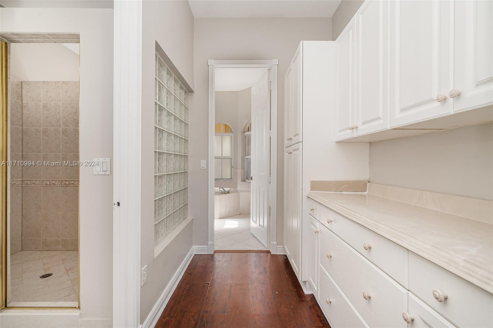Stunning 4-bed, 3-bath, 2-story home with a 3-car garage. Features include wood floors in common areas and bedrooms, tile in the kitchen, living room, and baths. The open-concept kitchen with stainless steel appliances flows into the living room, and there's a separate dining room and eat-in breakfast area. A guest room and full bath are downstairs, along with a laundry room leading to the garage. Upstairs, the primary suite includes a pass-through shower and adjoining sitting area with access to a patio. A guest room has built-in office desks. The large fenced backyard has space for a summer kitchen and a covered paved patio.