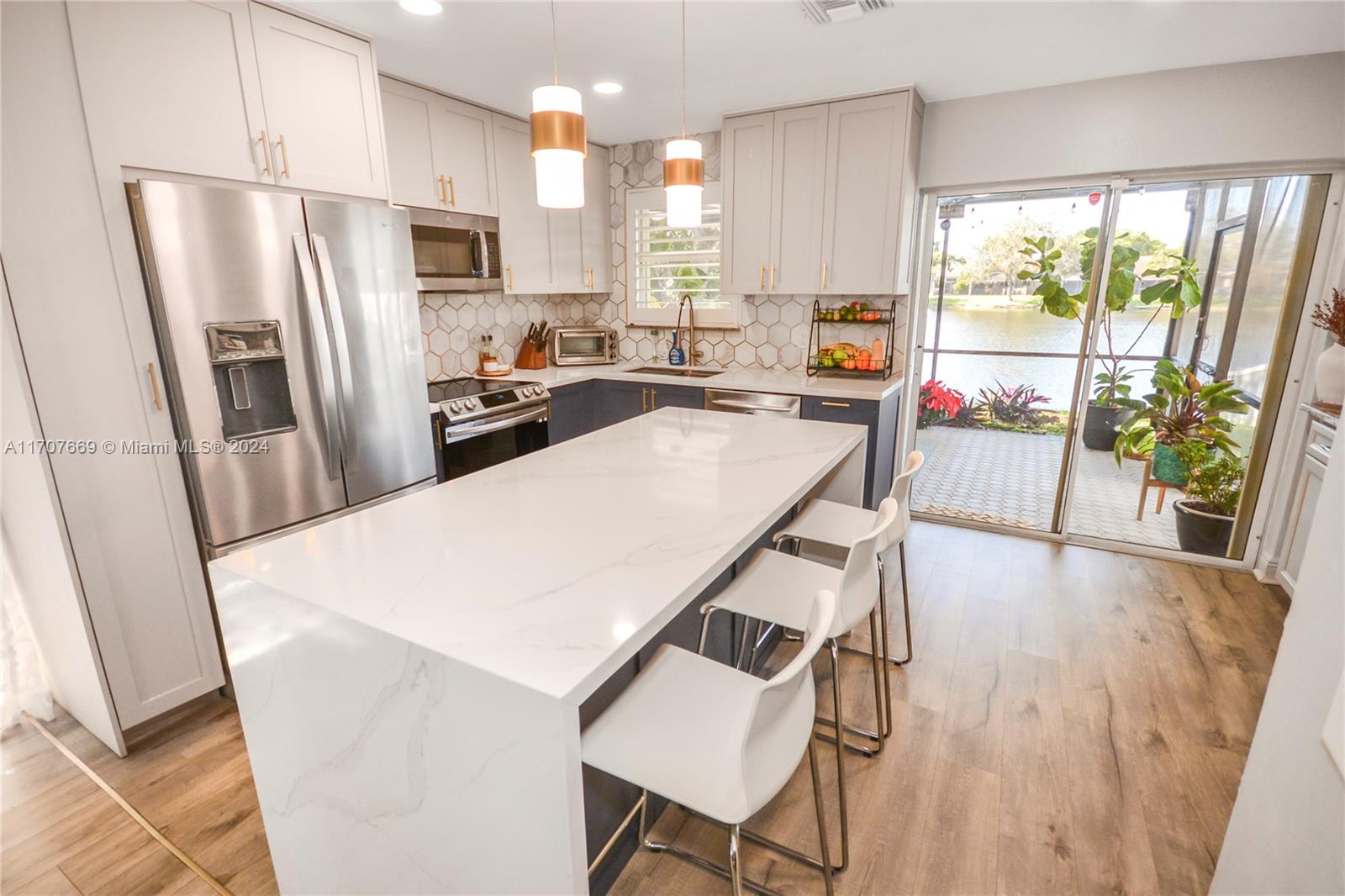 Don’t miss this rare opportunity to own this recently updated lakefront home in the desirable Pierpointe community. This 3-bedroom, 2.5-bathroom home has been beautifully updated with a remodeled kitchen and bathrooms featuring high-end finishes. Enjoy breathtaking sunsets from your westward-facing screened patio or backyard oasis. Conveniently located in Pembroke Pines, with easy access to shopping, dining, and major highways, this home has it all. The community offers 24/7 manned security for added peace of mind. The 1-car garage is partially converted for extra living space but can easily be restored.
