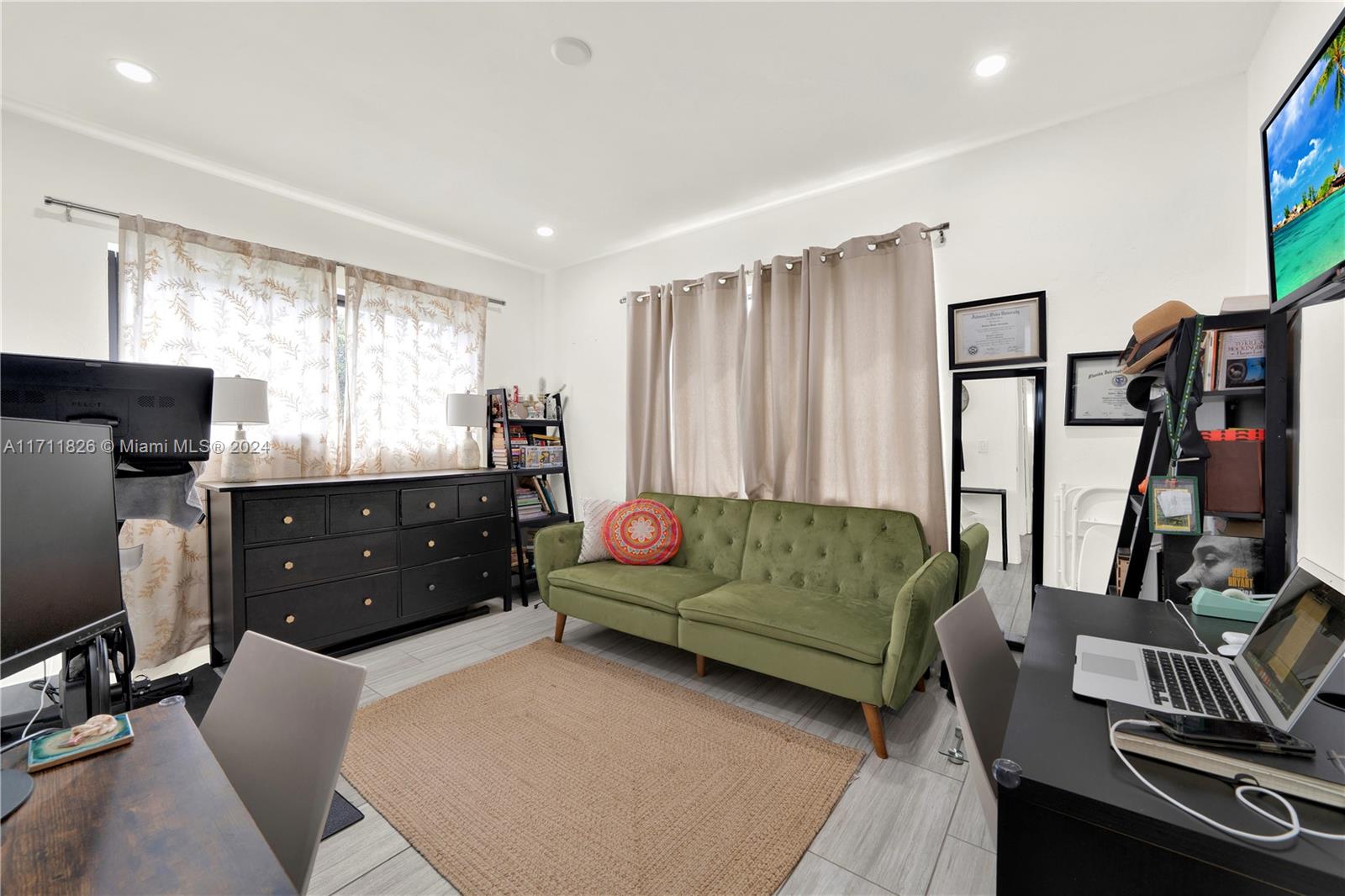 Renovated 3-bedroom, 2-bathroom residence adorned with contemporary upgrades! New impact windows, updated kitchen, bathrooms, exquisite flooring, and a freshly installed A/C unit fully fenced yard. ALL UPDATES WITH PERMITS!