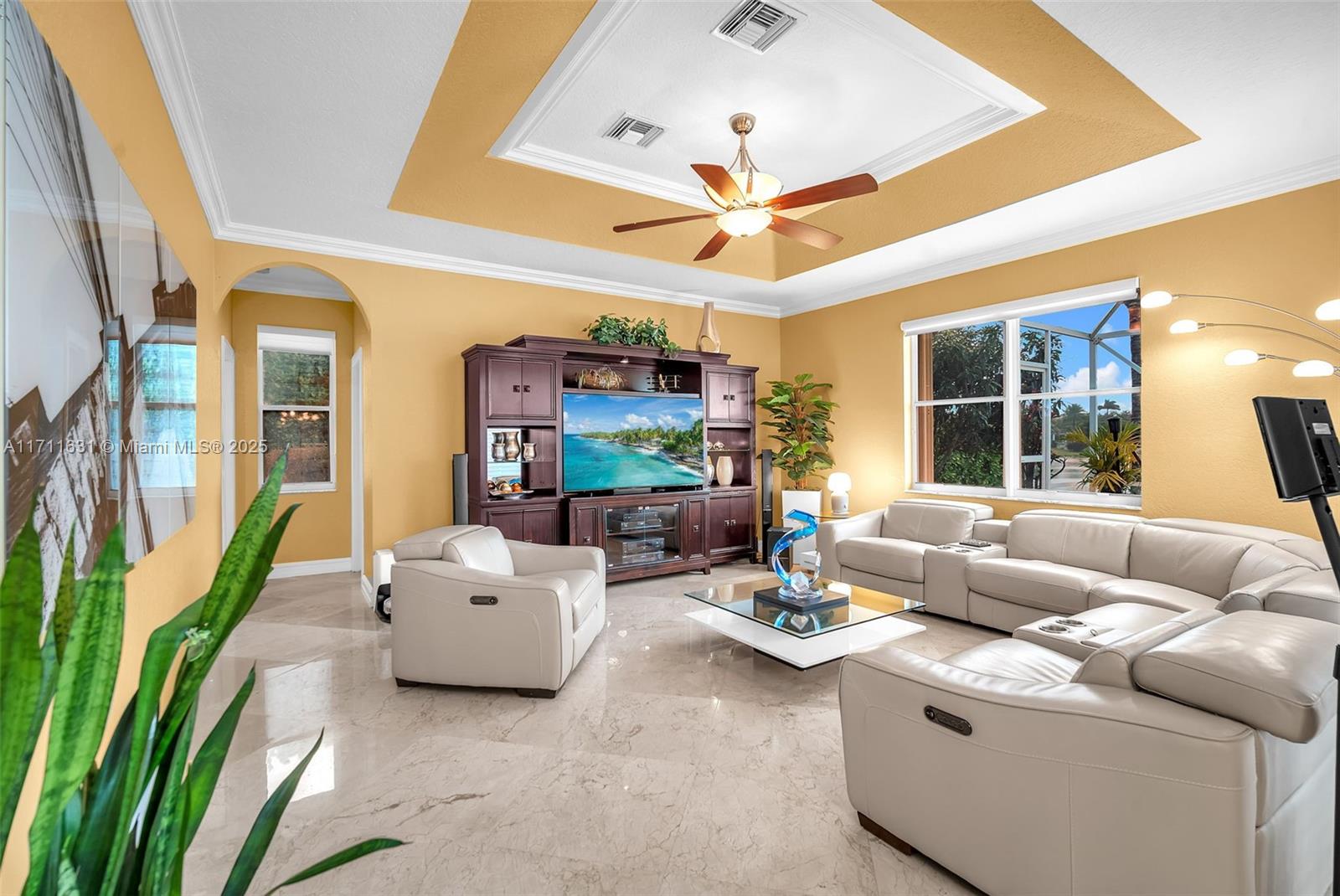 This updated well maintained, spacious, single family,3 car garage home, offers 5 bedrooms 3.5 bathrooms within 3103 sq ft of living space. This property features a swimming pool, with an abundance of additional space to create your own backyard oasis. Country Glen is known for its upscale residences and tranquil environment, making this home an excellent choice for families seeking a blend of comfort and elegance in the well sought area of Cooper City. Amenities included with the property are: 200-amp electrical service, Six-zone WIFI- Controlled smart irrigation system that draws water from lake, smart thermostats, smart motorized blinds, smart water heater, induction cooktop, pre wired for intrusion detection, 24- hour guard/gate service, Xfinity Digital Preferred Cable.