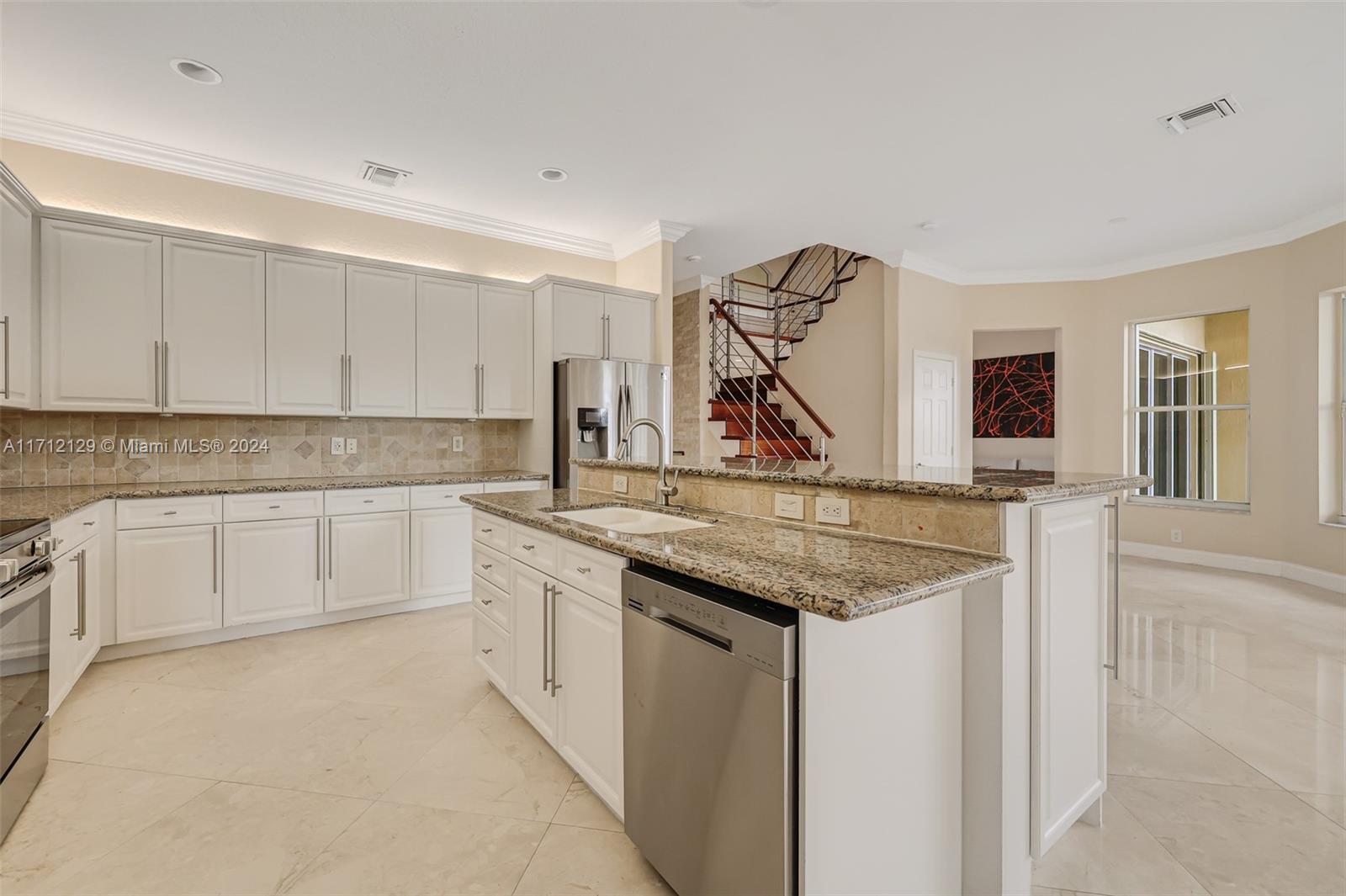 Welcome to your dream home in the resort-style community of Savanna! This exquisite 5-bedroom +den offers elegance, comfort, and breathtaking sunsets. It is equipped with a state-of-the art solar system to ensure remarkably low FPL bills promoting sustainable living. New 2024 roof with stylish flat tiles, and there is a water house filtration system! As you enter, you are greeted by a grand dual staircase. The first floor features main bedroom, marble flooring, spacious living areas and natural light. The second floor includes two Jack-and-Jill bathrooms, providing convenience and privacy for family plus a loft. Main bathroom has been remodeled creating a spa-like atmosphere. Accordion shutters offer peace of mind. Pool, Lake view, A+Schools. Amazing Club House.
