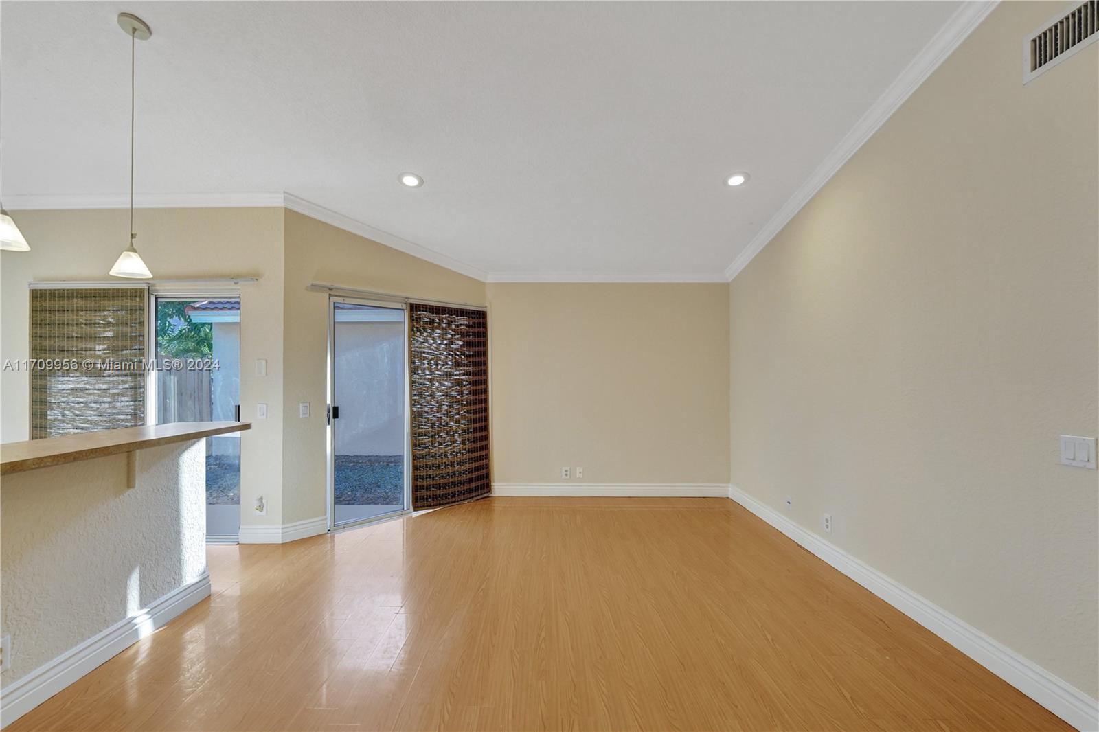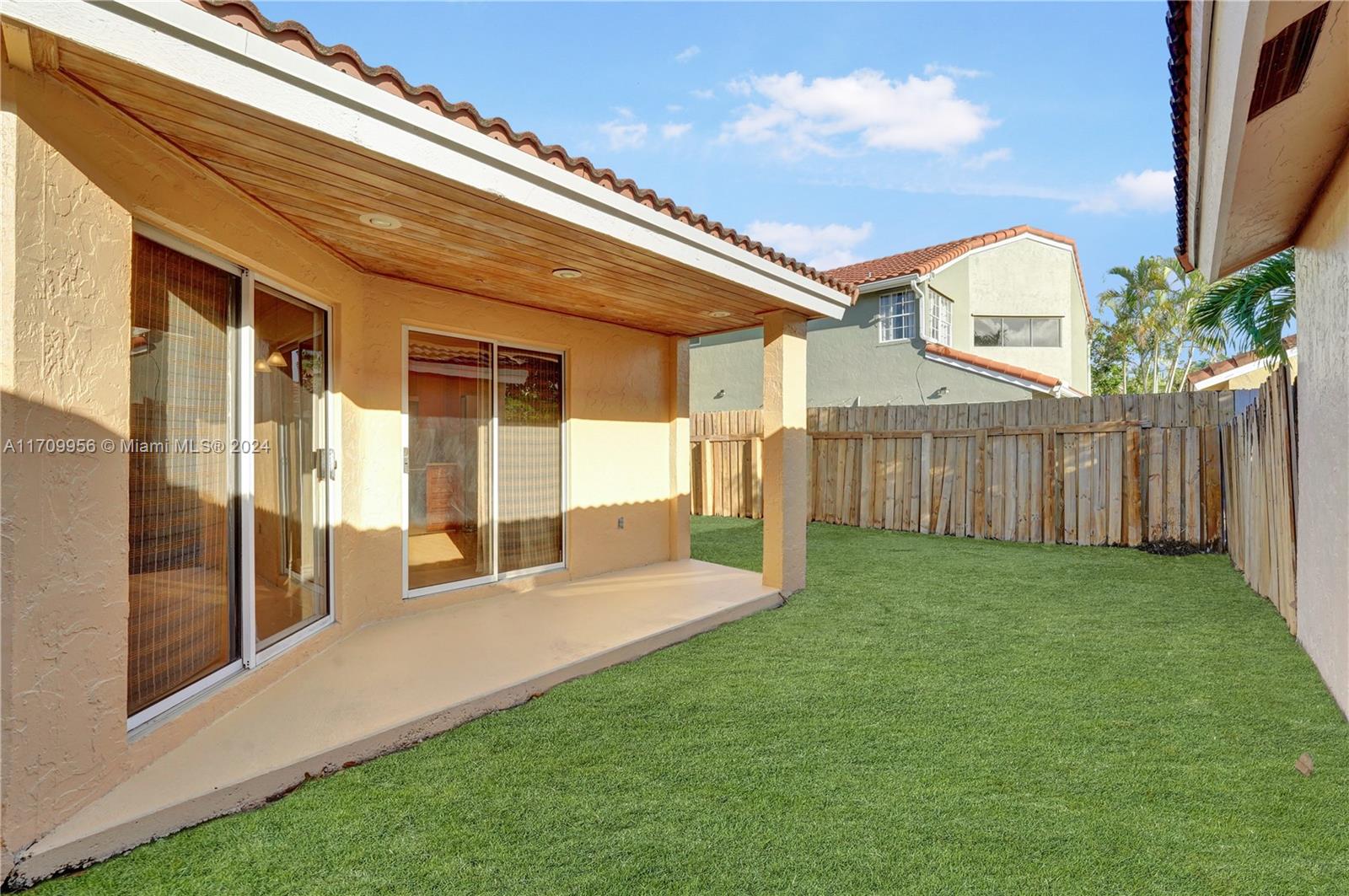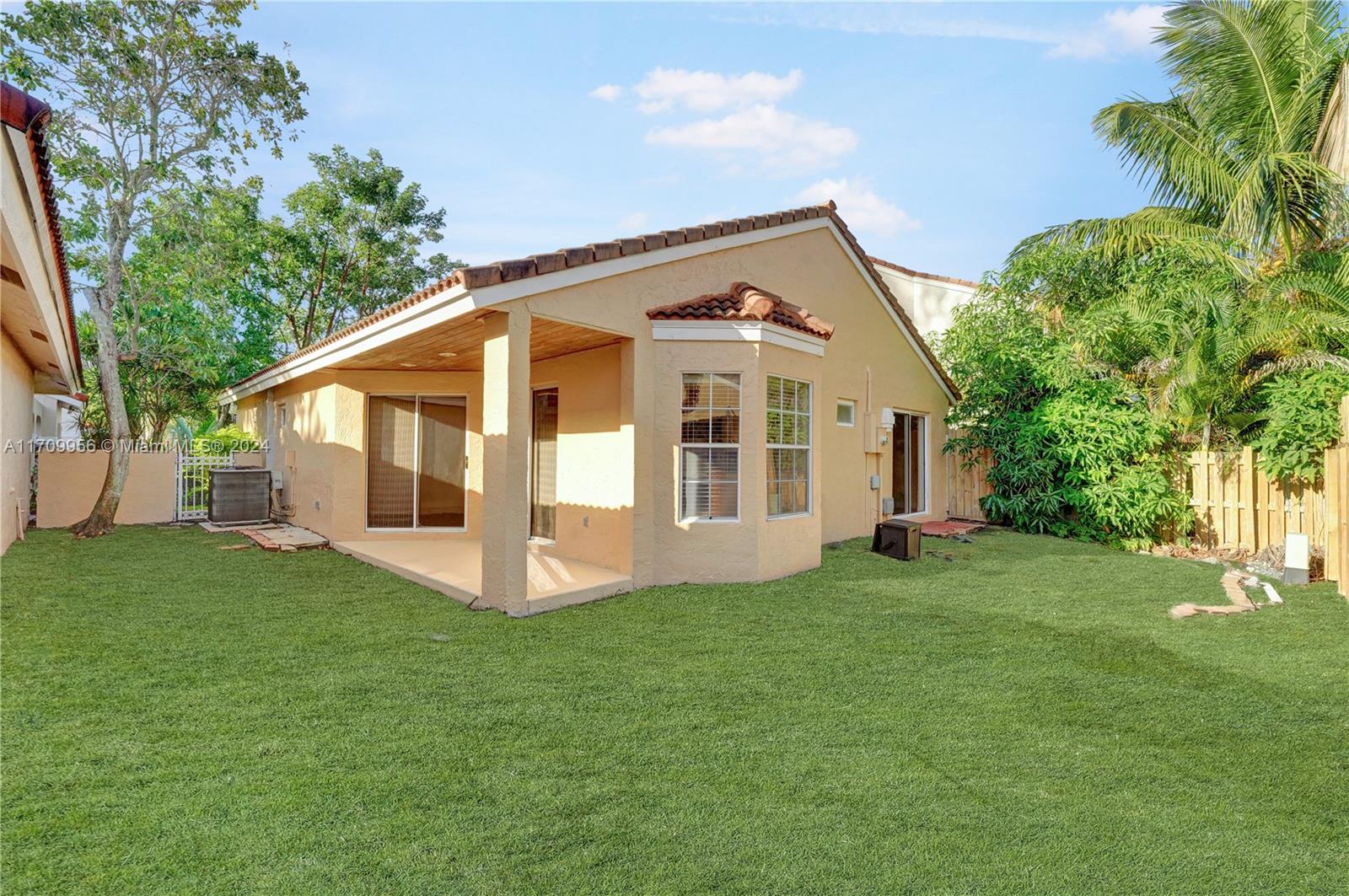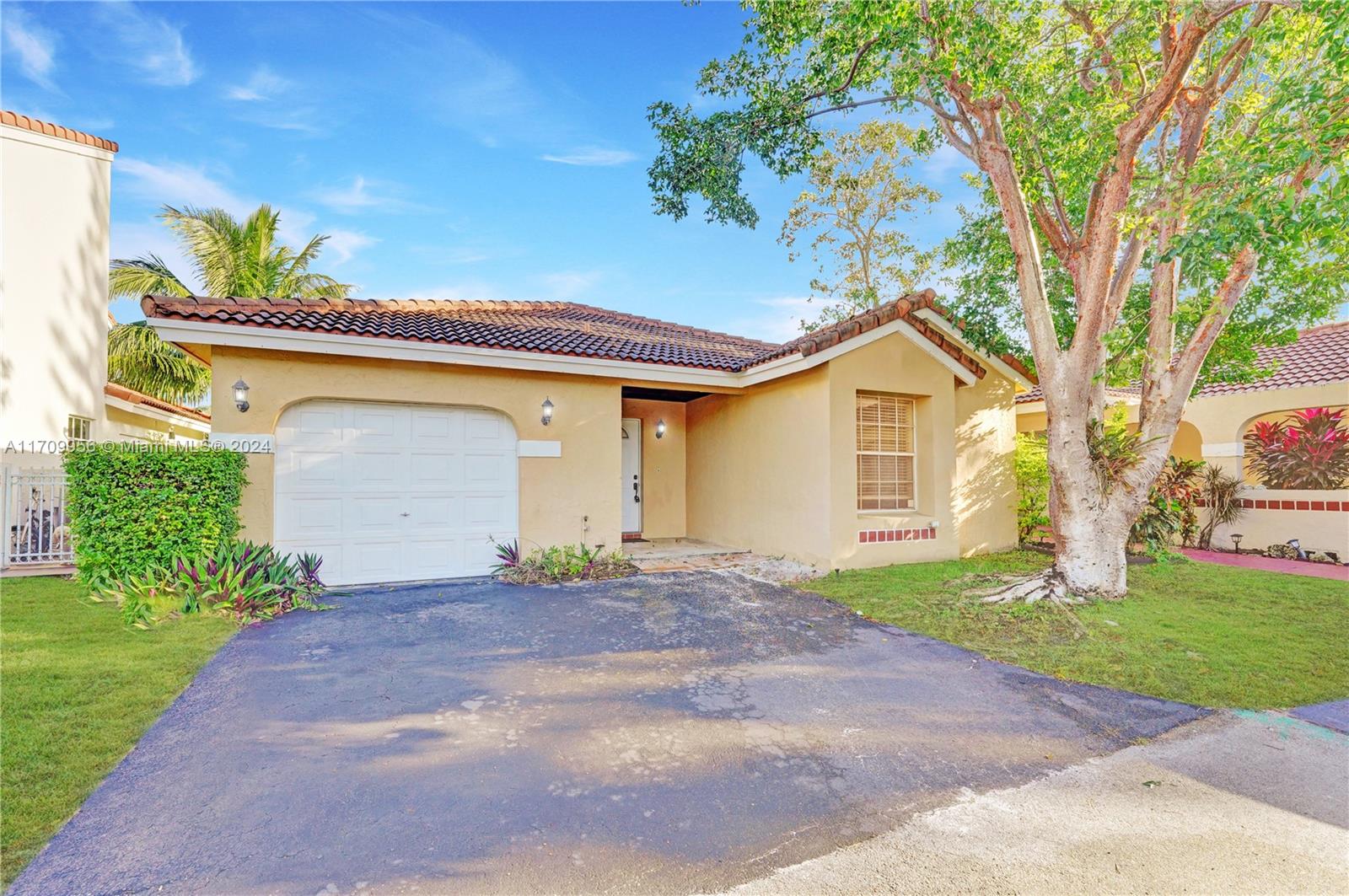 Light and bright, this 2 bed, 2 bath, 1 car garage home is waiting for you! Enjoy an open concept floor plan with laminate flooring throughout, a spacious kitchen with pendant lighting, tastefully remodeled baths, soaring vaulted ceilings and natural light in abundance. Outside, find a fully fenced backyard and a covered patio perfect for lounging. Your comfort and energy efficiency are further enhanced with a newer A/C (2022) and tile roof installed in 2011! Ideally located in the heart of Weston near top-rated schools, shopping, dining, parks, worship centers, the Weston Town Center & more!