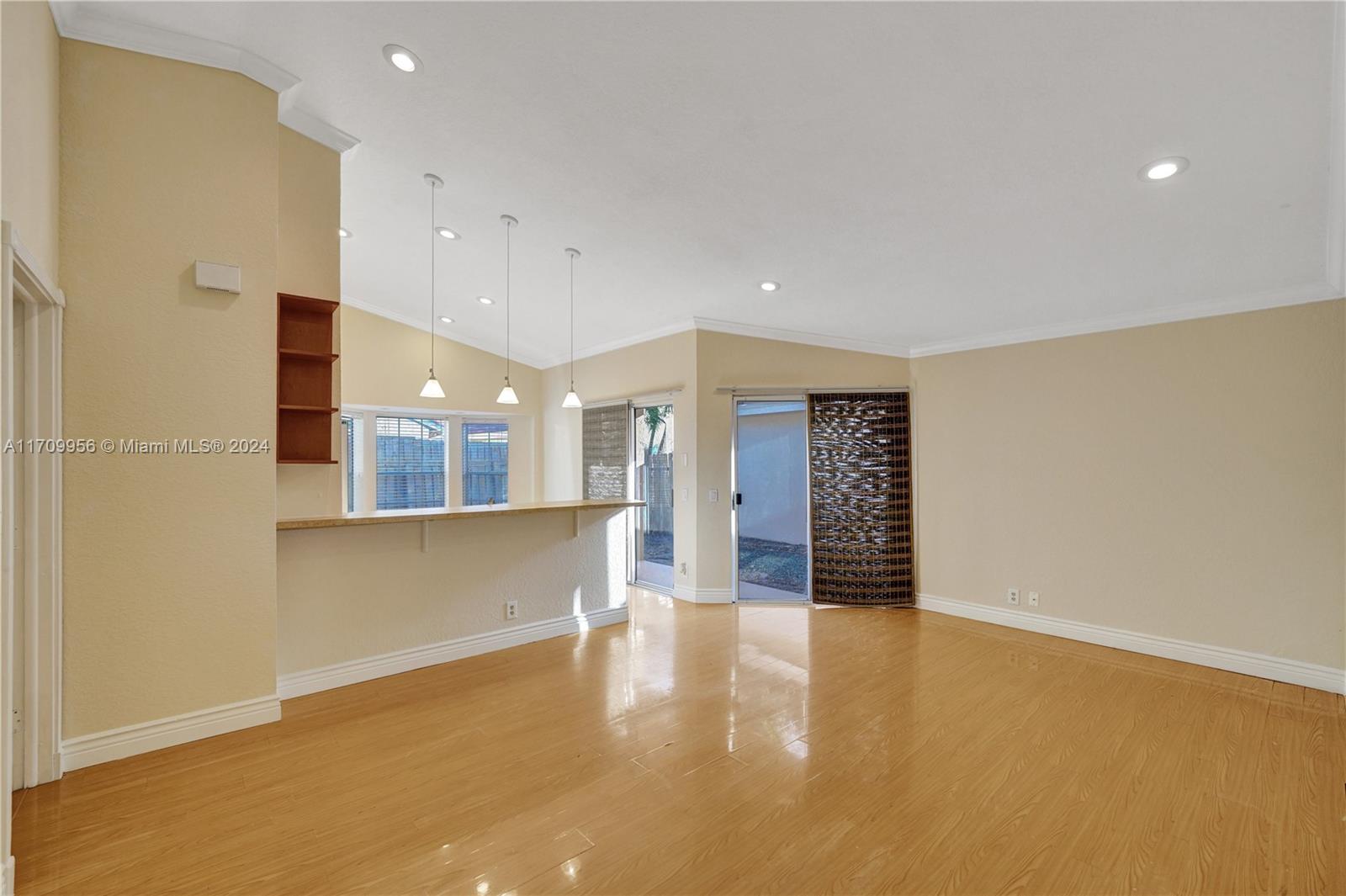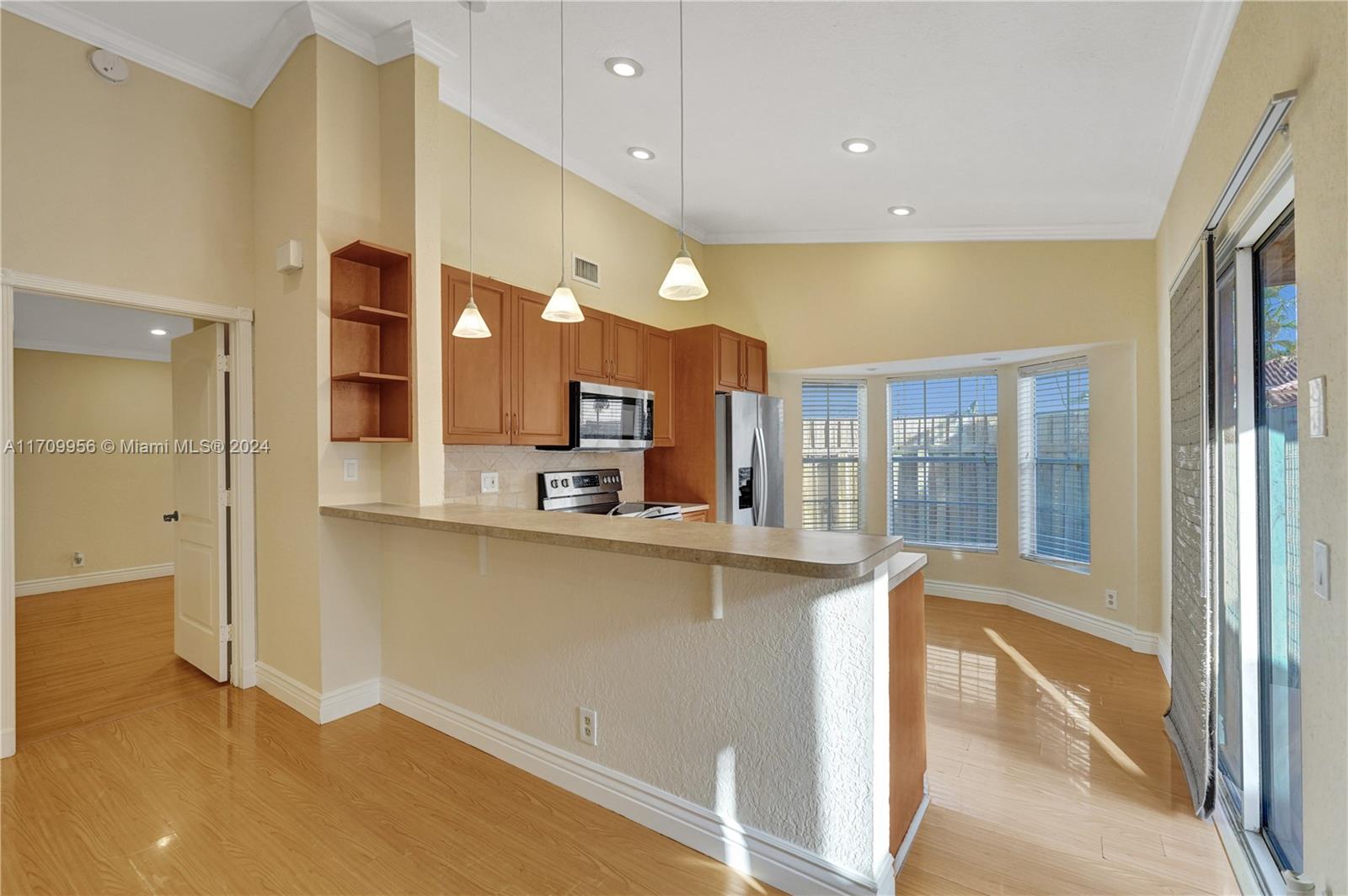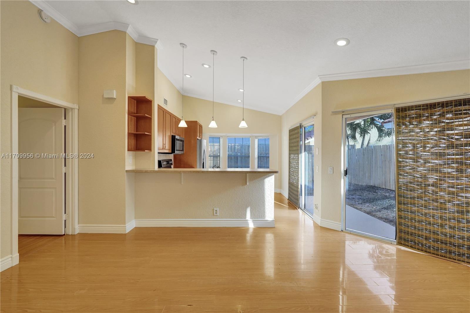 Light and bright, this 2 bed, 2 bath, 1 car garage home is waiting for you! Enjoy an open concept floor plan with laminate flooring throughout, a spacious kitchen with pendant lighting, tastefully remodeled baths, soaring vaulted ceilings and natural light in abundance. Outside, find a fully fenced backyard and a covered patio perfect for lounging. Your comfort and energy efficiency are further enhanced with a newer A/C (2022) and tile roof installed in 2011! Ideally located in the heart of Weston near top-rated schools, shopping, dining, parks, worship centers, the Weston Town Center & more!