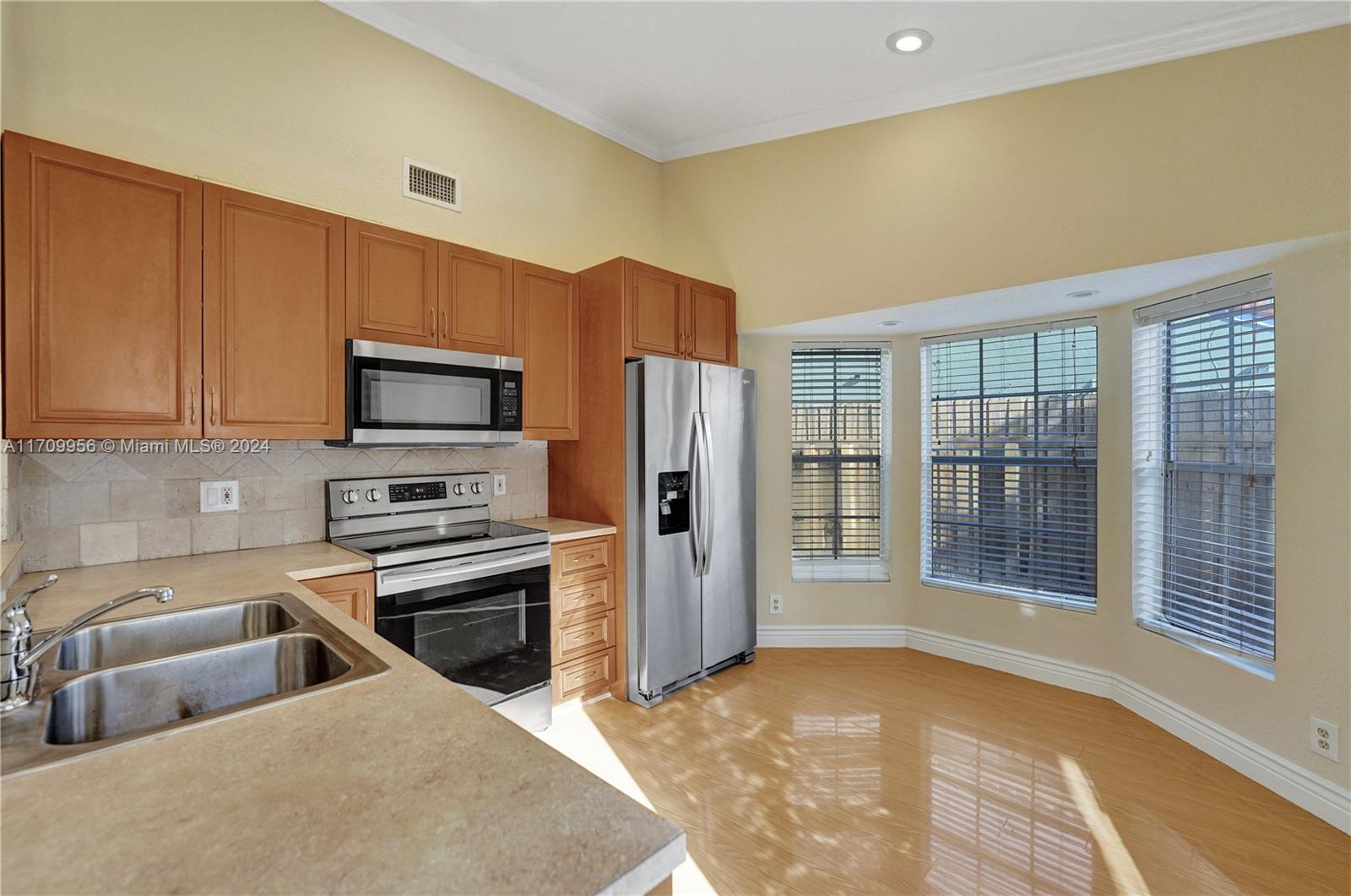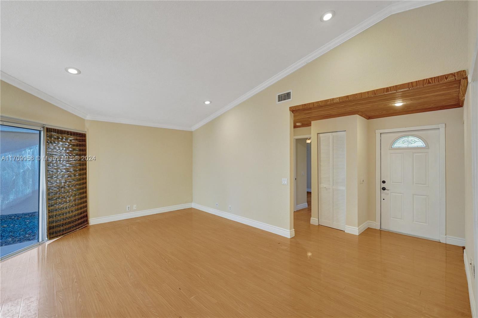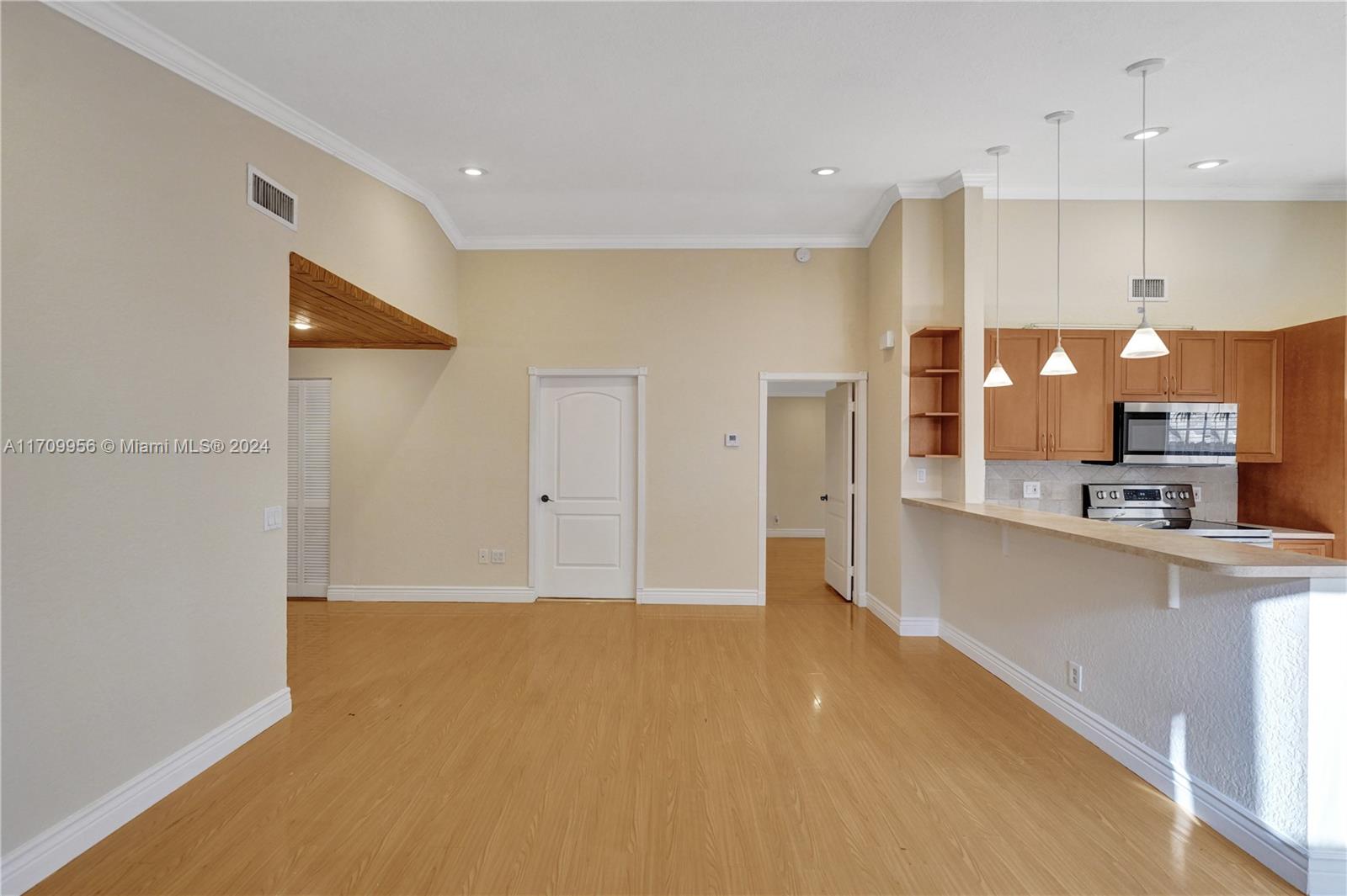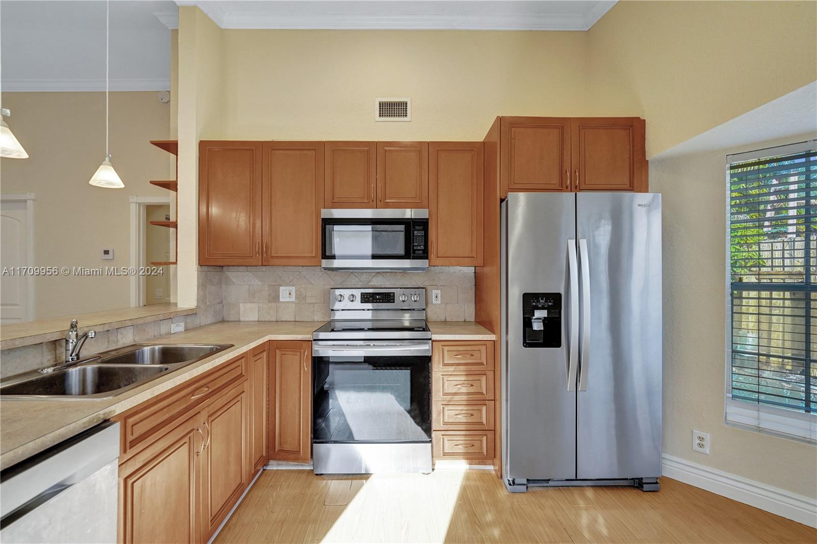 Light and bright, this 2 bed, 2 bath, 1 car garage home is waiting for you! Enjoy an open concept floor plan with laminate flooring throughout, a spacious kitchen with pendant lighting, tastefully remodeled baths, soaring vaulted ceilings and natural light in abundance. Outside, find a fully fenced backyard and a covered patio perfect for lounging. Your comfort and energy efficiency are further enhanced with a newer A/C (2022) and tile roof installed in 2011! Ideally located in the heart of Weston near top-rated schools, shopping, dining, parks, worship centers, the Weston Town Center & more!