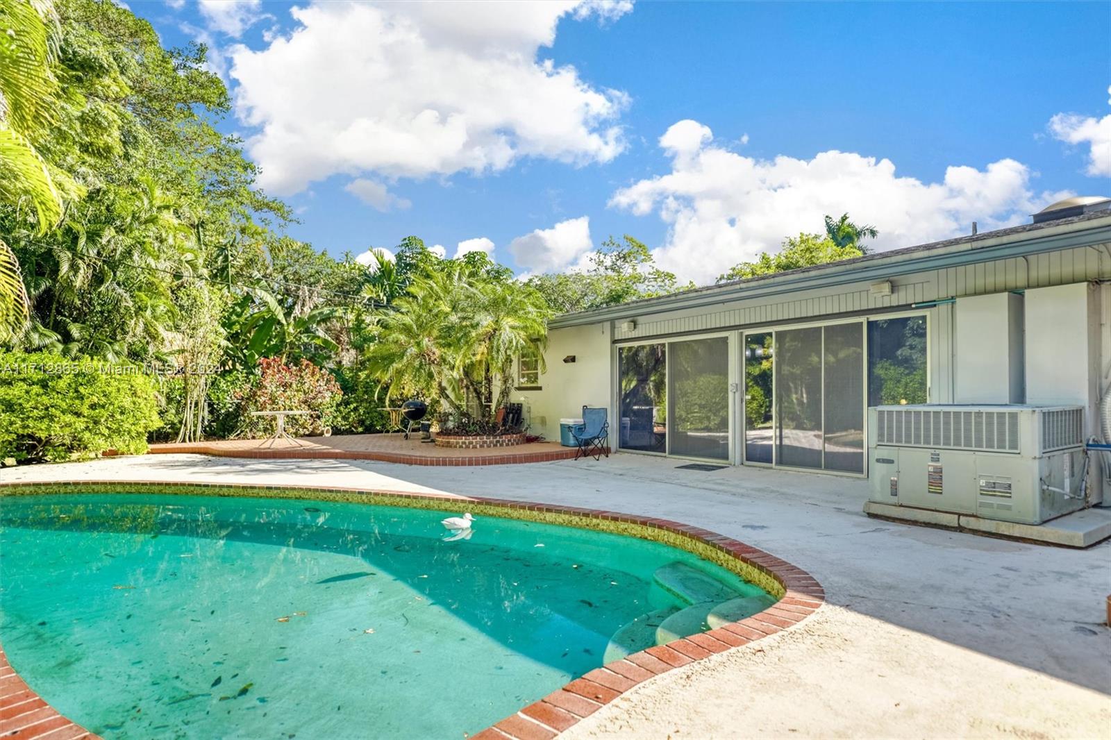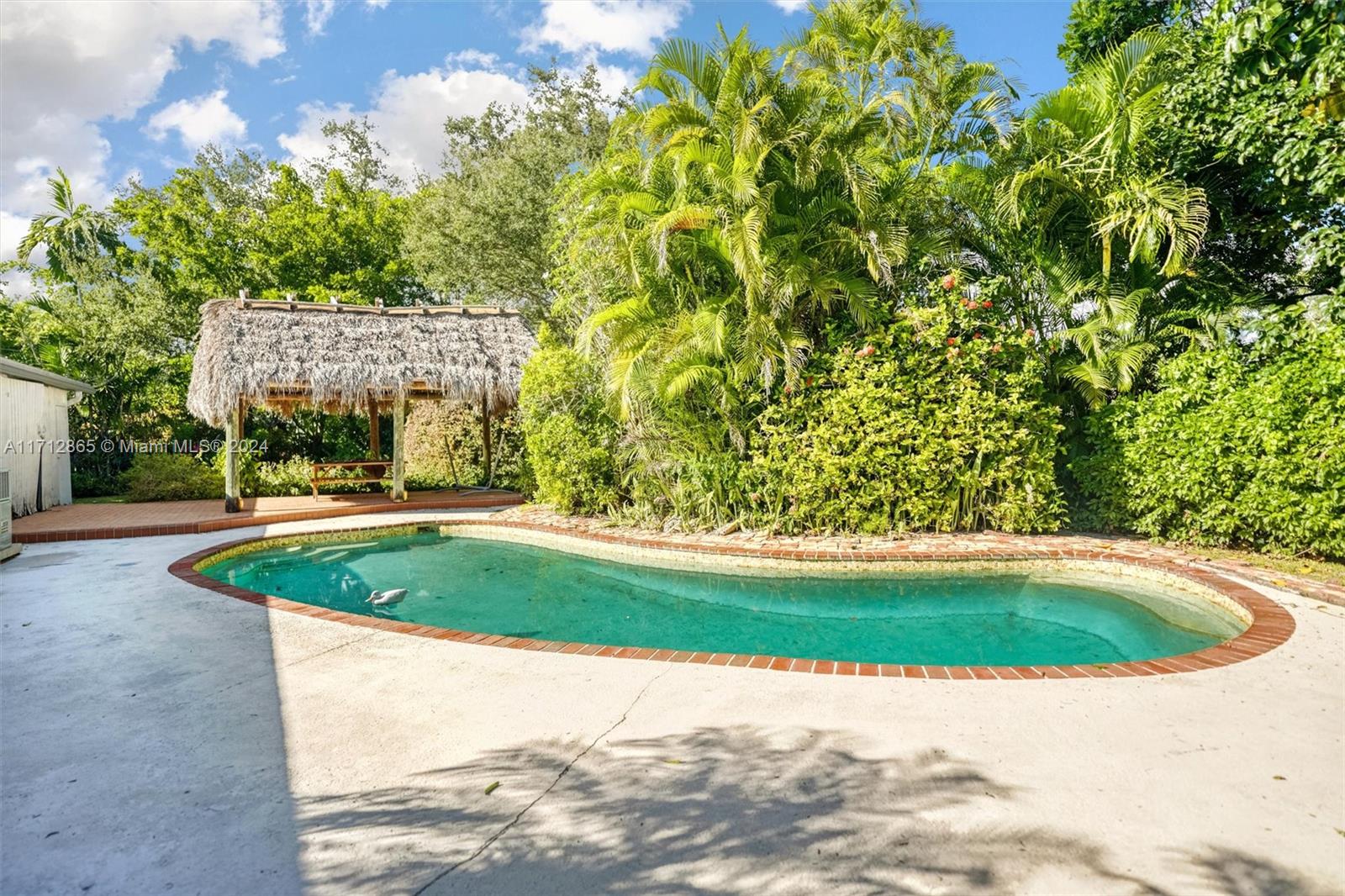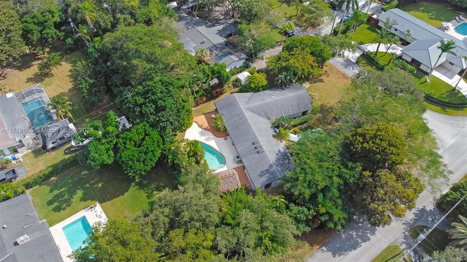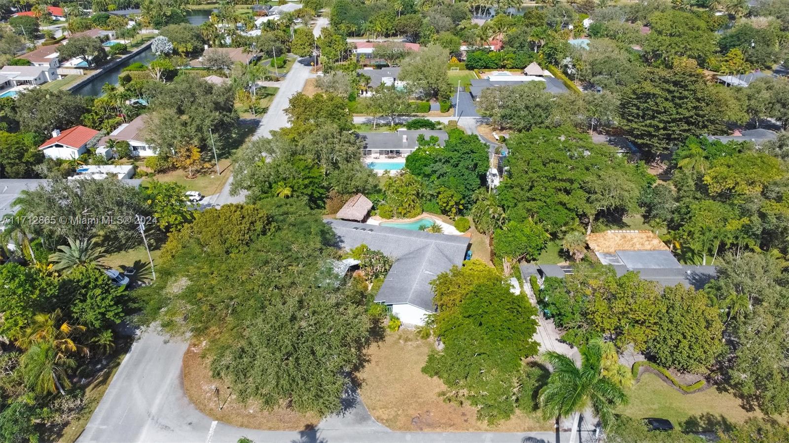 Excellent opportunity to make this Pinecrest corner lot home yours! Built in 1975, it features four bedrooms and three bathrooms, boasts two master suites, a pool, on a large corner lot on a quiet street. The home was artificially elevated from the street when built to all but eliminate any chance of flooding by design. The living room and family room are open and create an enormous open space. The primary Master bedroom is very large and boasts an equally large master bathroom with his and hers sinks and toilets. Opposite side of the home are three bedrooms, two sharing a bathroom and one with its own en suite bathroom. The fenced backyard boasts a large patio, Chiki Hut, shed and garden. The property is covered in trees and other exotic plants and parking couldn't be easier.