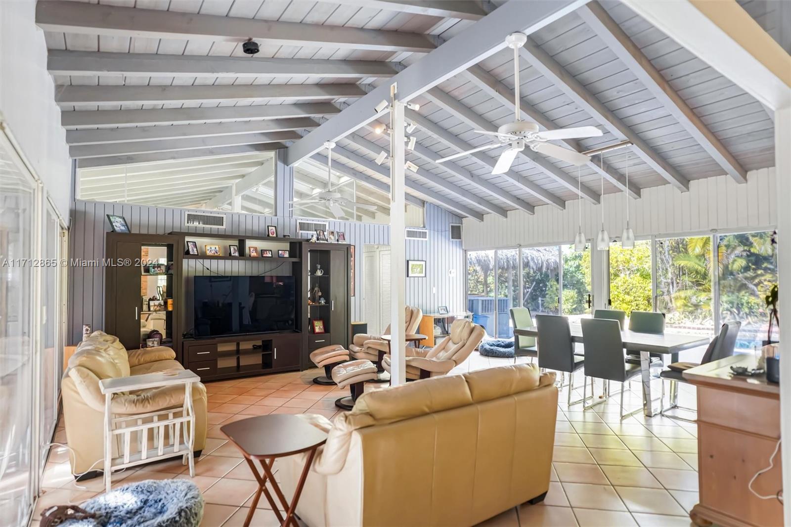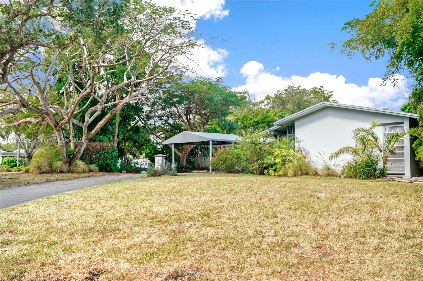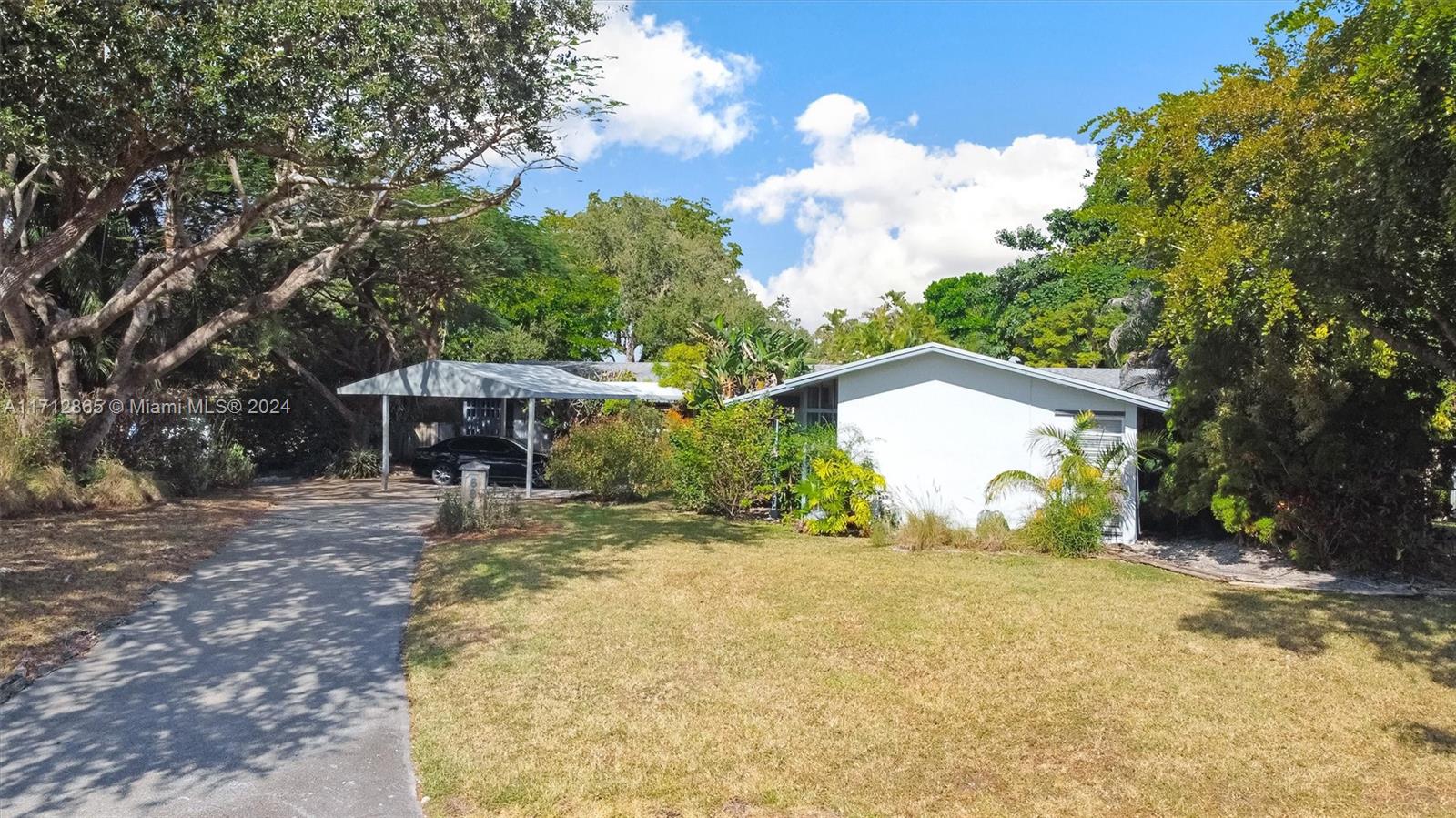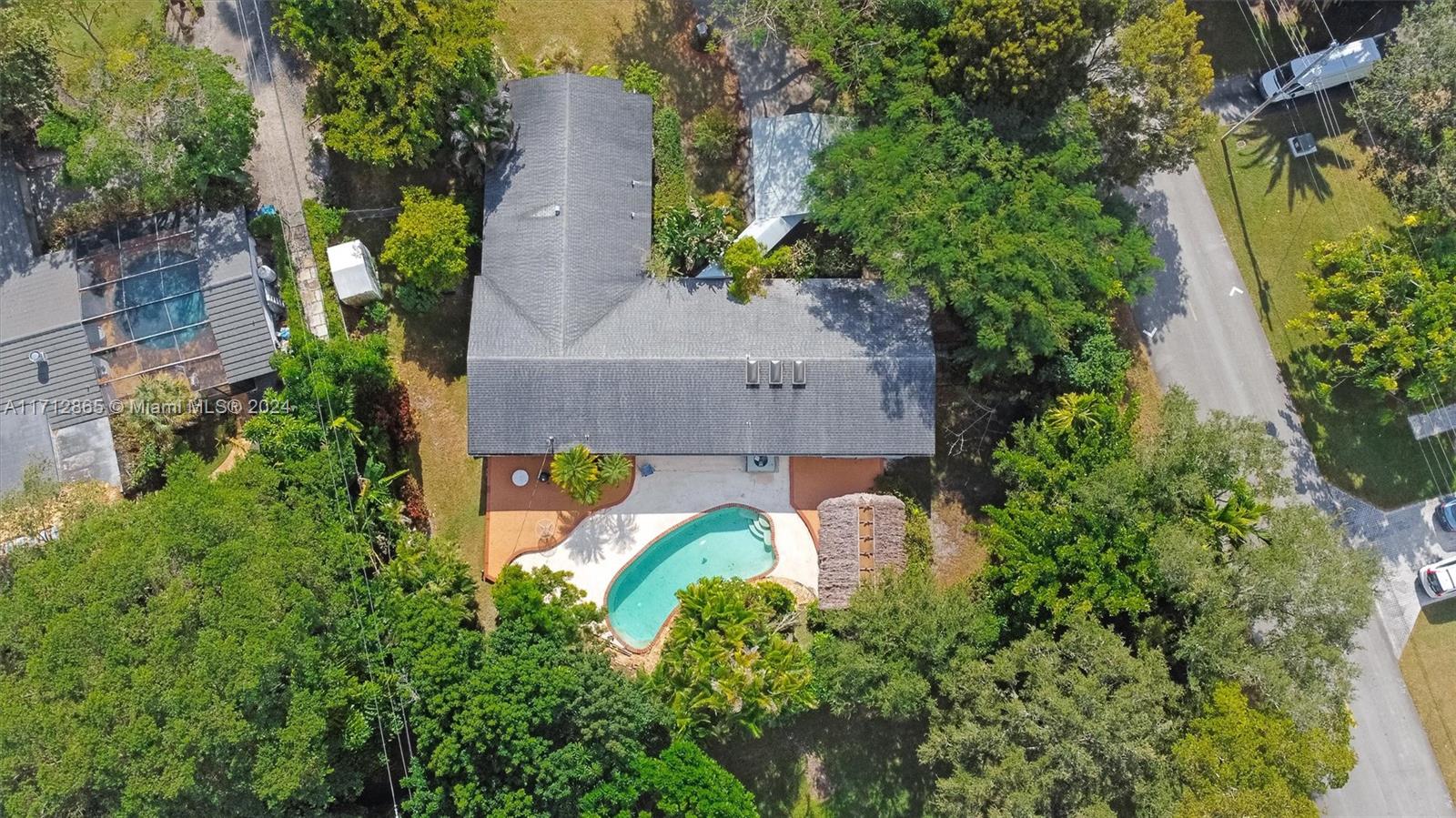 Excellent opportunity to make this Pinecrest corner lot home yours! Built in 1975, it features four bedrooms and three bathrooms, boasts two master suites, a pool, on a large corner lot on a quiet street. The home was artificially elevated from the street when built to all but eliminate any chance of flooding by design. The living room and family room are open and create an enormous open space. The primary Master bedroom is very large and boasts an equally large master bathroom with his and hers sinks and toilets. Opposite side of the home are three bedrooms, two sharing a bathroom and one with its own en suite bathroom. The fenced backyard boasts a large patio, Chiki Hut, shed and garden. The property is covered in trees and other exotic plants and parking couldn't be easier.
