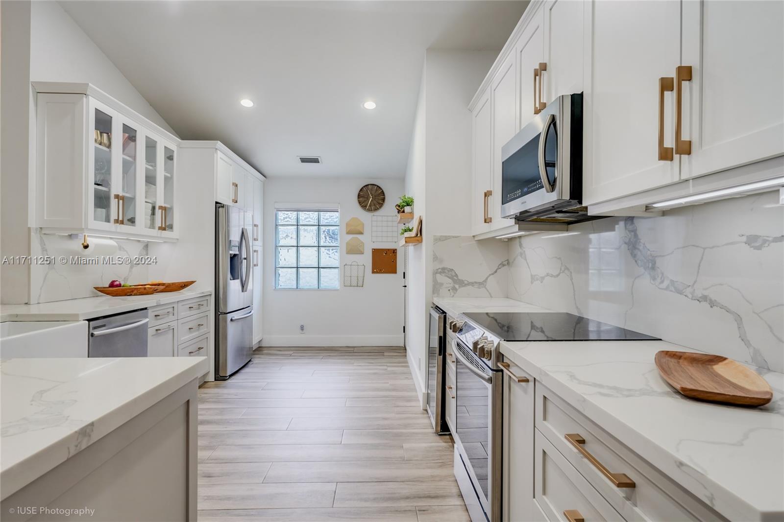 Welcome to this charming, tastefully remodeled 1-story home in the sought-after Bermuda Village subdivision of Silver Lakes in Pembroke Pines. Offering 3 spacious bedrooms and 2 bathrooms, this home provides the perfect blend of comfort and style. The vaulted ceilings and an open floor plan are ideal for both family living and entertaining. The designer kitchen is a chef’s dream, featuring beautiful wood cabinets, sleek quartz countertops, and stainless steel appliances. Stunning wood plank tiles throughout that add a touch of elegance. A large primary bedroom offers a walk-in closet and a spacious bathroom with dual sinks. Situated near top-rated schools, easy access to highways, restaurants, and shopping, this home offers the convenience and lifestyle you’ve been looking for.